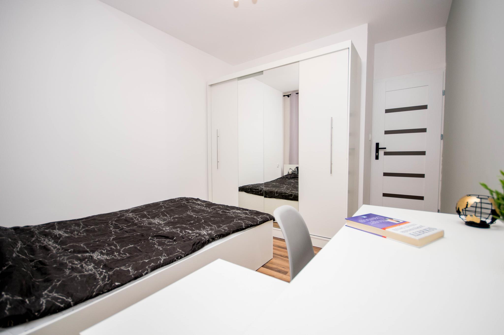 🛌 W skład mieszkania wchodzą 3 niezależne sypialnie, wyposażone w wygodne łóżko, pojemną szafę oraz miejsce do pracy czy nauki