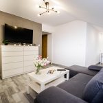 W mieszkaniu znajdziesz przytulny salon z częścią wypoczynkową z sofą, komodą, stolikiem oraz TV. Przestronna kuchnia, w której znajdziesz wszystkie niezbędne sprzęty AGD, takie jak: