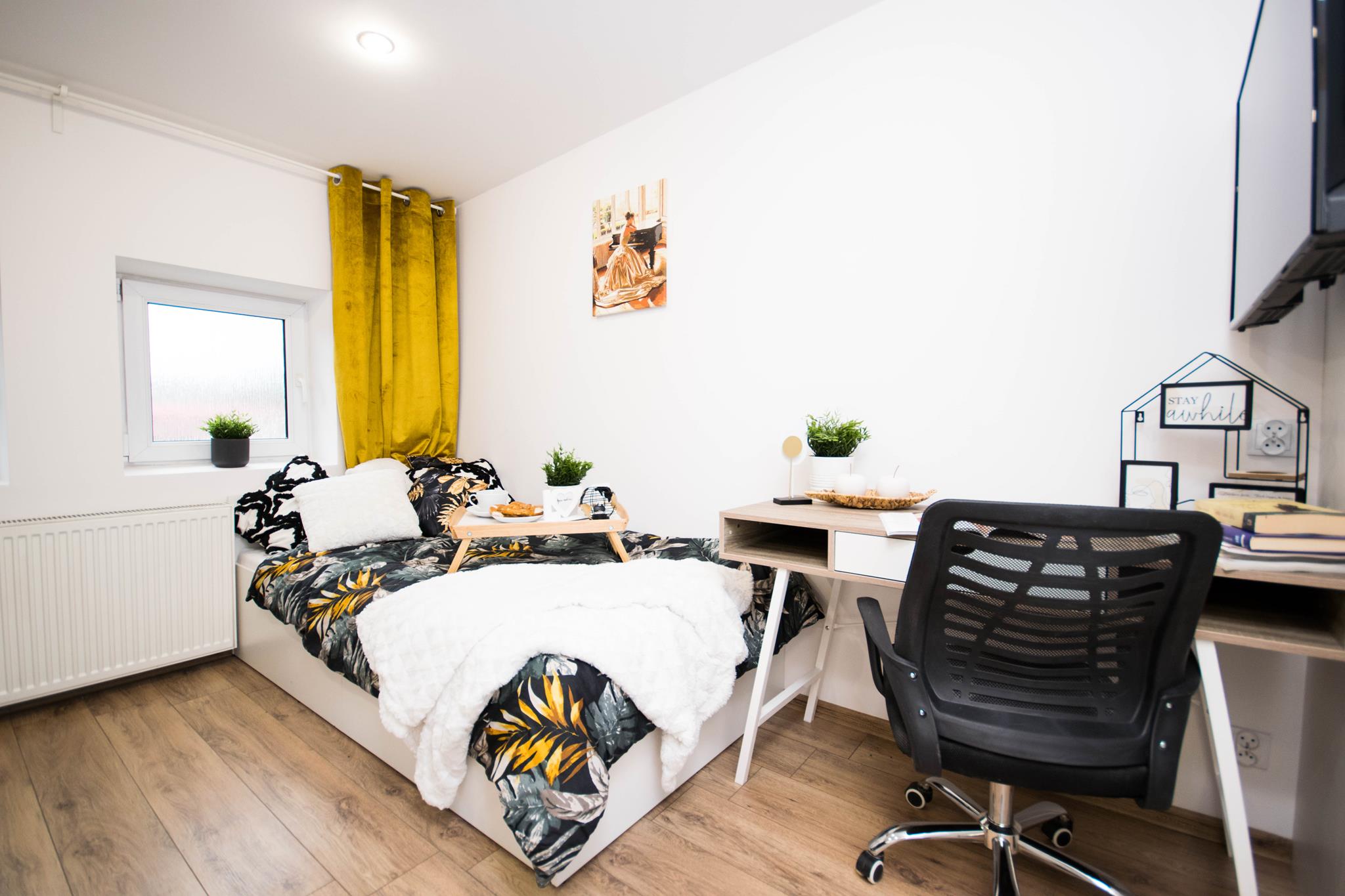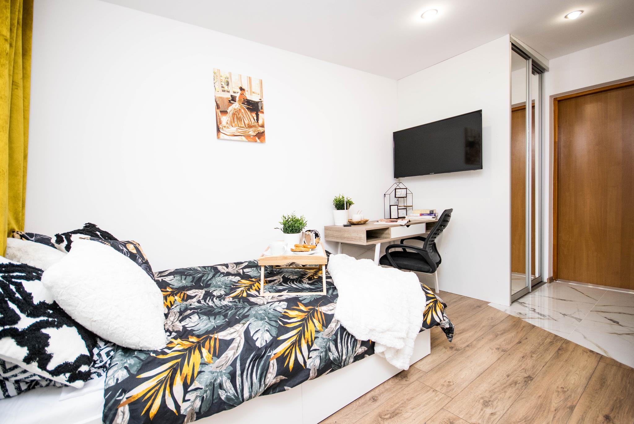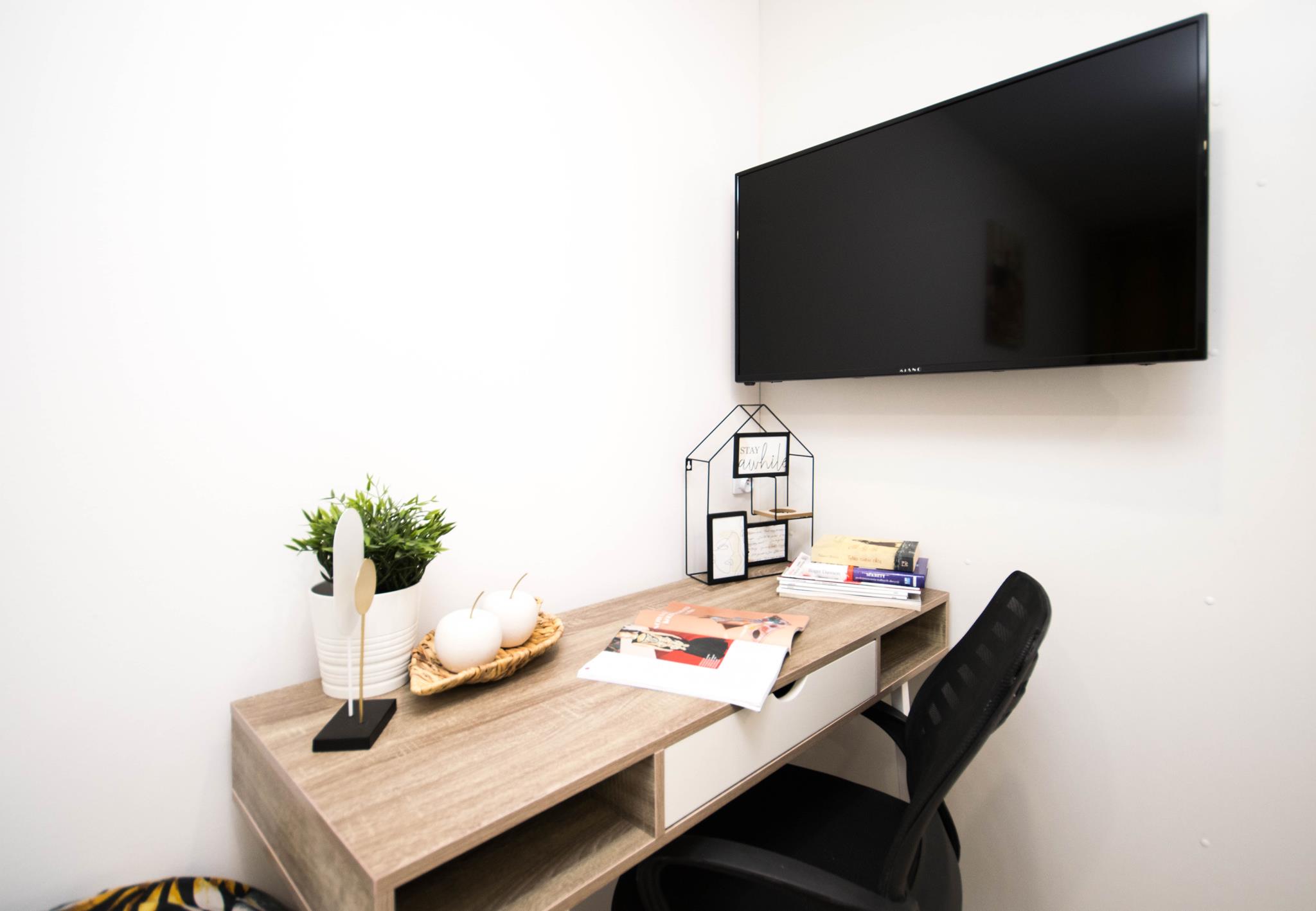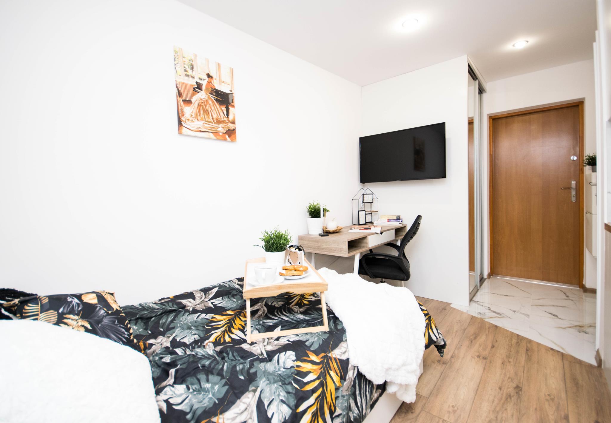 ☀️ Jasne mieszkanie z wygodnym łóżkiem, biurkiem do pracy czy nauki oraz TV