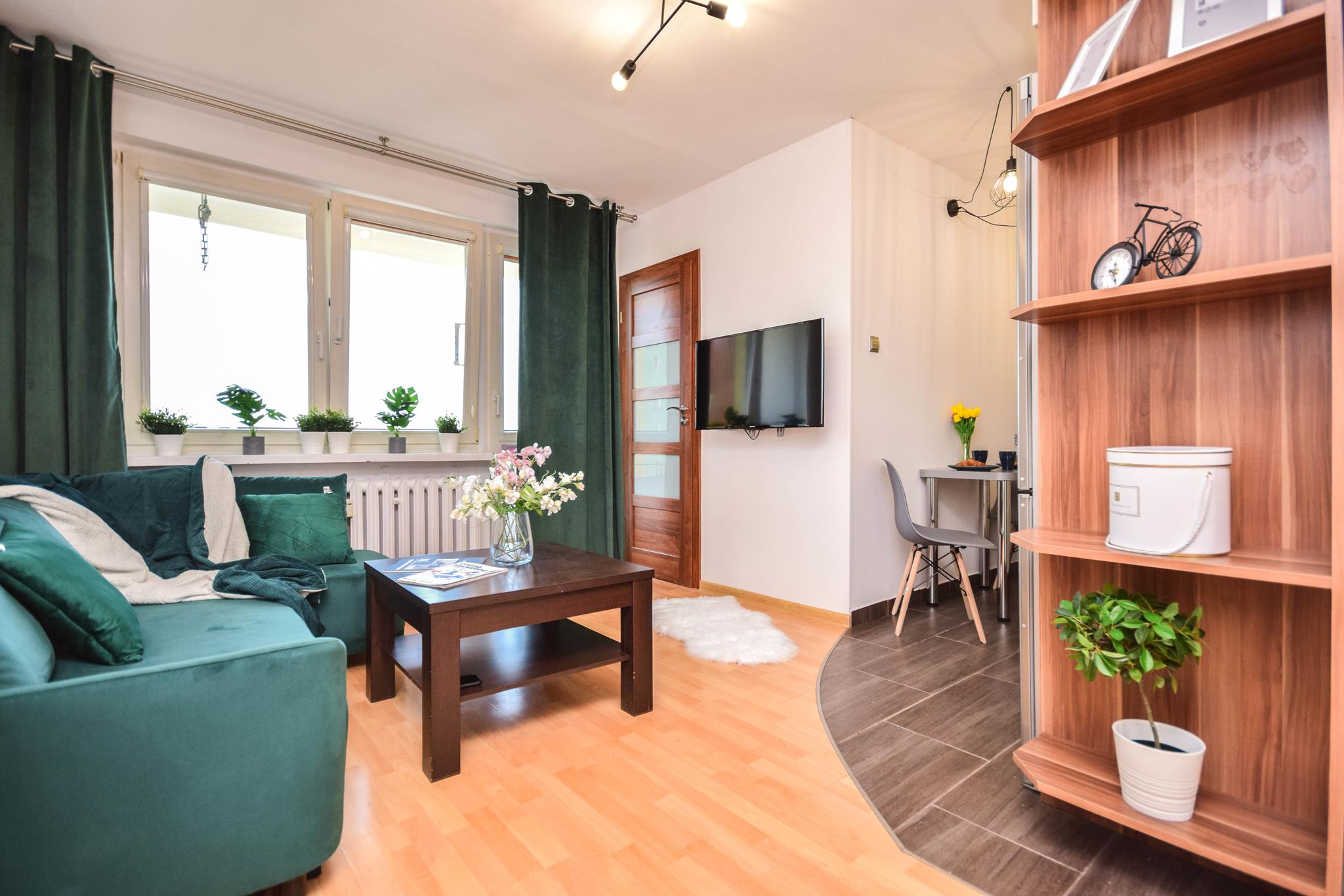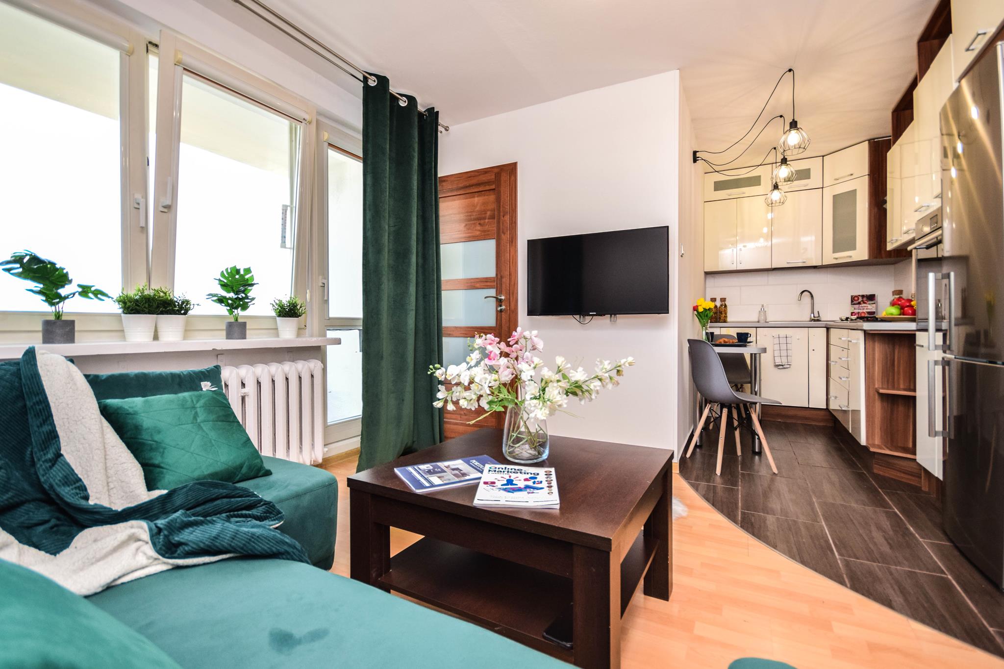 ✅ przytulnego salonu z aneksem kuchennym