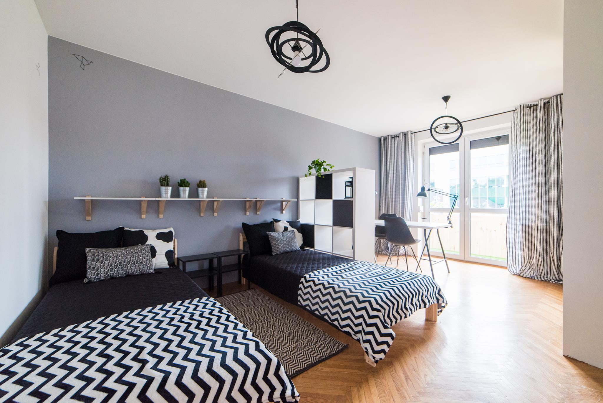 Przestronny pokój z garderobą w 3-pokojowym mieszkaniu z ogólnodostępnym salonem z balkonem – ul. Jantarowa