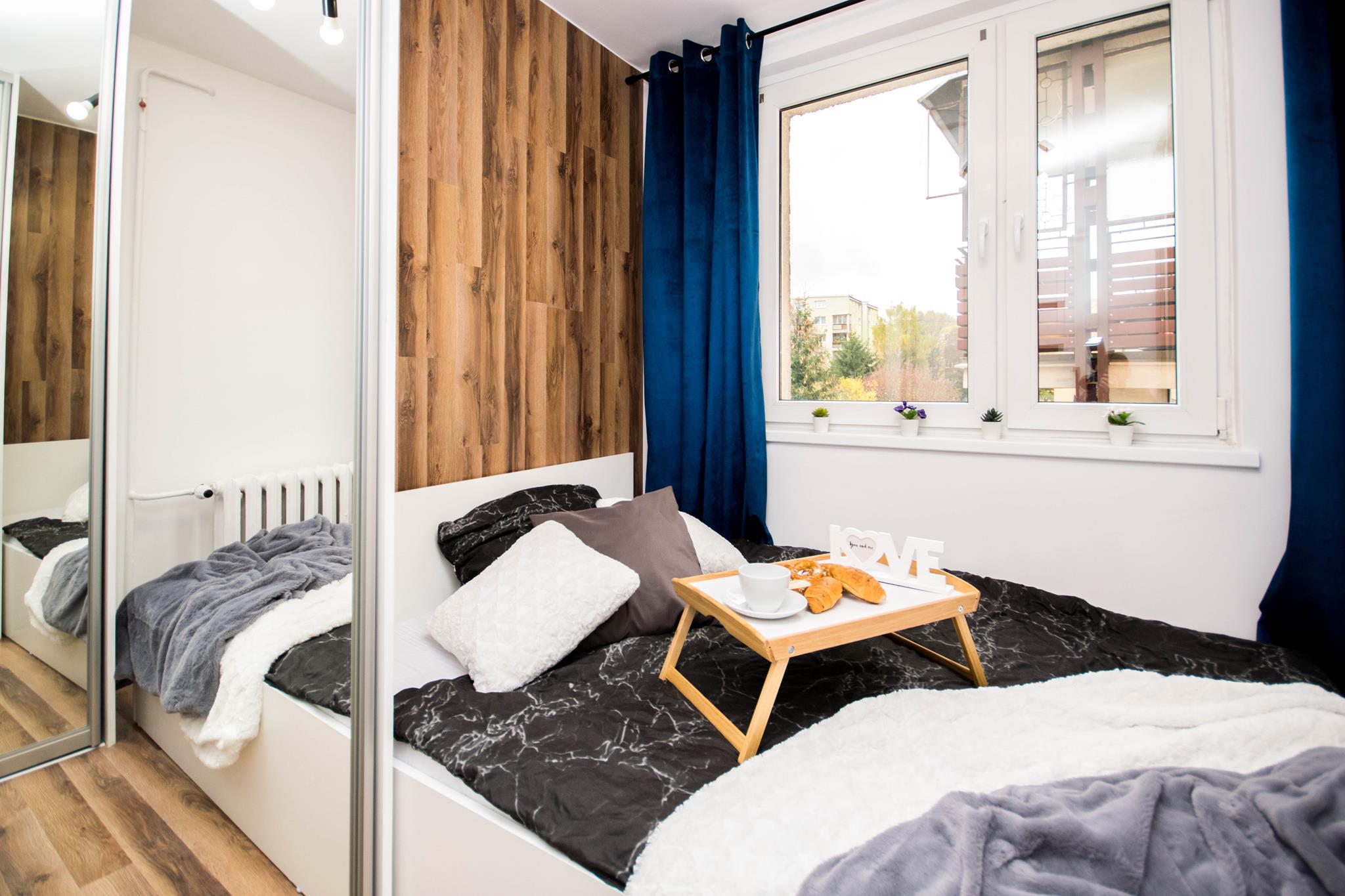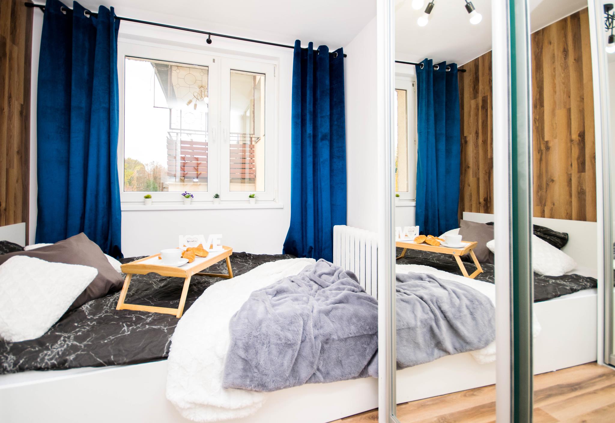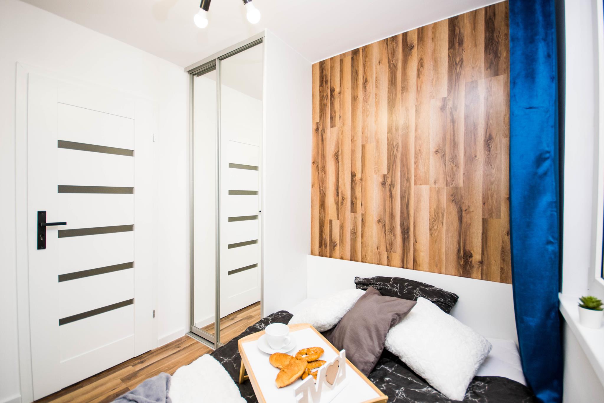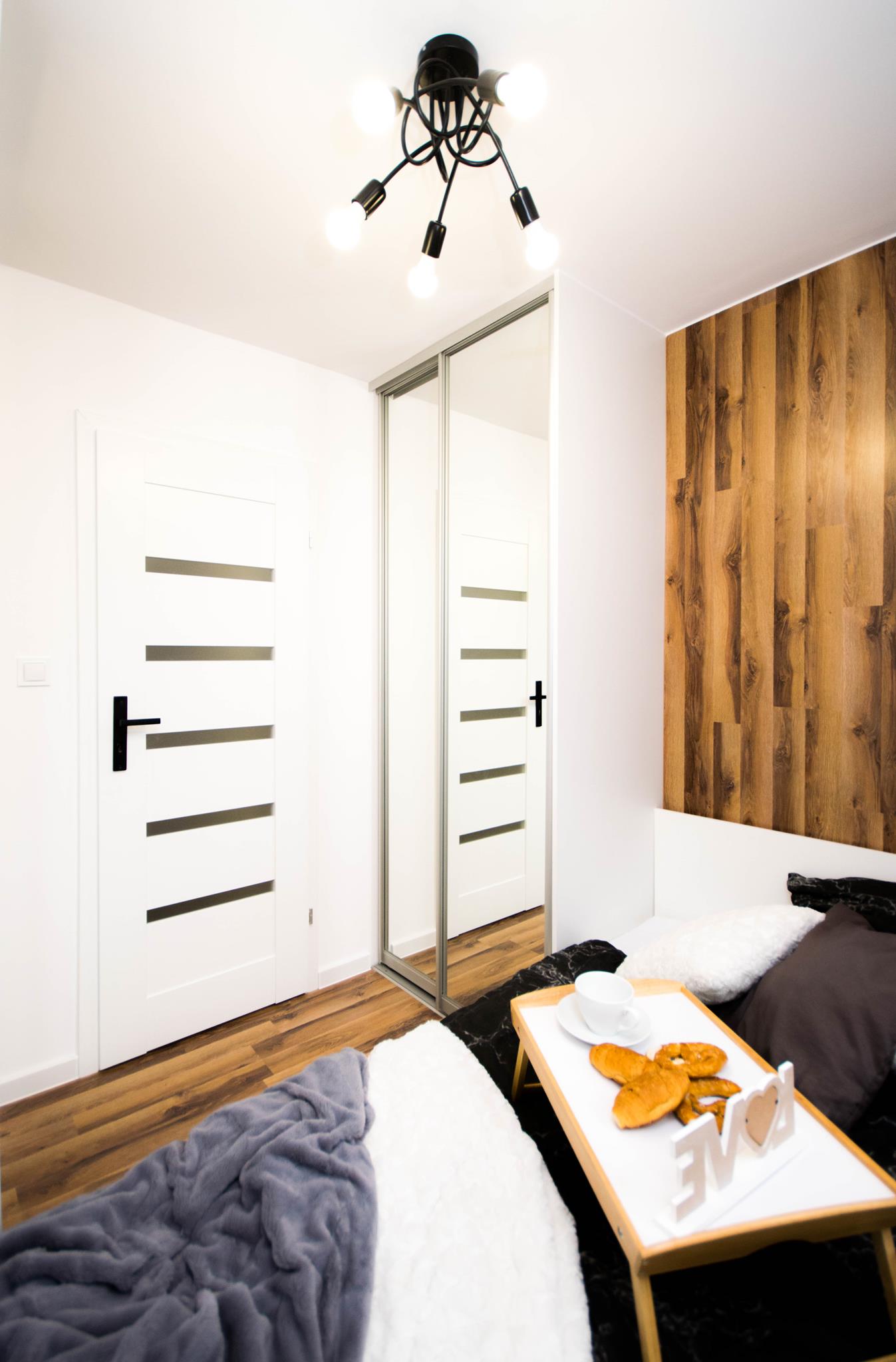 🛌 Sypialnia z wygodnym łóżkiem oraz dwoma, pojemnymi szafami z lustrem pod sam sufit