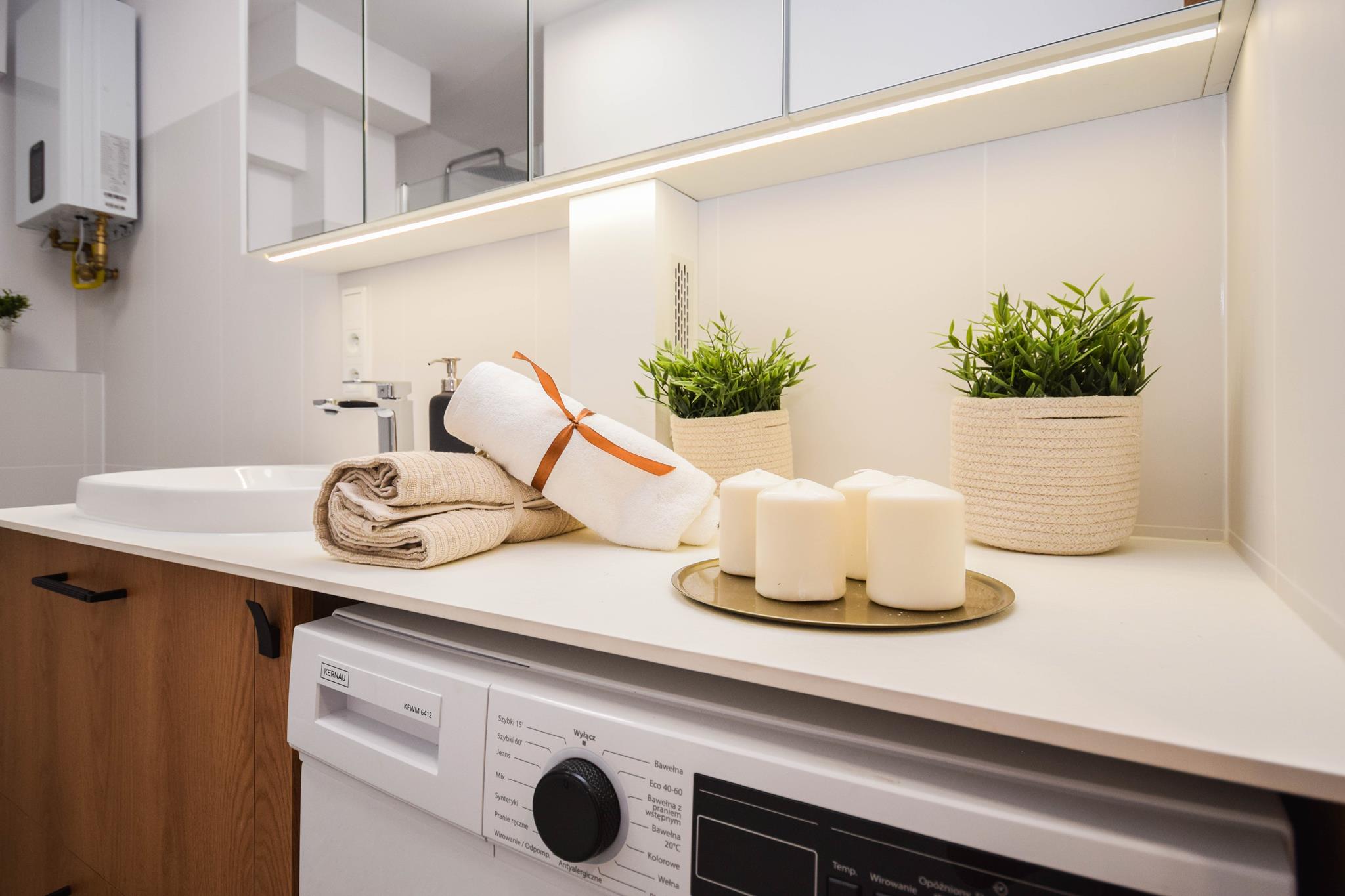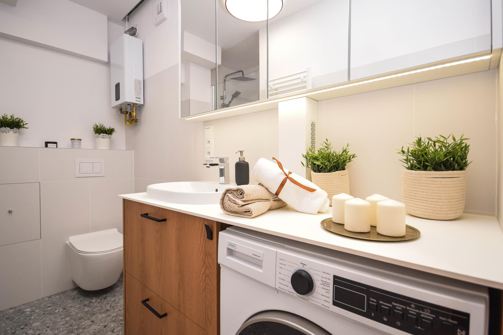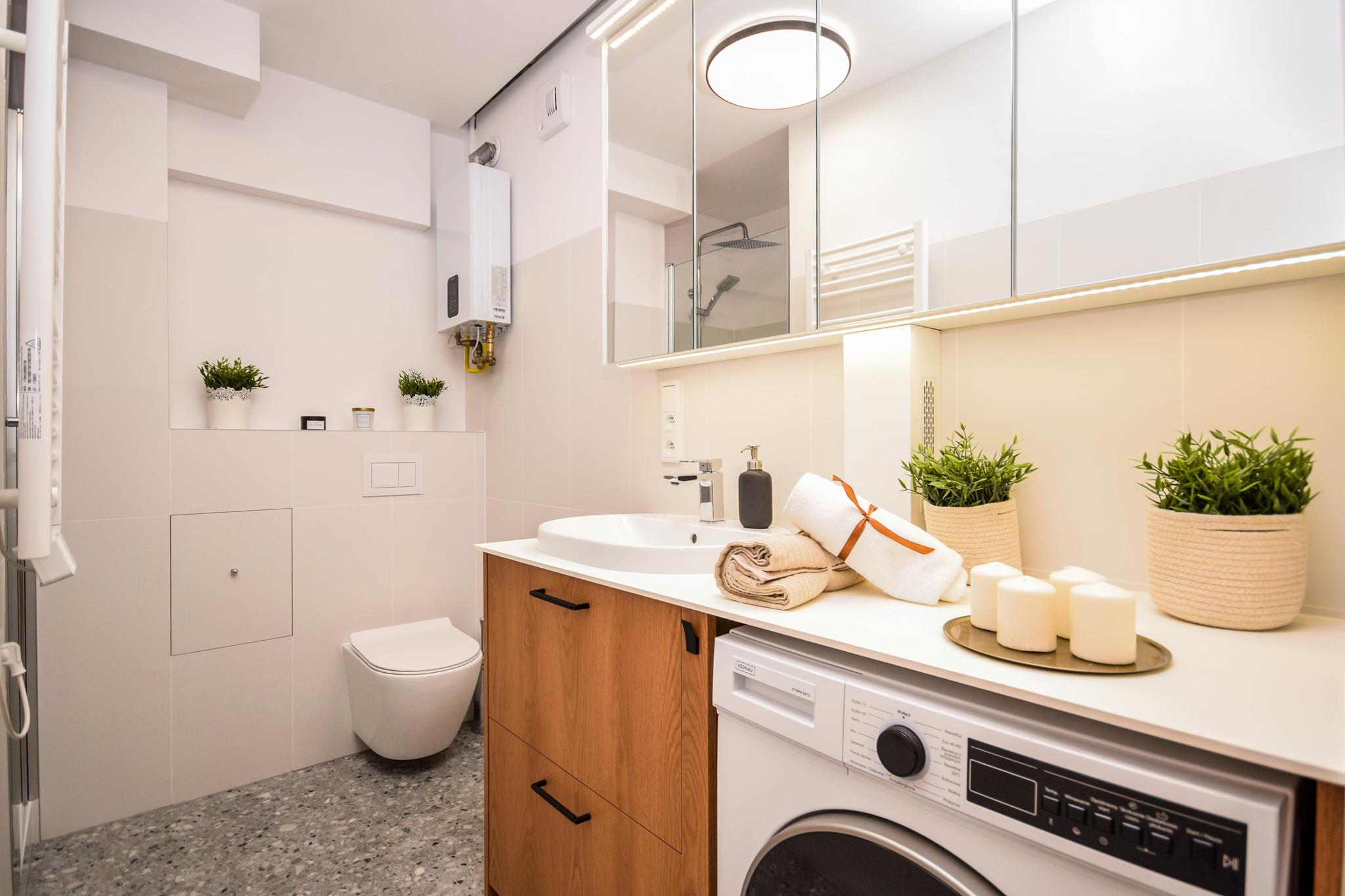 🛁 Łazienka z prysznicem, pralką oraz WC