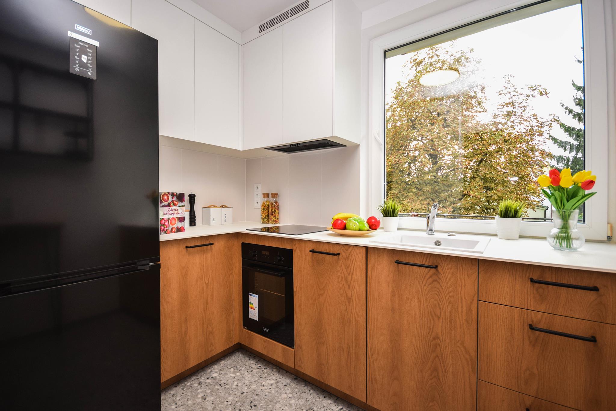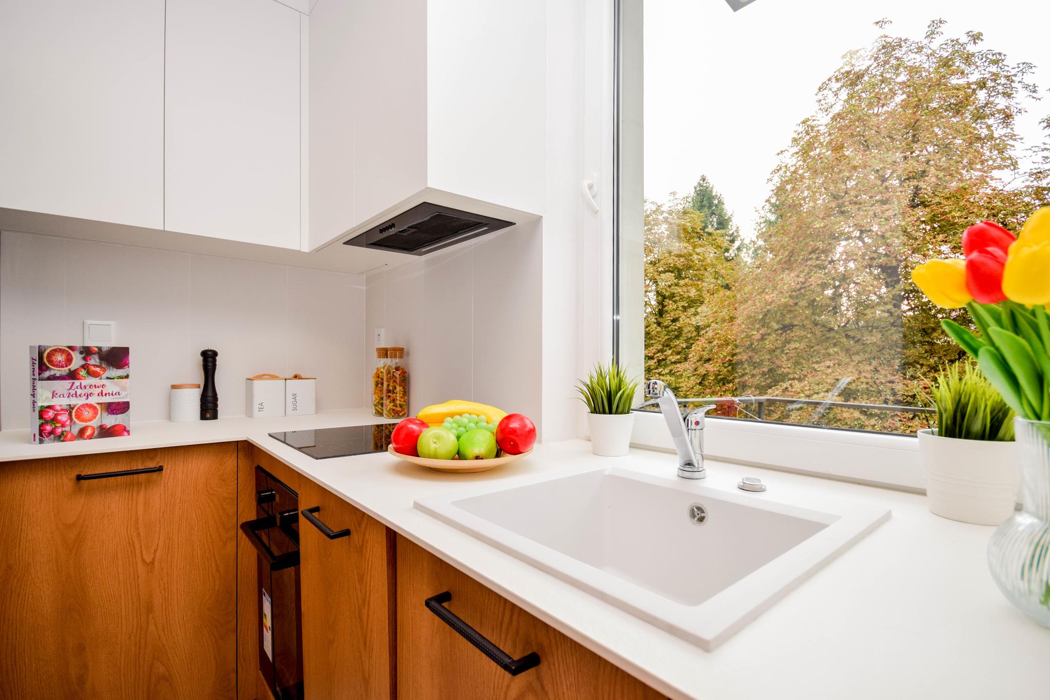 W mieszkaniu znajdziesz przestronną kuchnię, w której znajdziesz wszystkie niezbędne sprzęty AGD, takie jak: