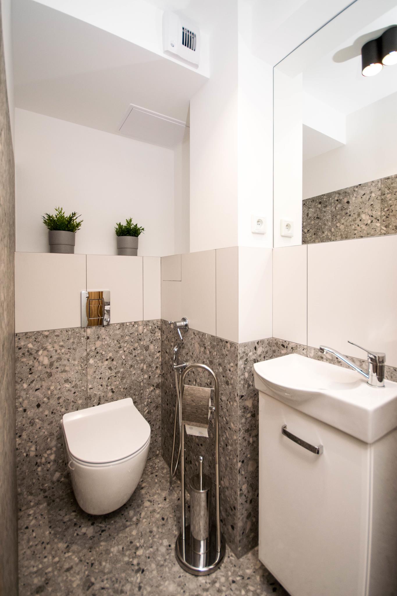 🛁 Łazienka z dużym prysznicem oraz pralką oraz oddzielne WC z umywalką