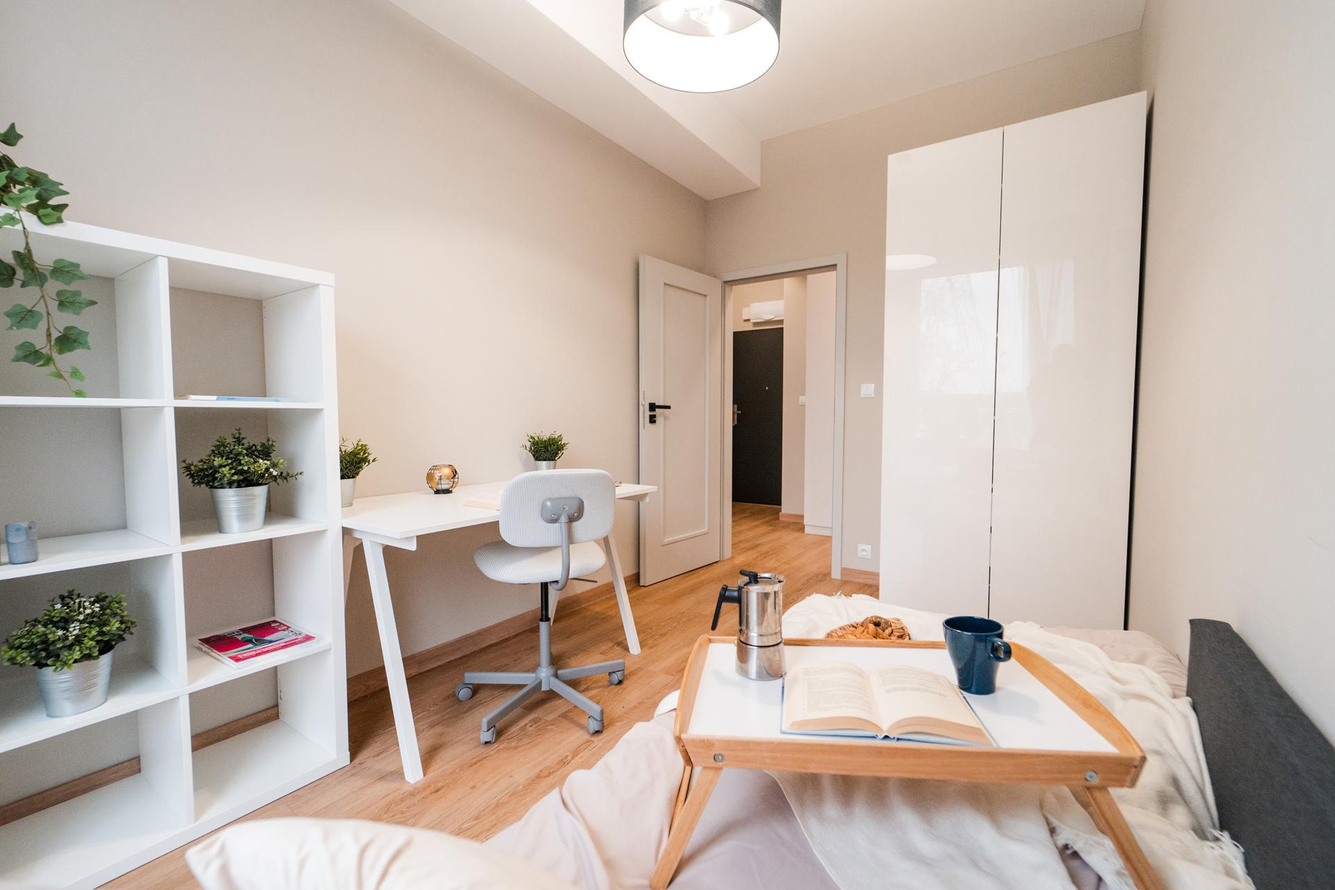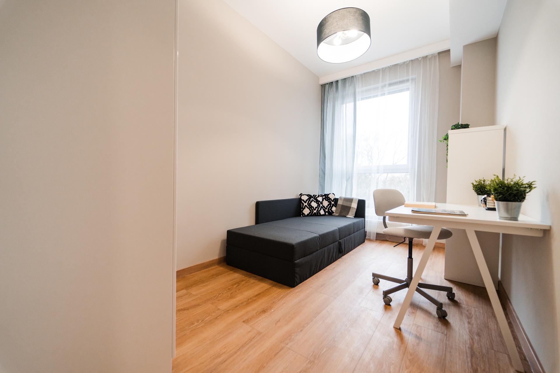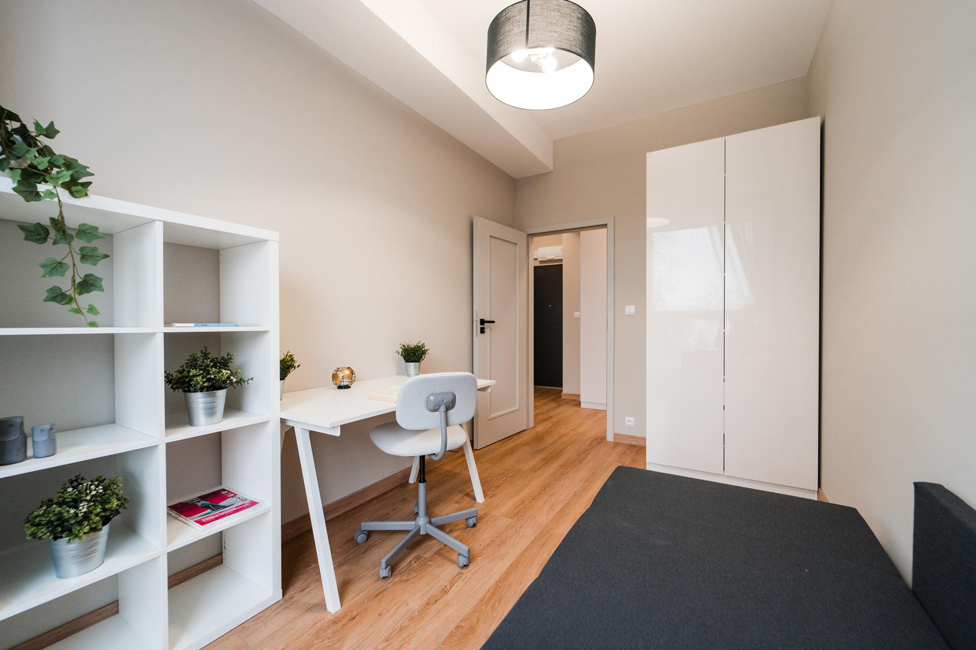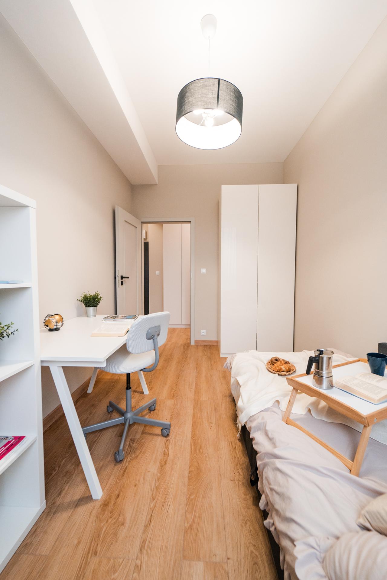 Nowoczesny pokój w 2-pokojowym klimatyzowanym mieszkaniu na zamkniętym osiedlu – ul. Długa