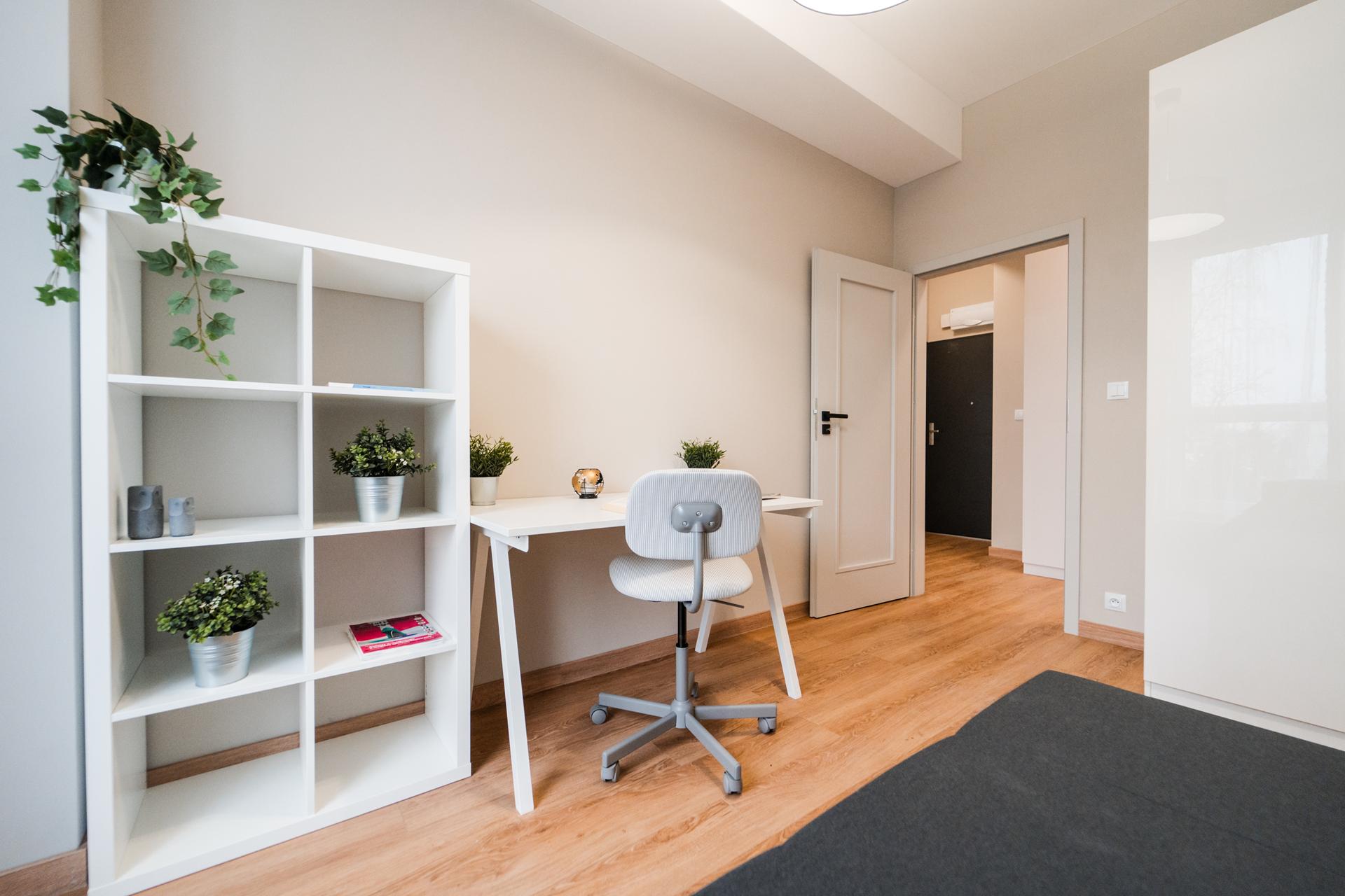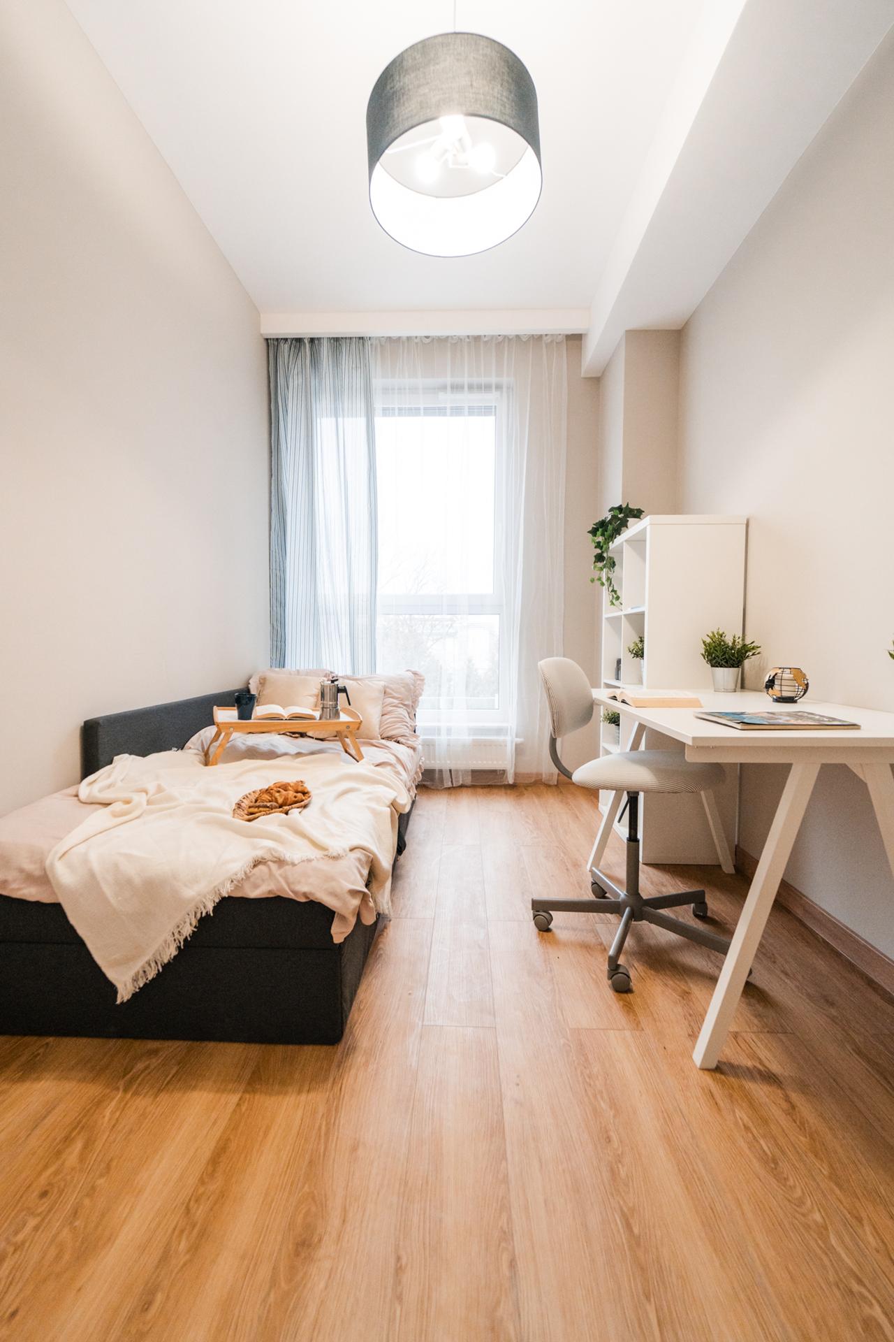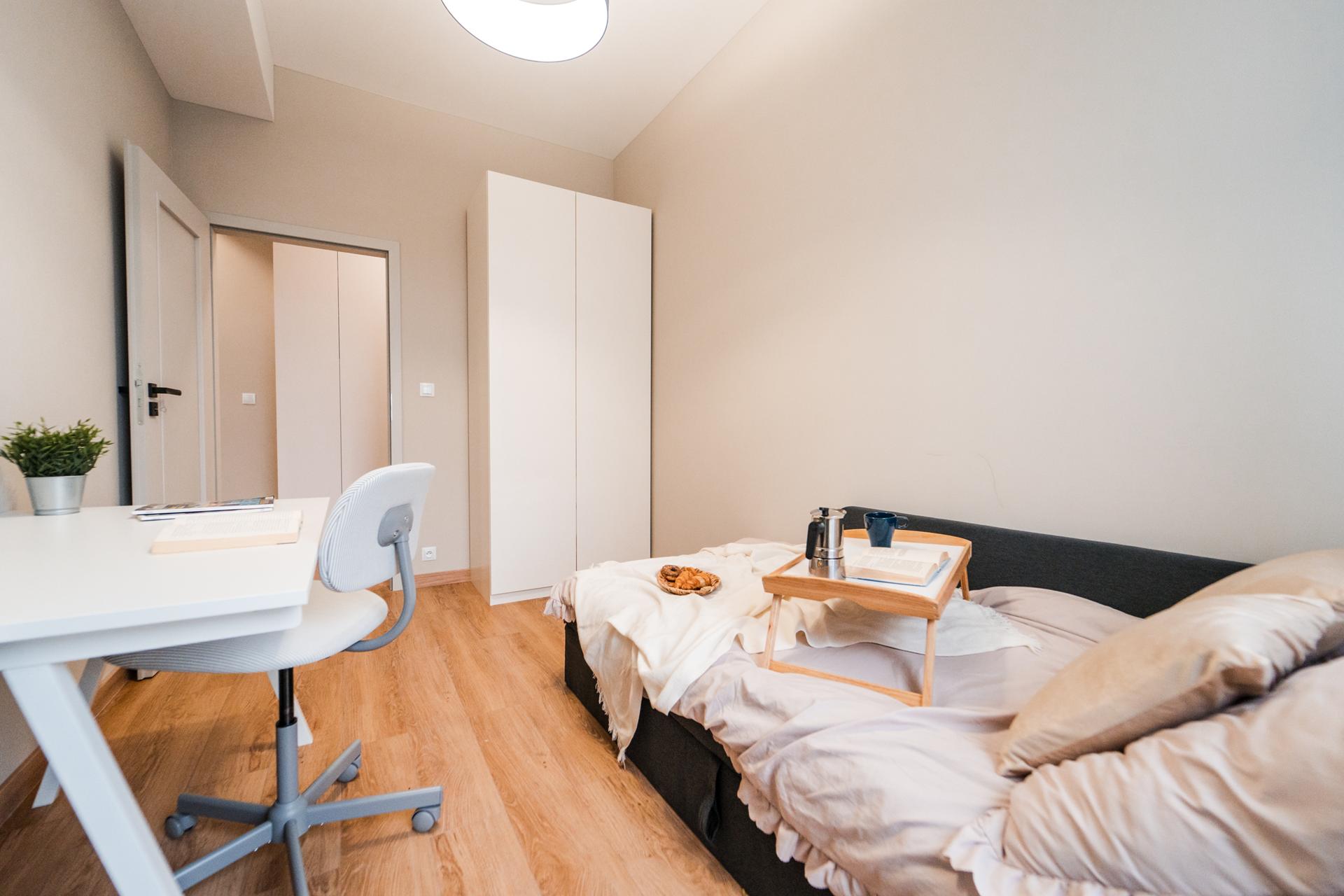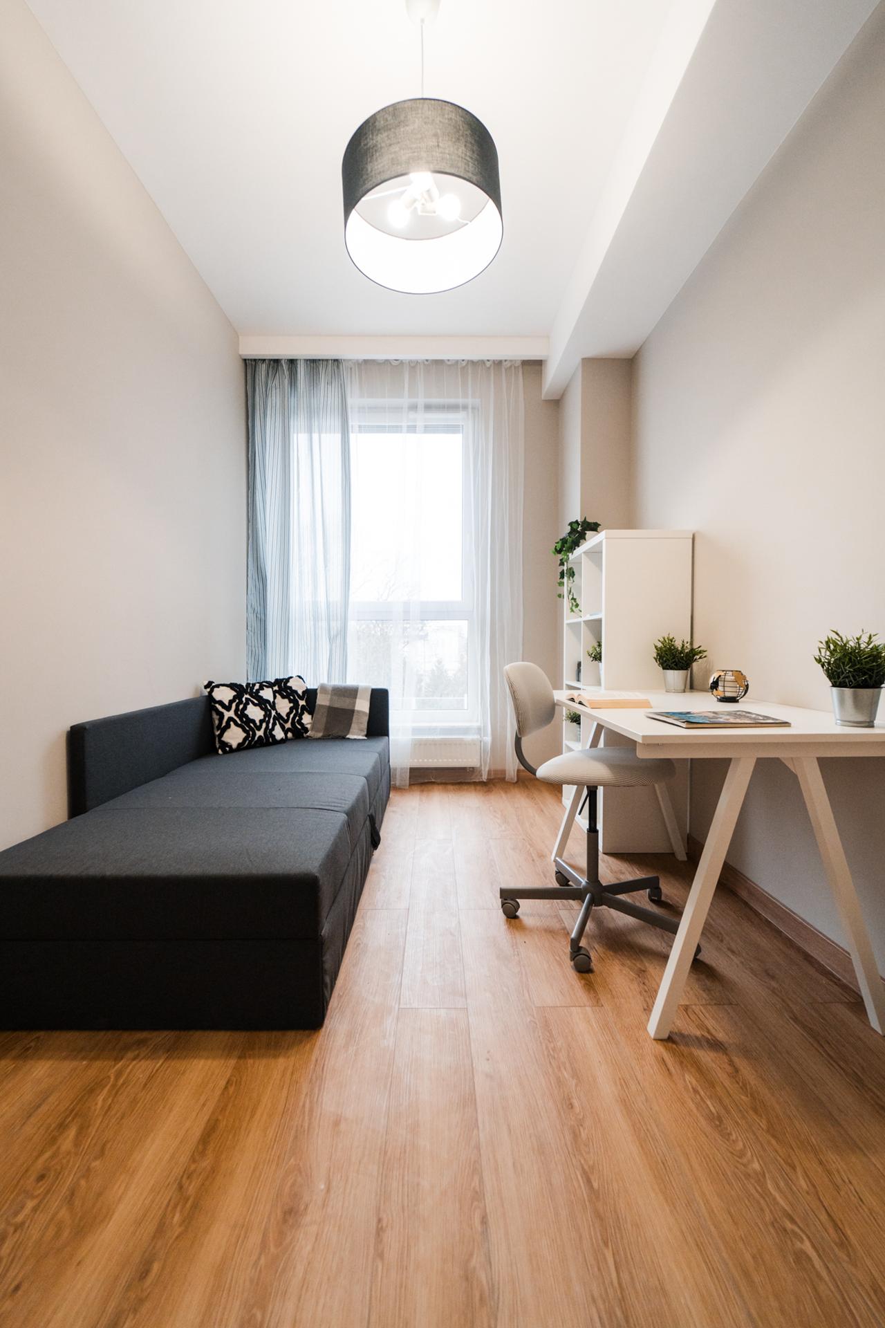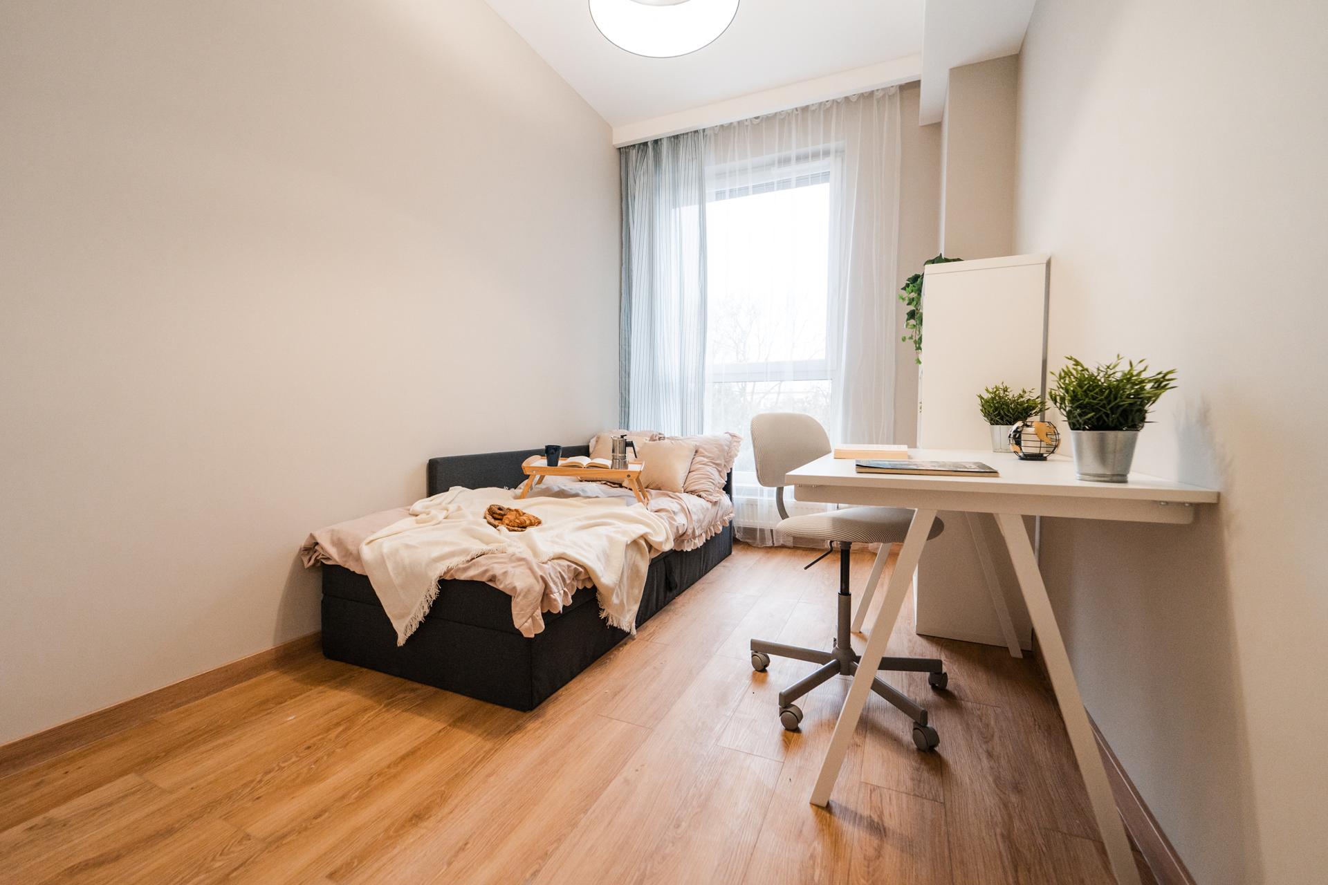 Nowoczesny pokój w 2-pokojowym klimatyzowanym mieszkaniu na zamkniętym osiedlu – ul. Długa