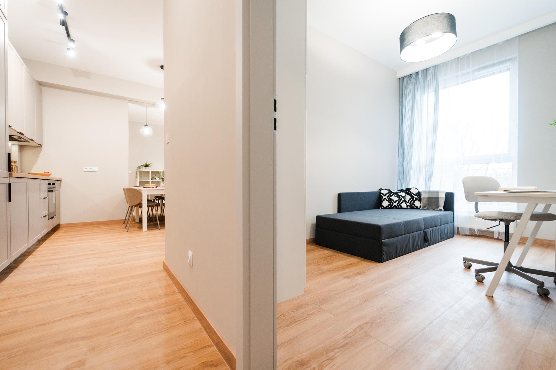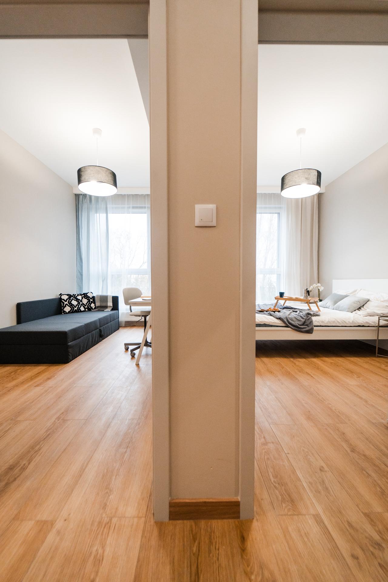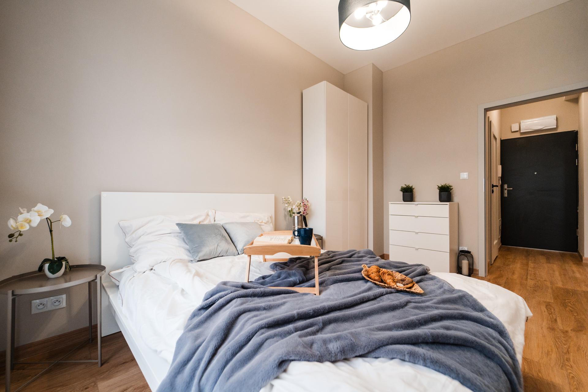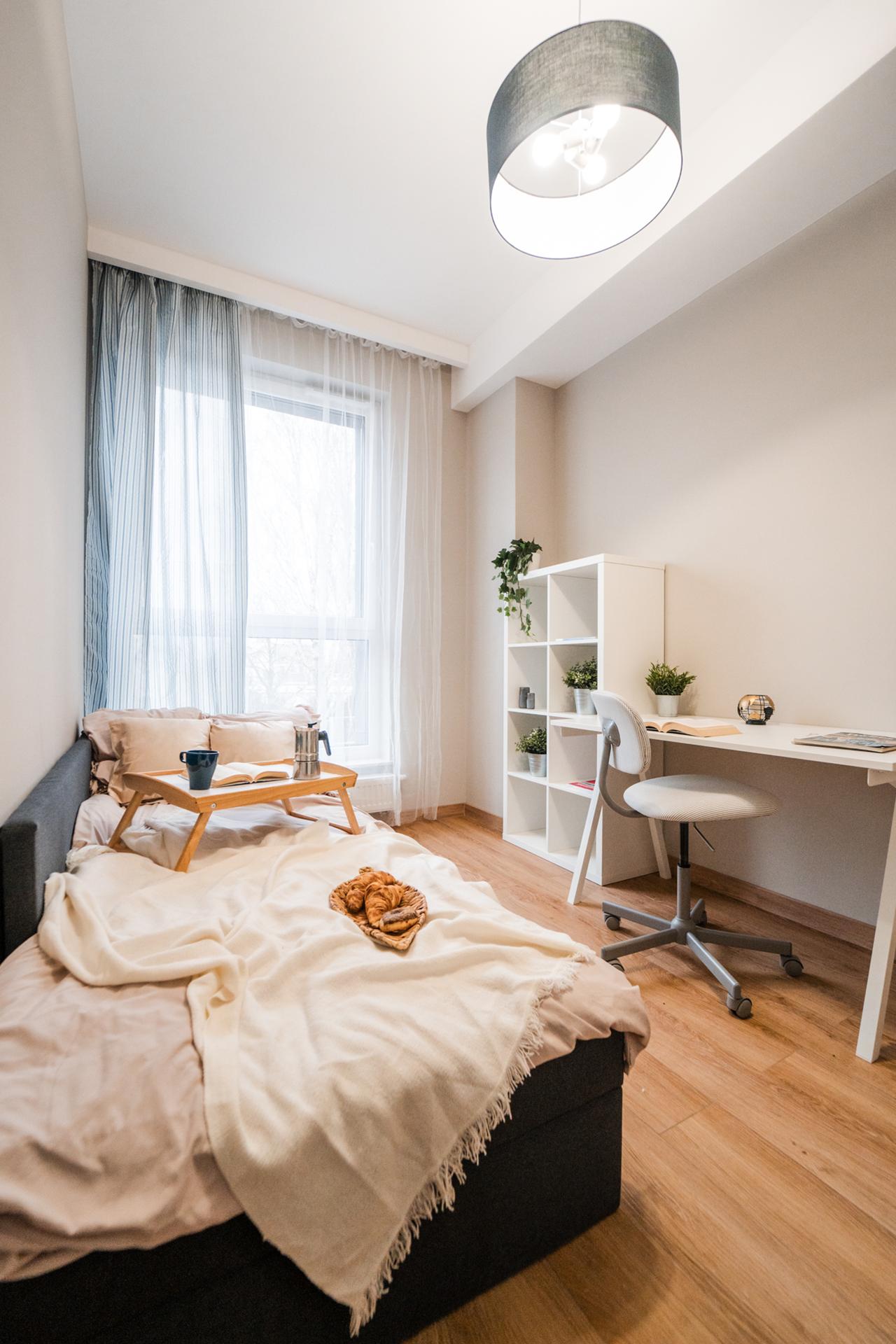 Nowoczesny pokój w 2-pokojowym klimatyzowanym mieszkaniu na zamkniętym osiedlu – ul. Długa