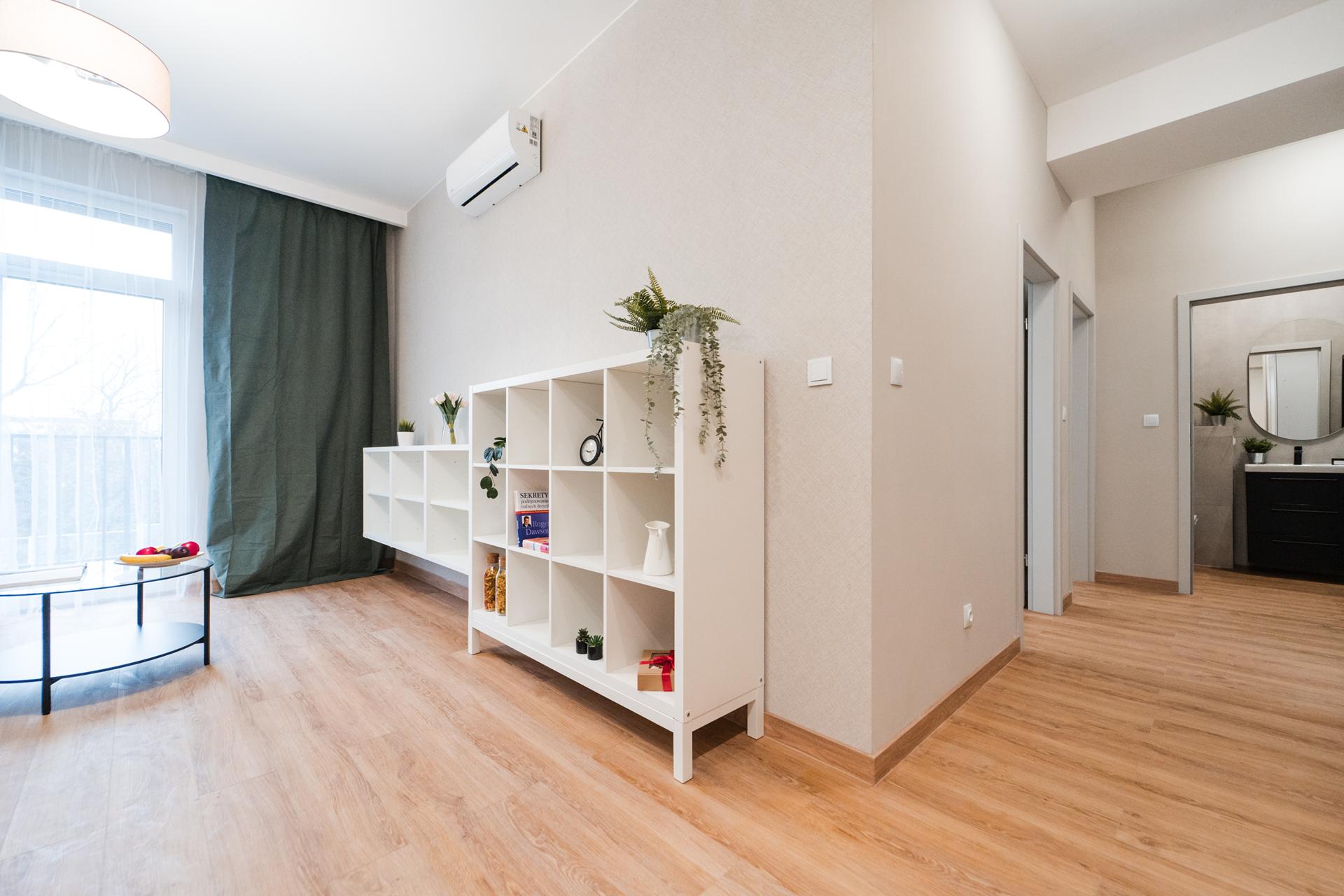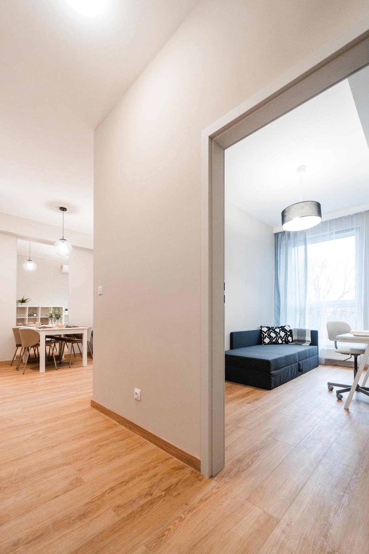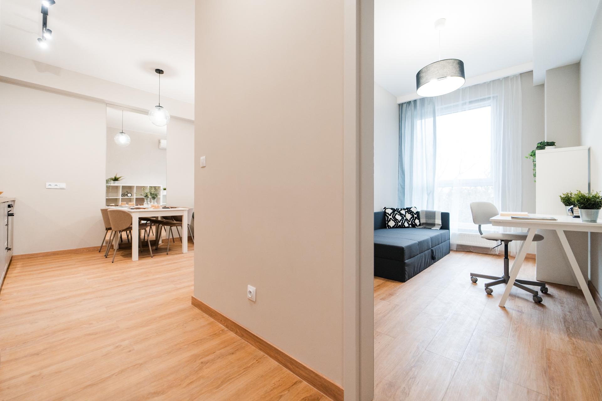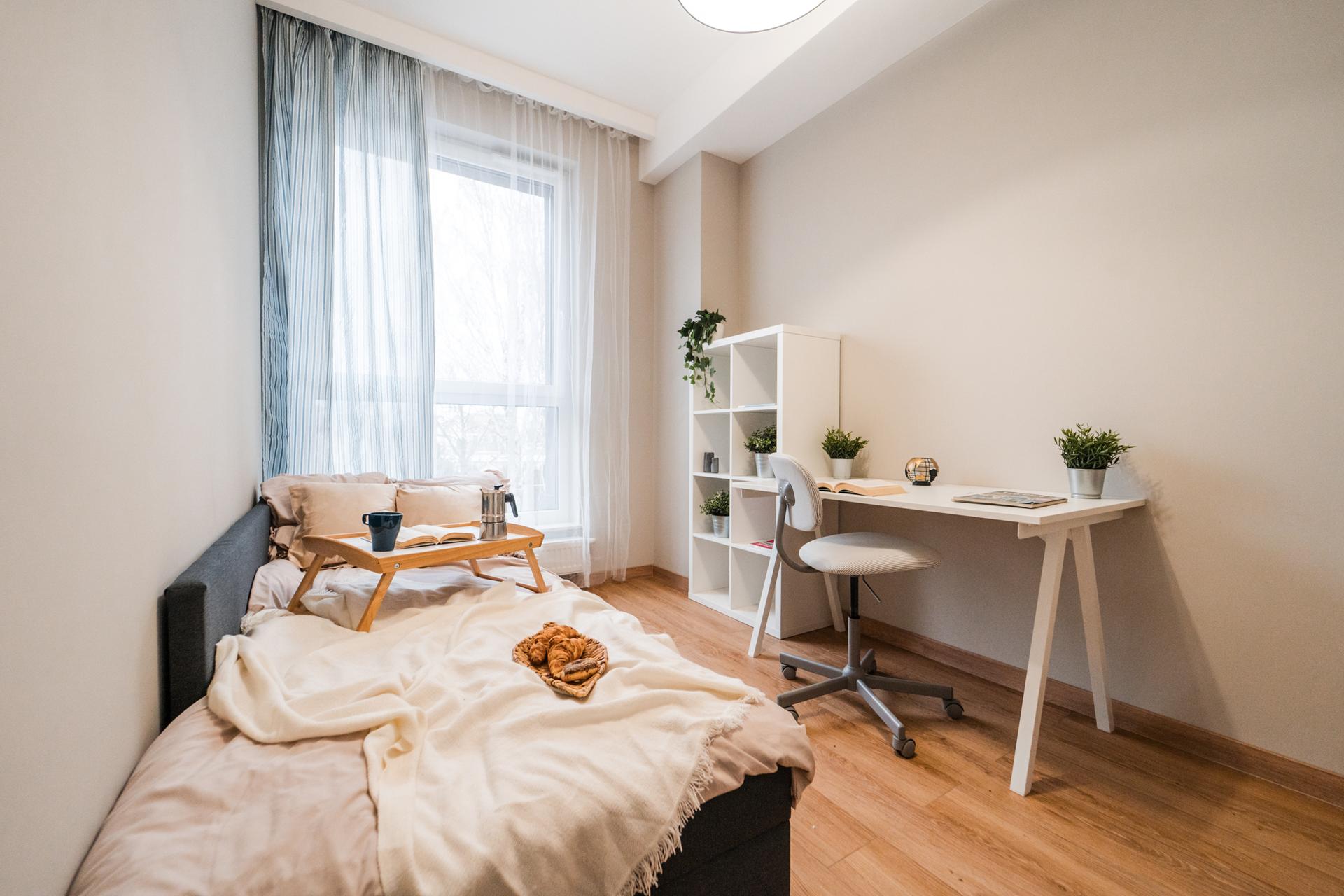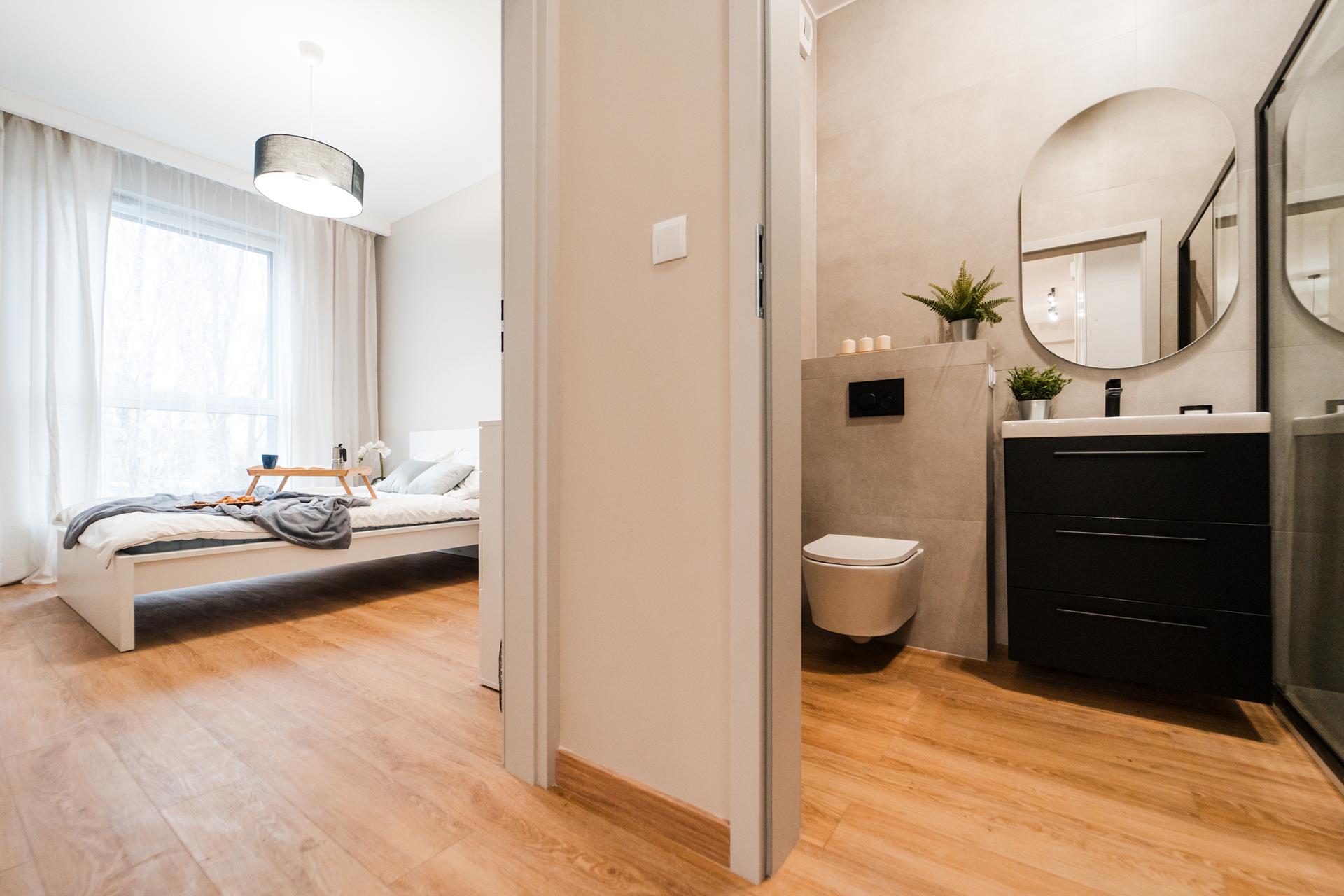 Nowoczesny pokój w 2-pokojowym klimatyzowanym mieszkaniu na zamkniętym osiedlu – ul. Długa