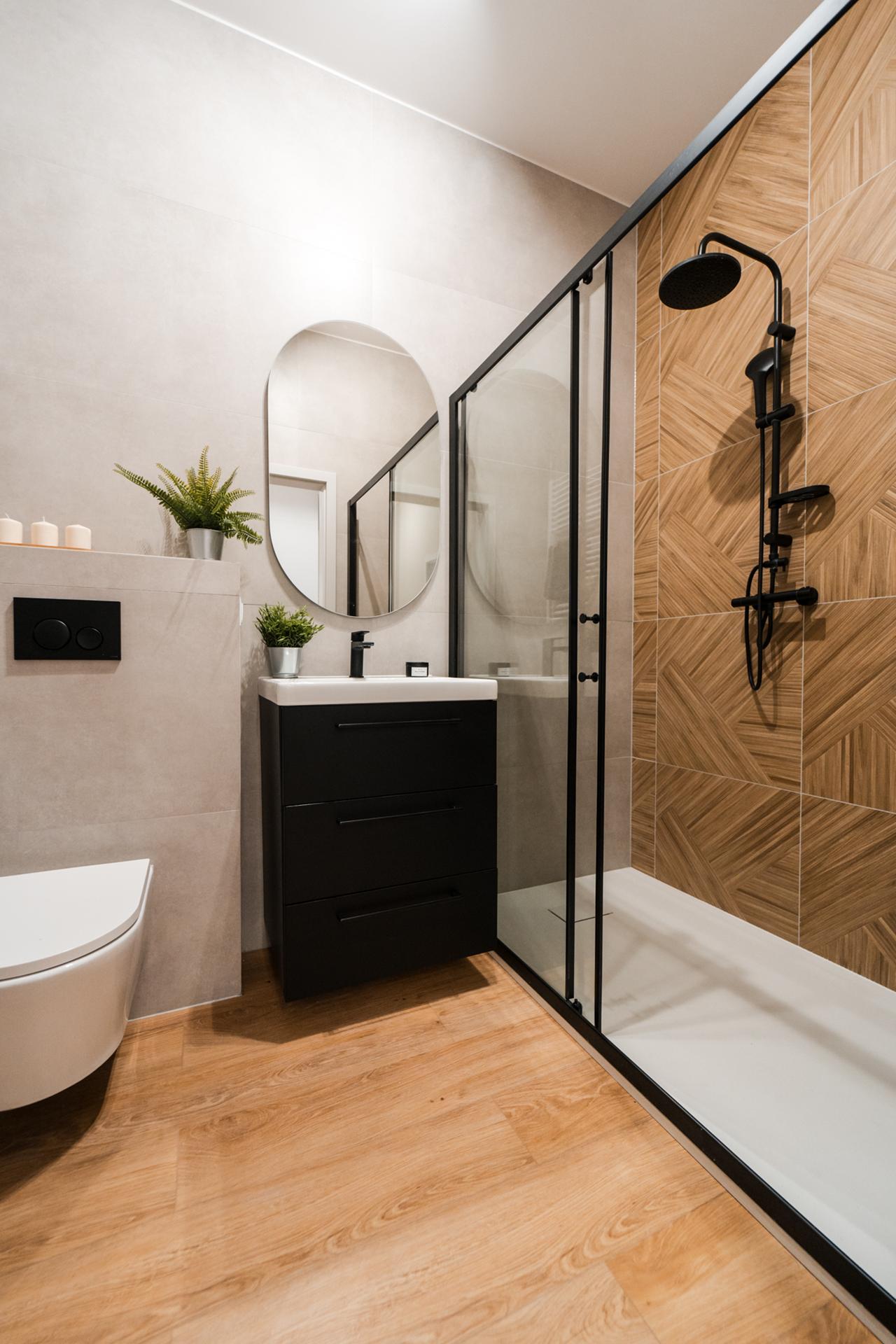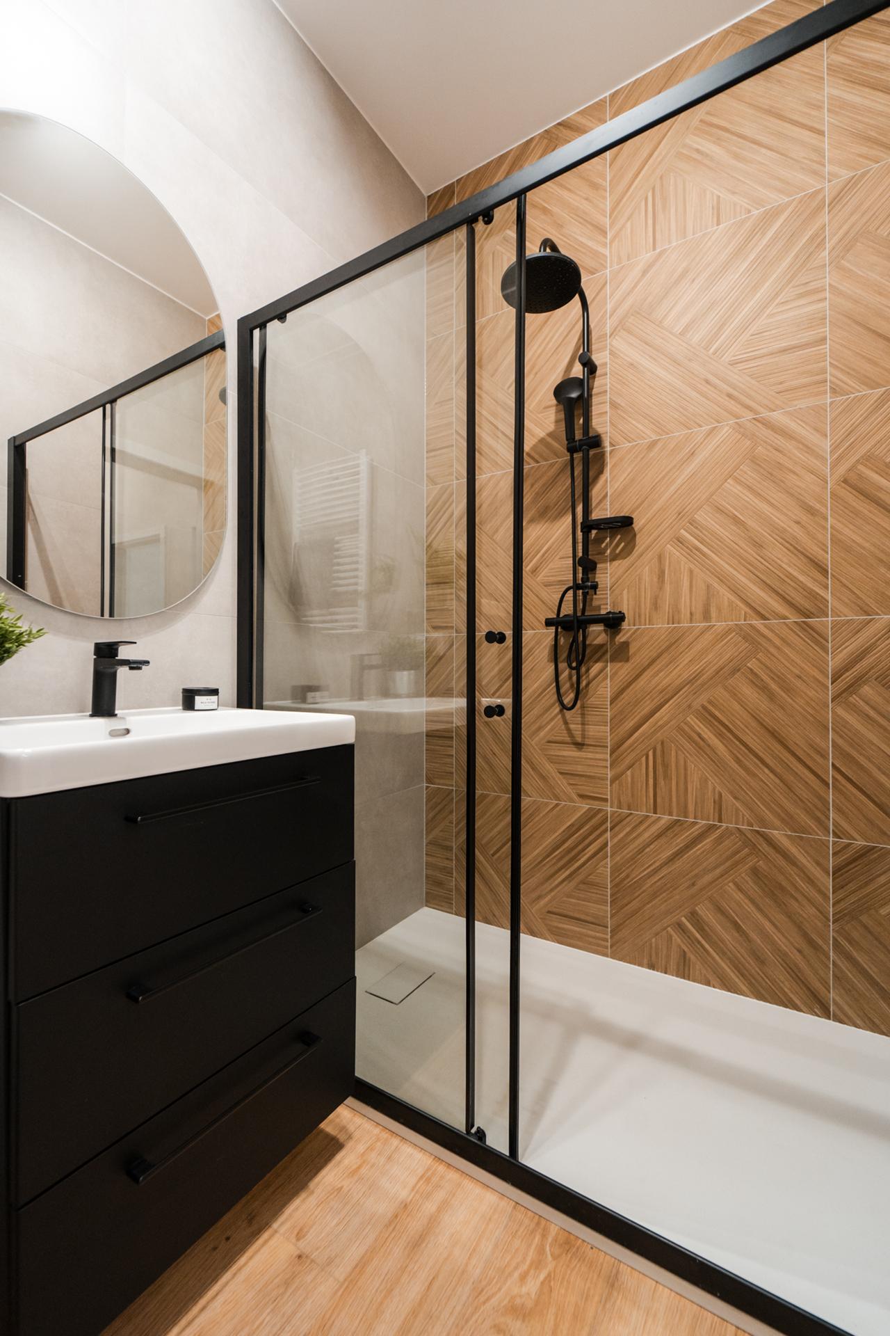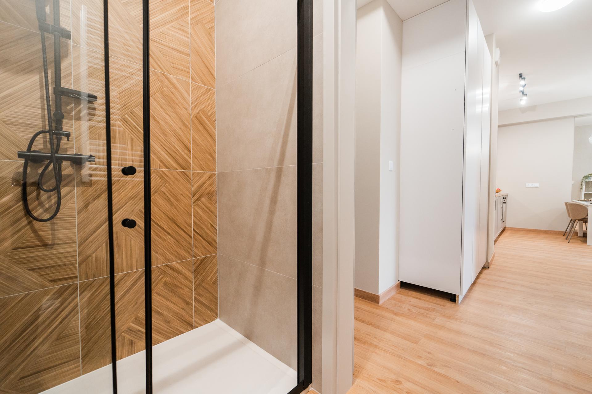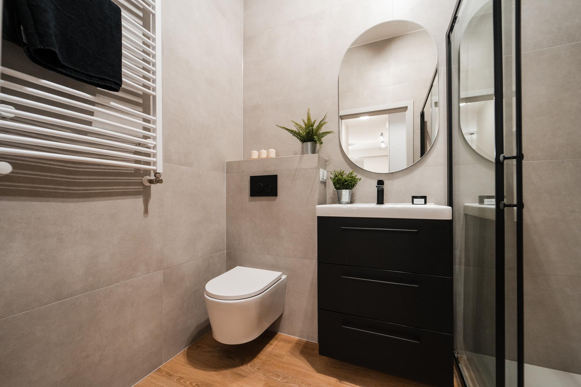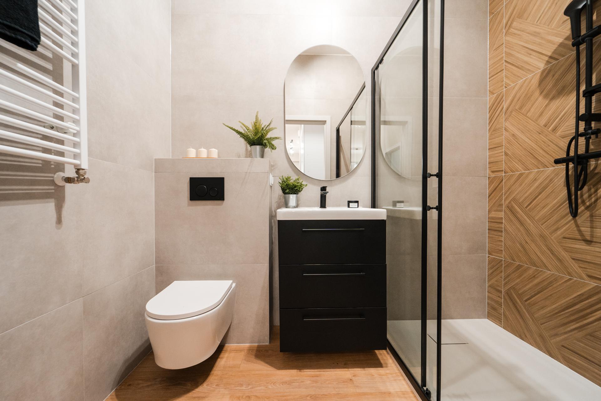 🛁 Łazienka z prysznicem, nowoczesną umywalką oraz pralkosuszarką
