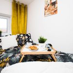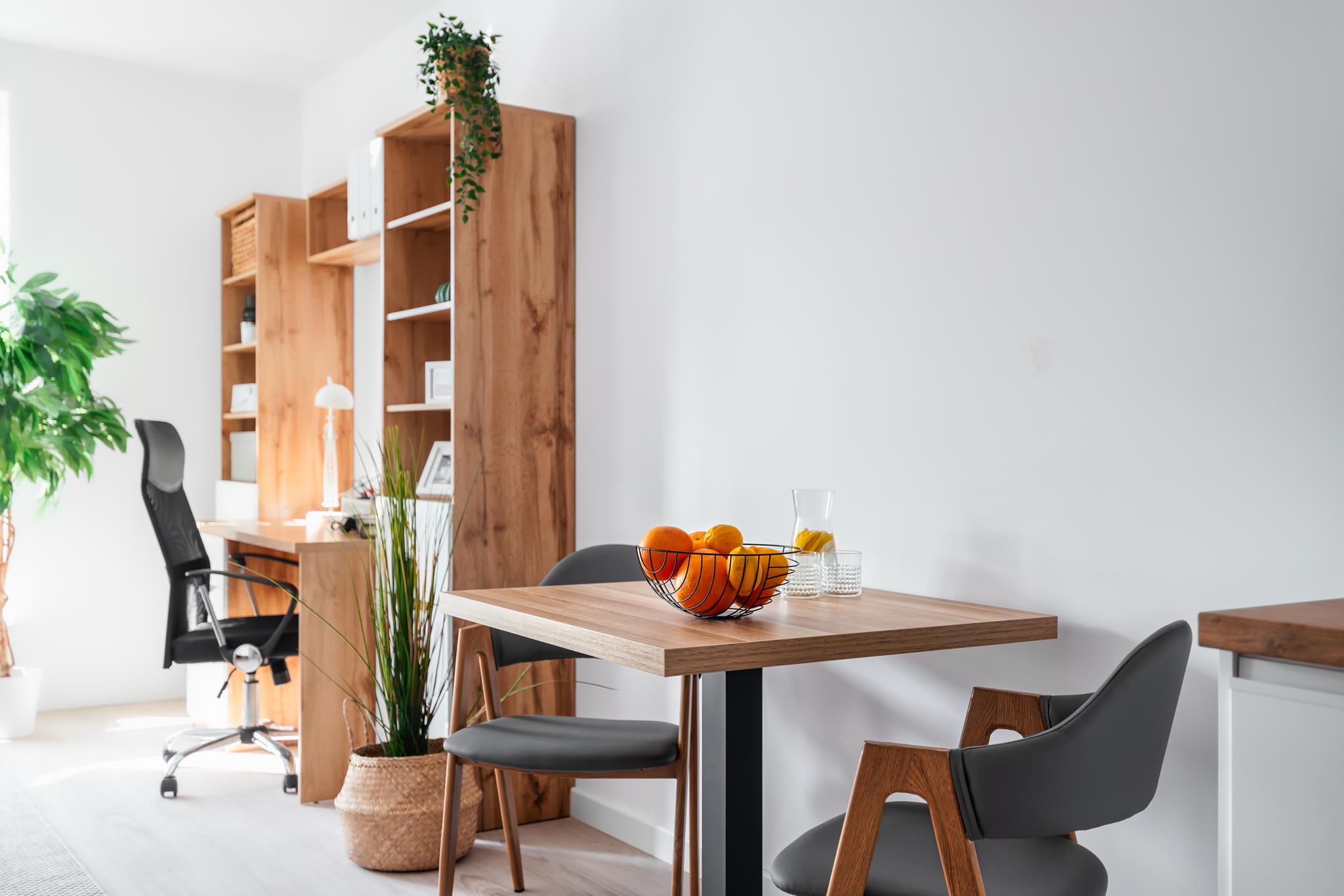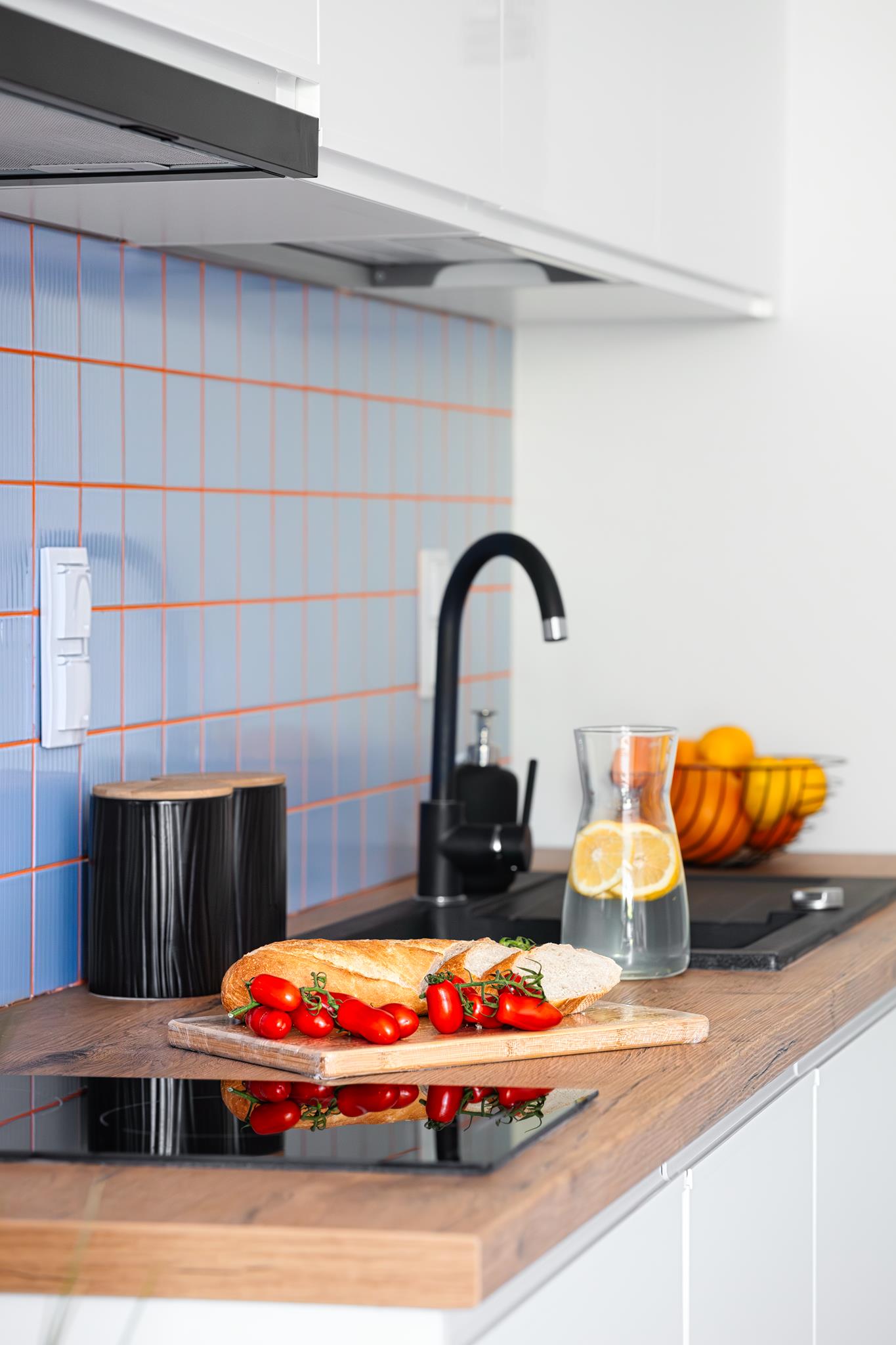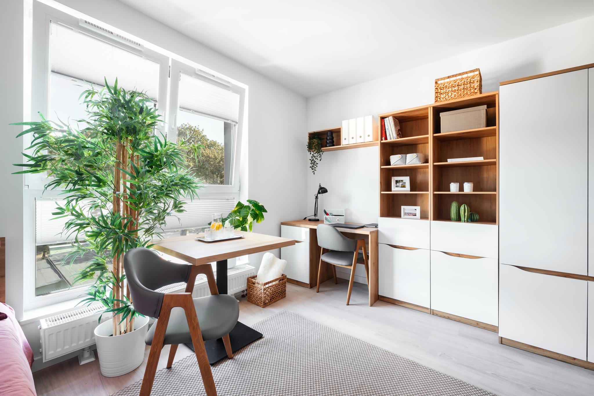 Taras wychodzący z mieszkania, z bezpośrednim dostępem do ogródka – idealne miejsce do relaksu na świeżym powietrzu. W mieszkaniu znajdziesz salon z wygodnym łóżkiem, pojemną szafą oraz szafkami do przechowywania i biurkiem do pracy czy nauki. W salonie znajduje się klimatyzacja pozwalająca regulować temperaturę oraz jakość powietrza. Aneks kuchenny z miejscem do wygodnego zjedzenia posiłków wraz z niezbędnym wyposażeniem takim jak: