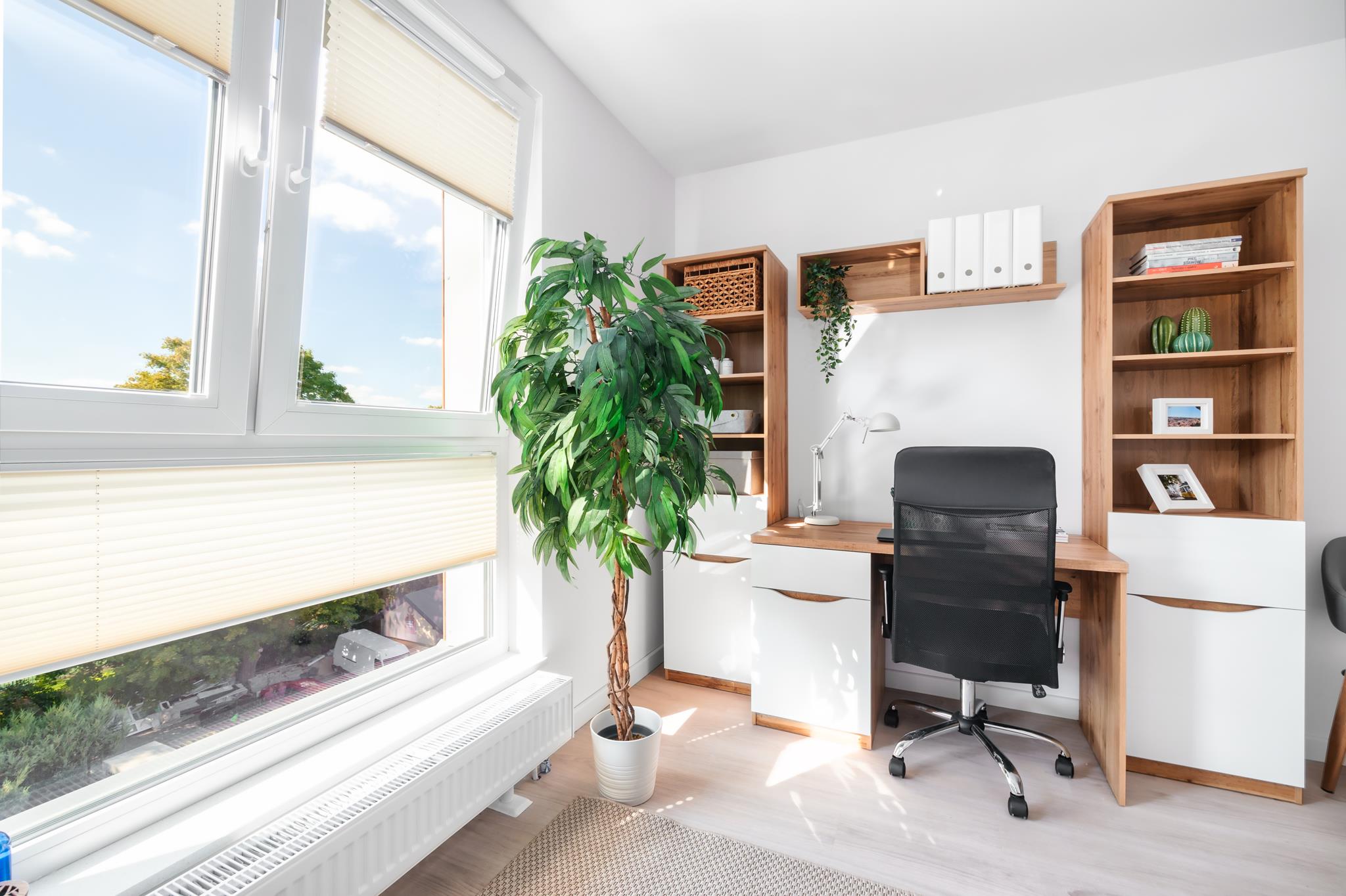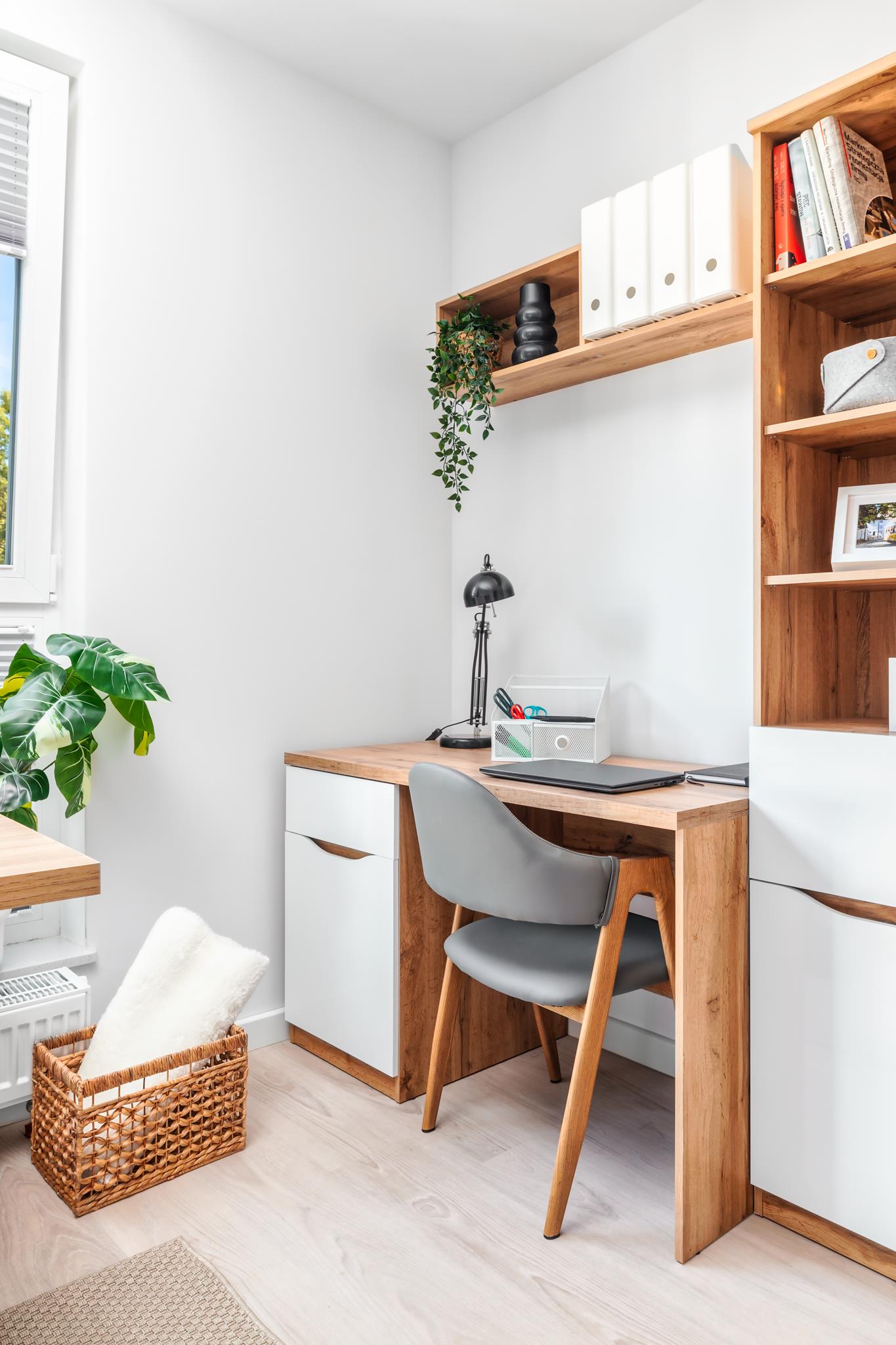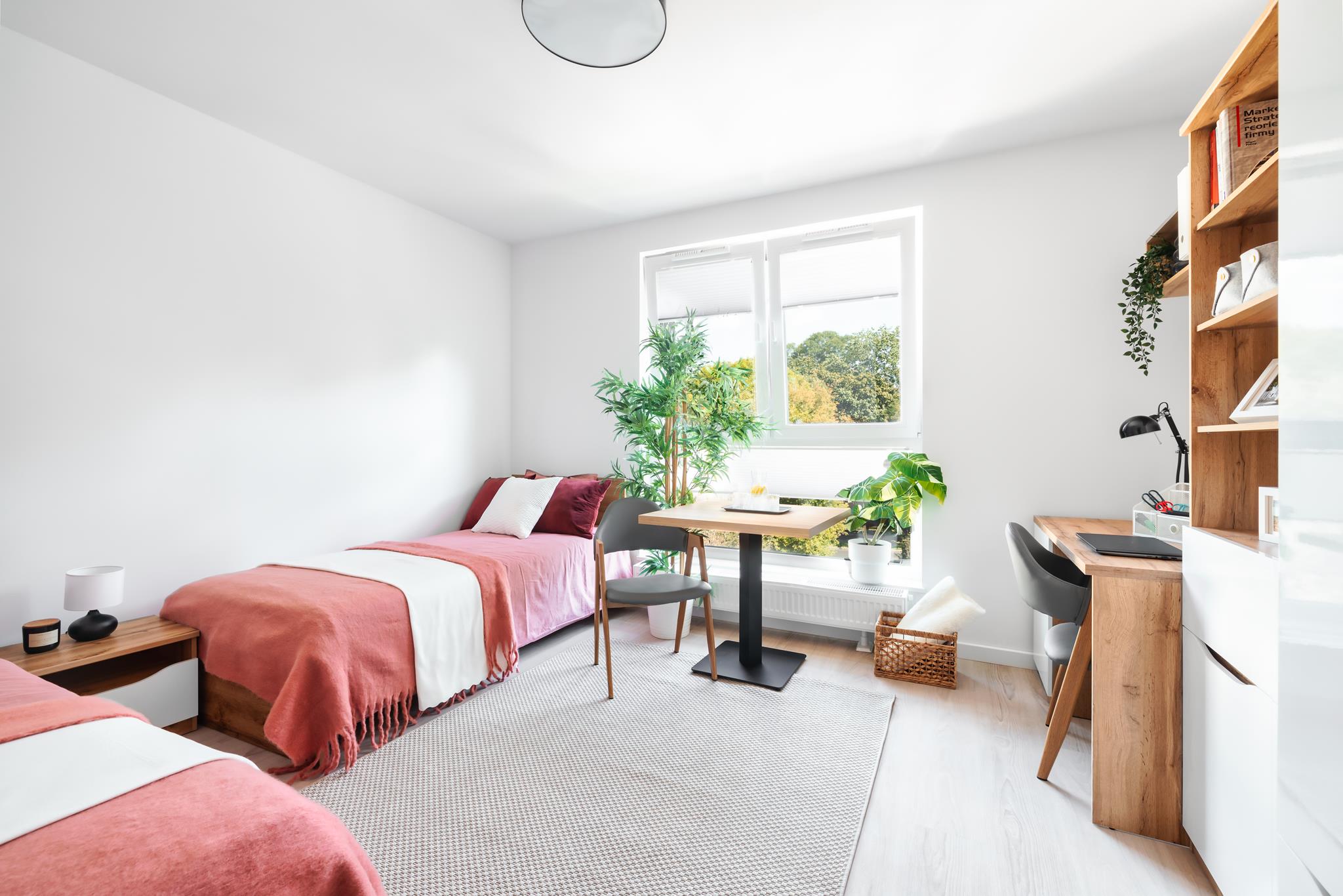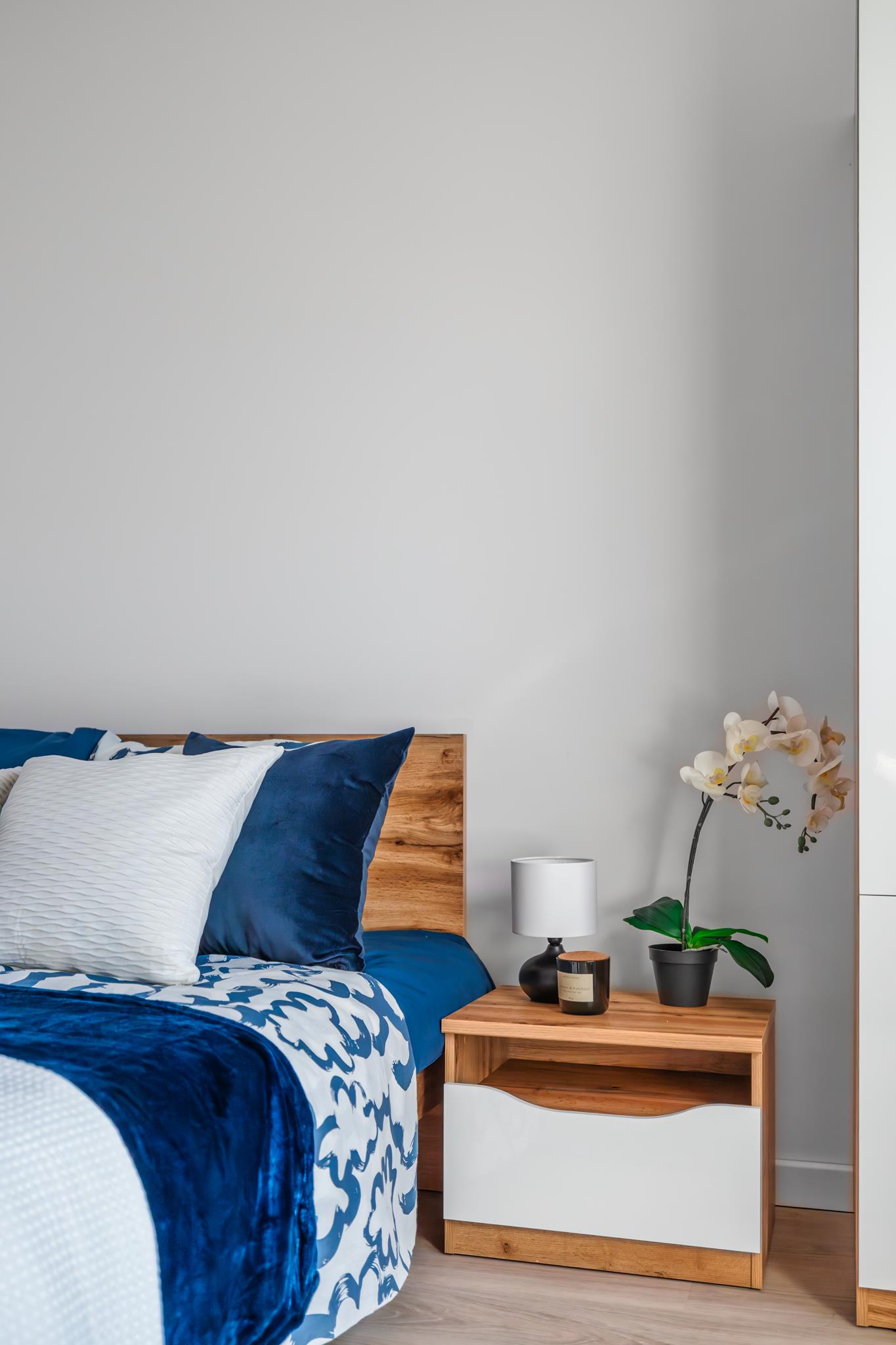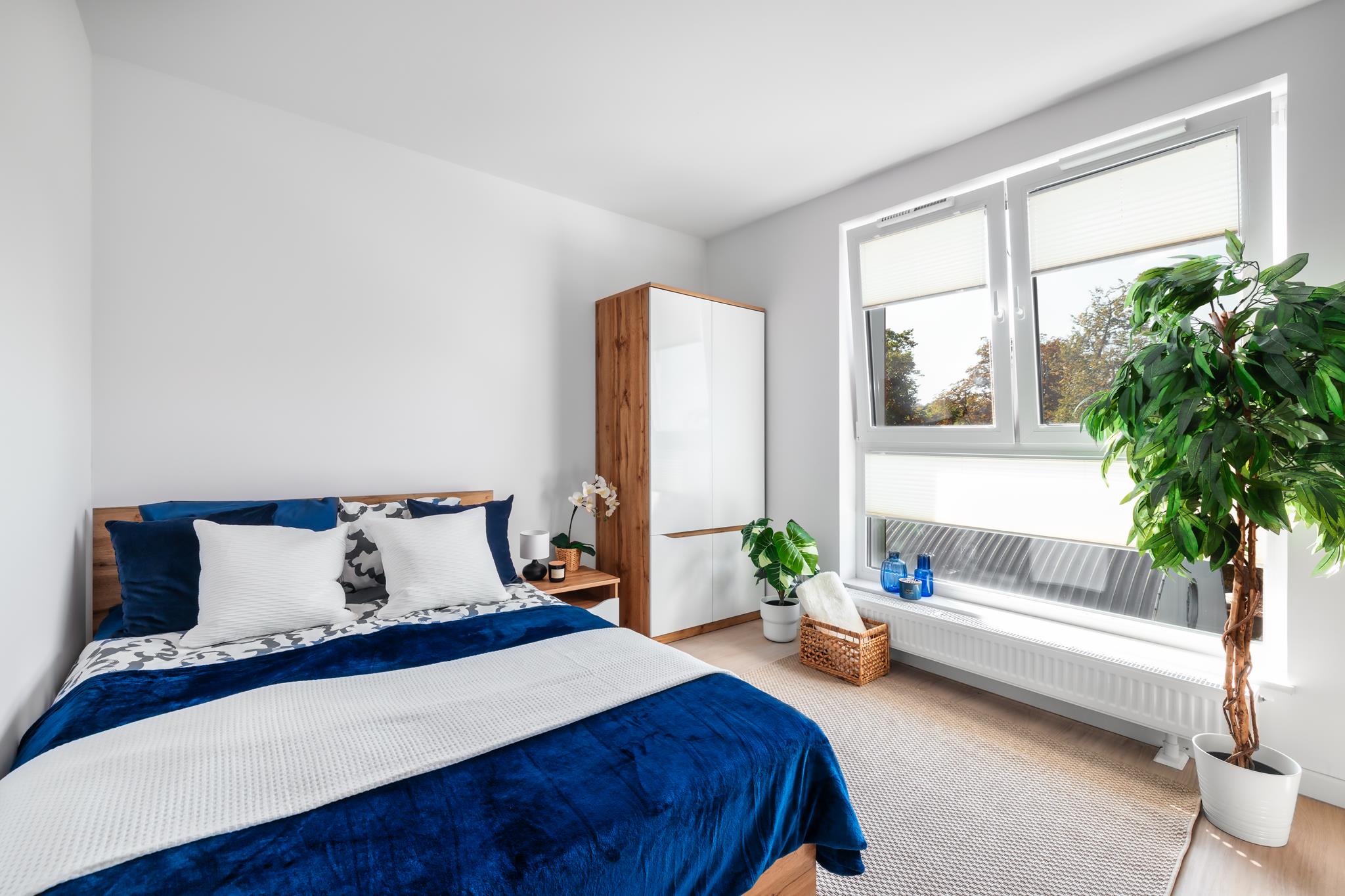 ☀️ Na wyposażeniu wygodne, duże łóżko, pojemna szafa, szafki do przechowywania, biurko do pracy lub nauki oraz wygodne krzesło