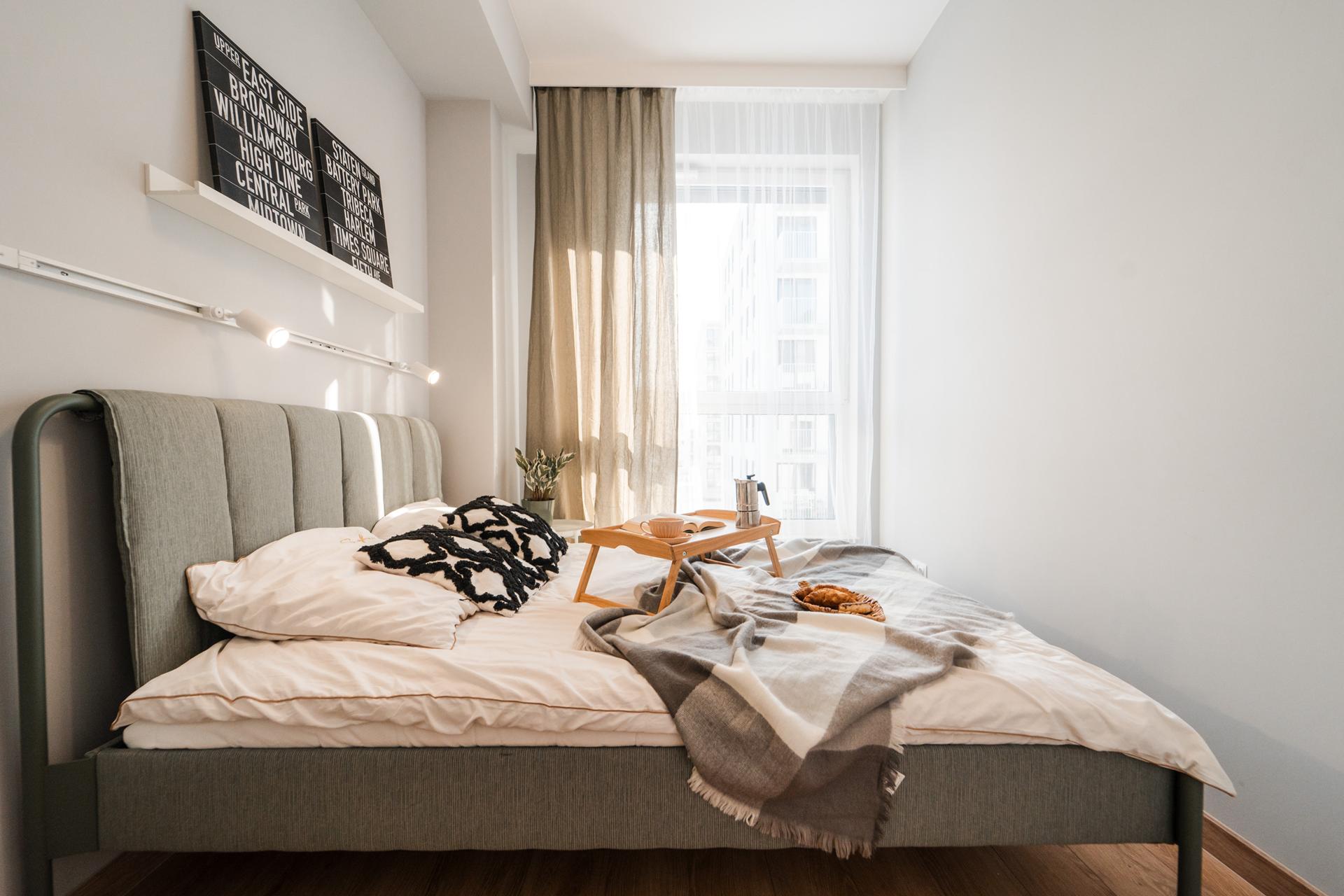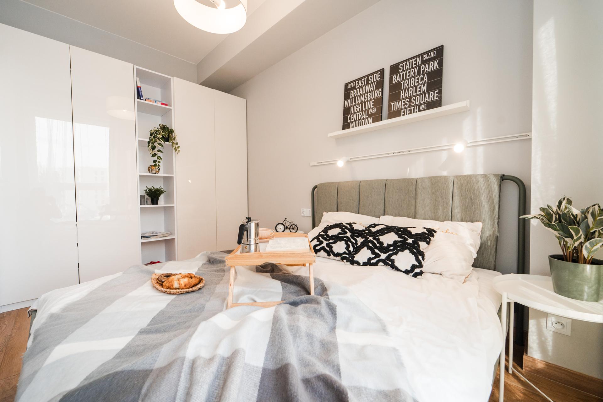 🛏 Sypialnia z dużym, wygodnym łóżkiem, dużą, pojemną szafą