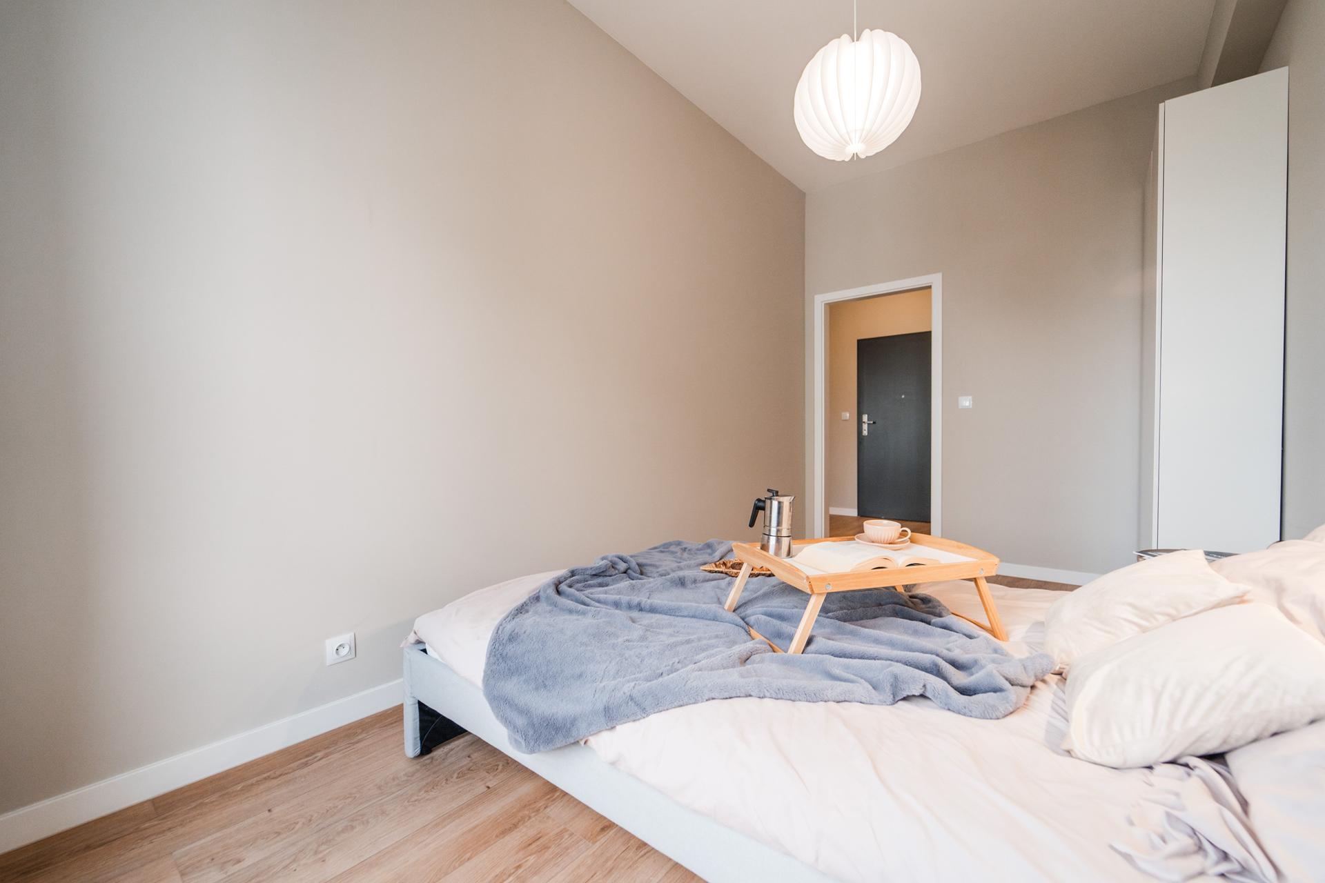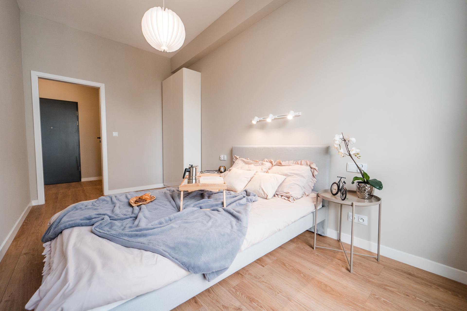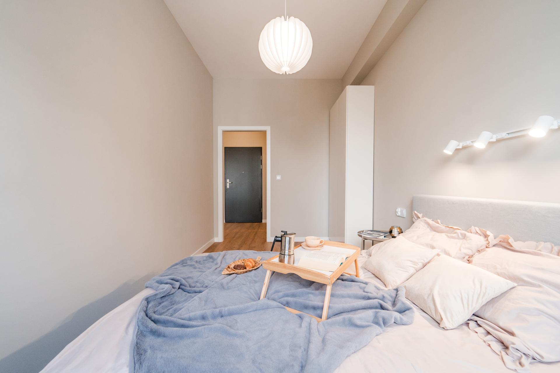 🛏 Sypialnia z dużym, wygodnym łóżkiem, dużą, pojemną szafą