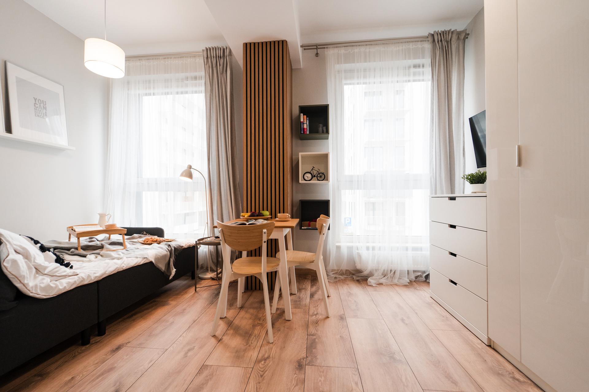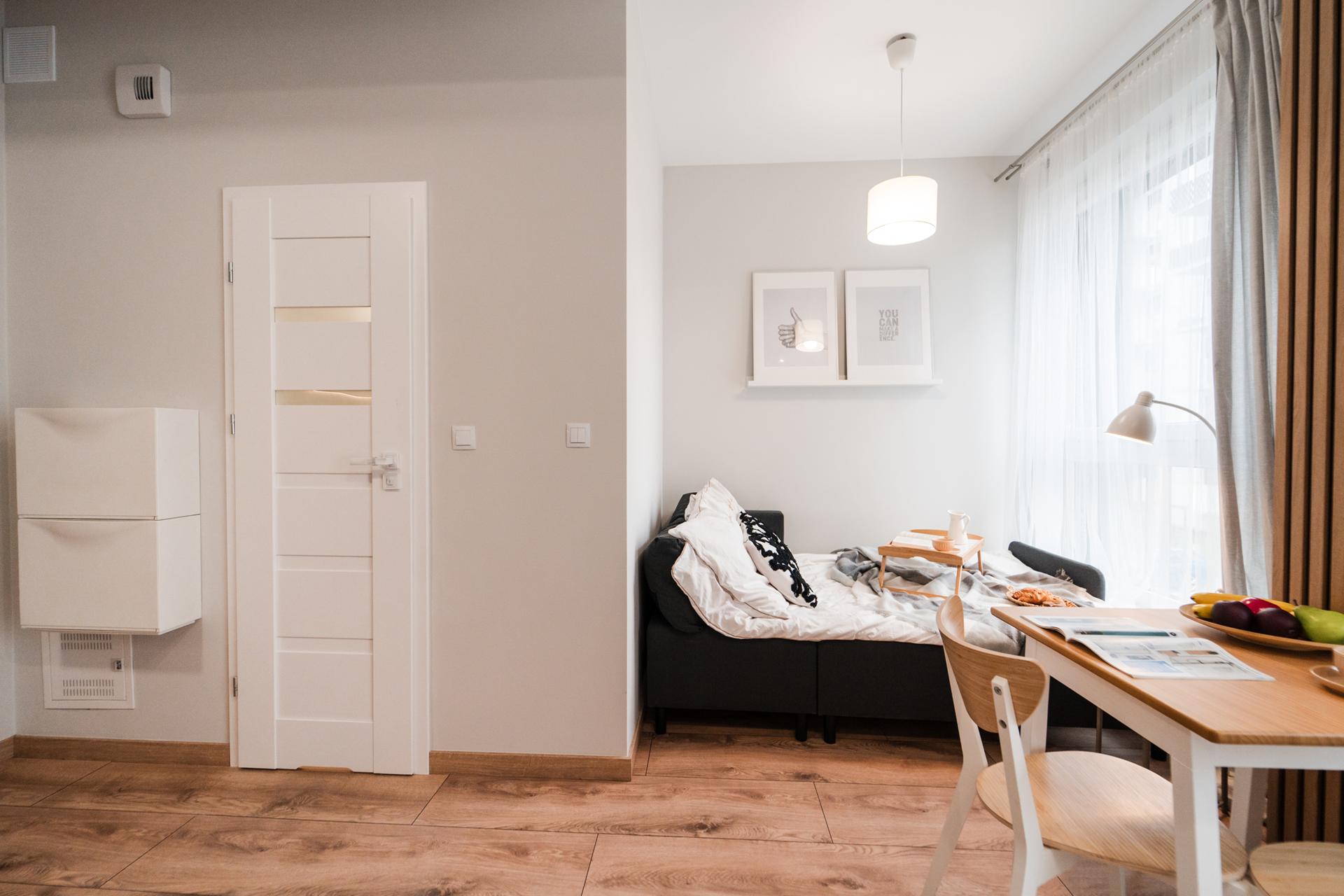 ☀️ Jasne mieszkanie z bardzo komfortową, rozkładaną sofą z funkcją spania, pojemną szafą i komodą oraz TV