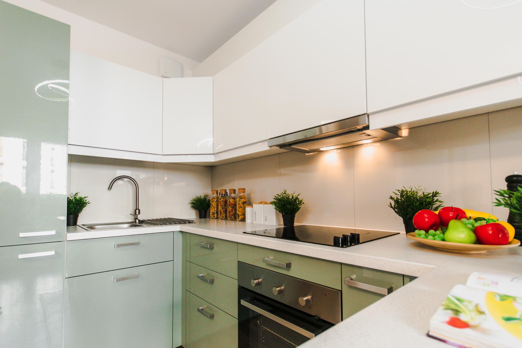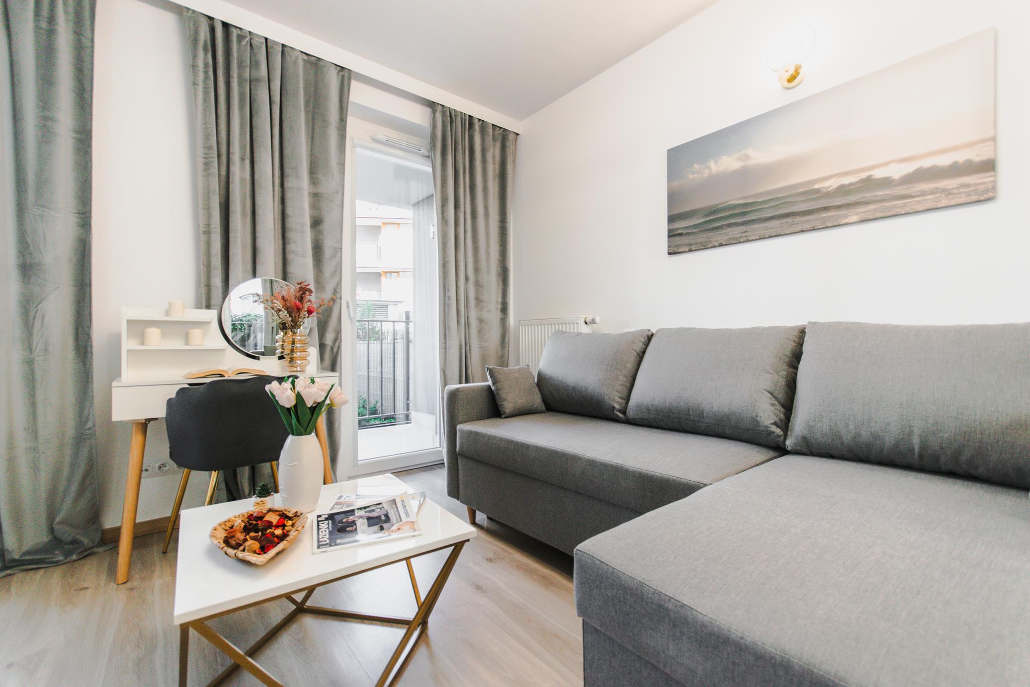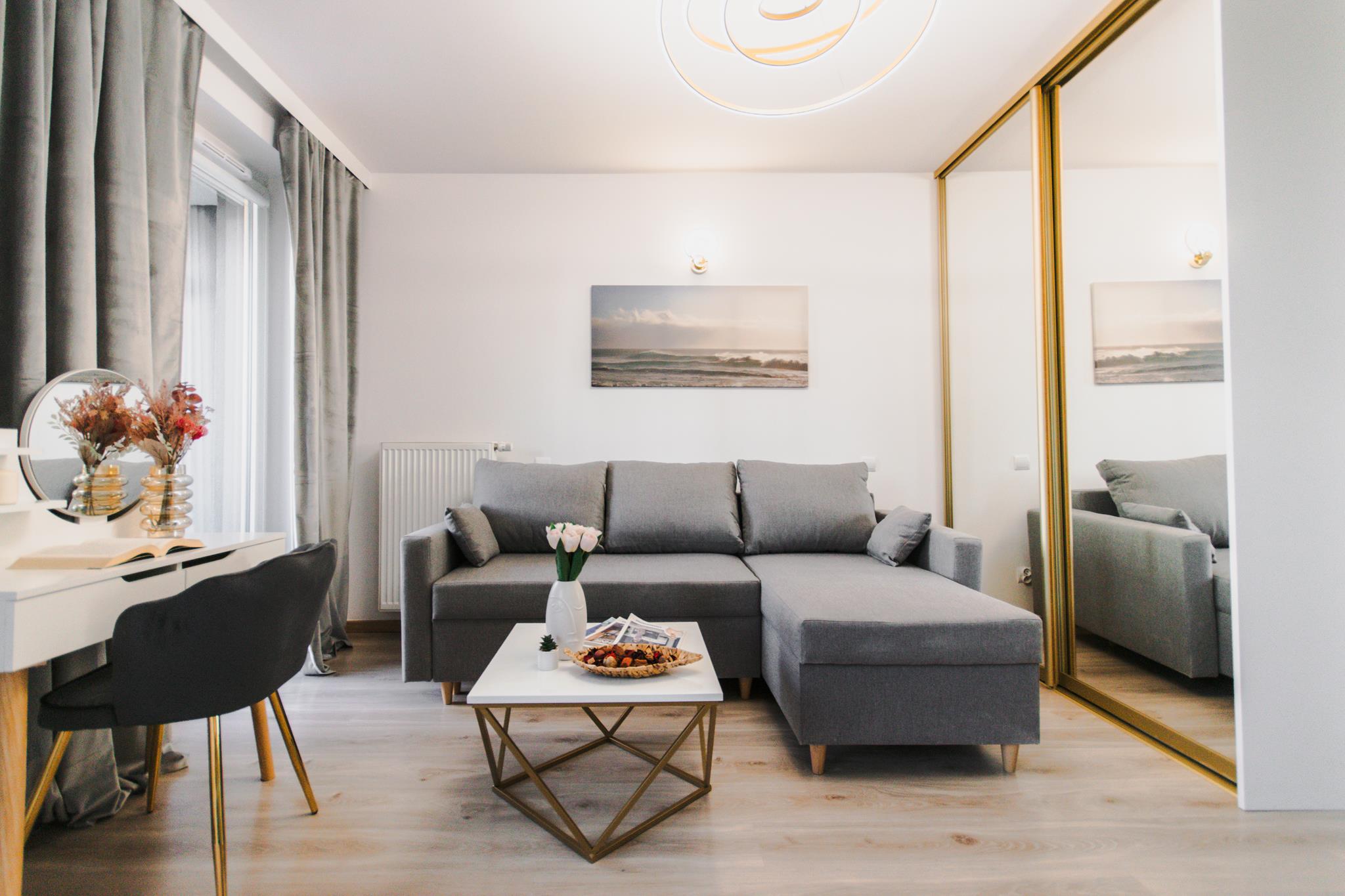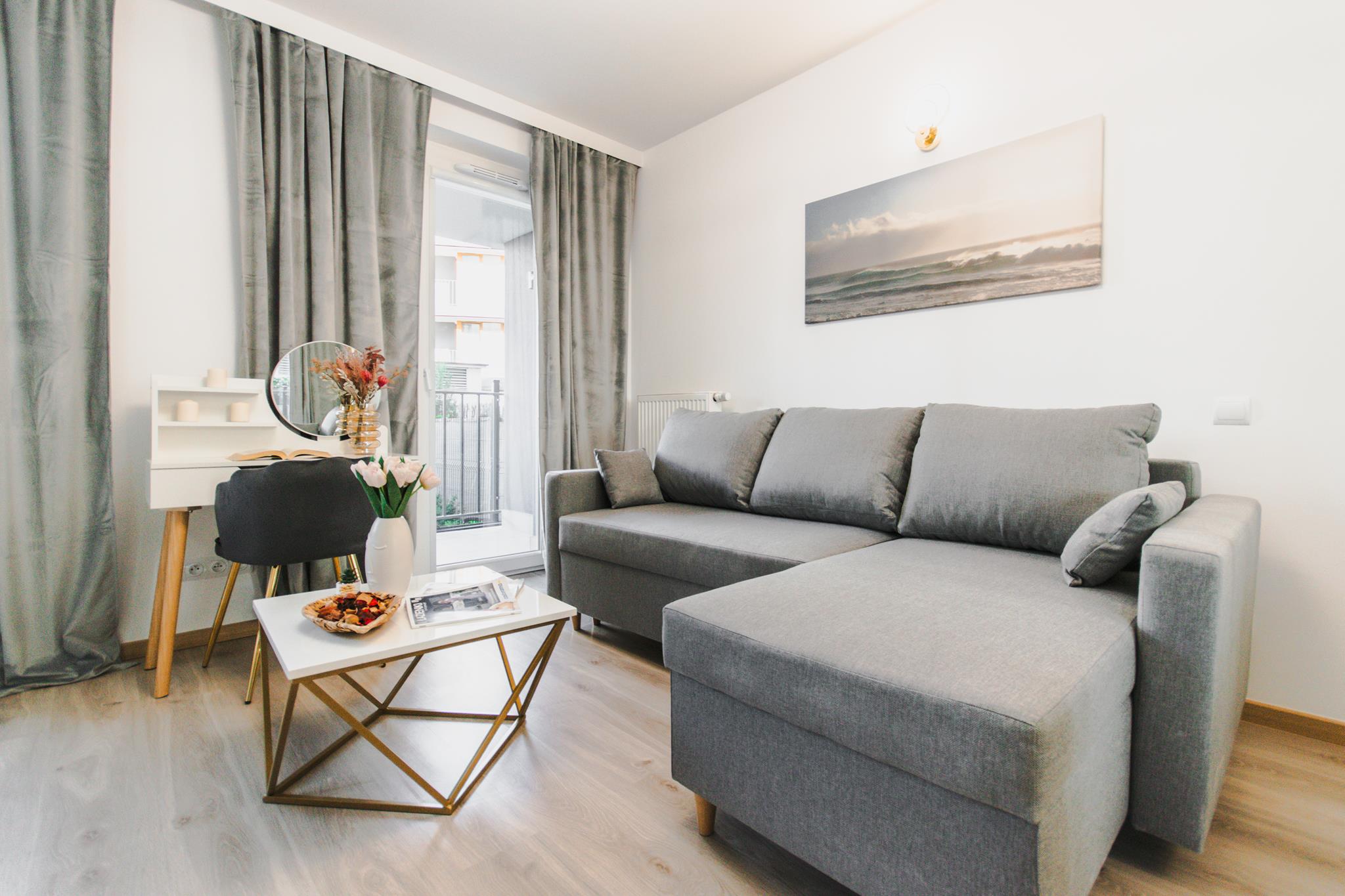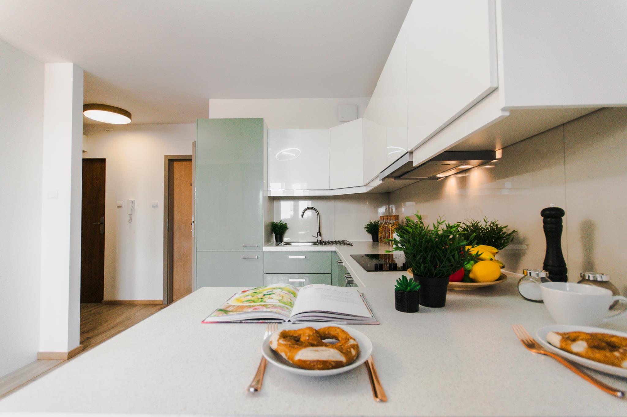 W mieszkaniu znajdziesz salon z wygodnym łóżkiem, dużą, pojemną szafą z lustrami oraz szafkami do przechowywania i biurkiem do pracy czy nauki. Aneks kuchenny z miejscem do wygodnego zjedzenia posiłków wraz z pełnym wyposażeniem takim jak: