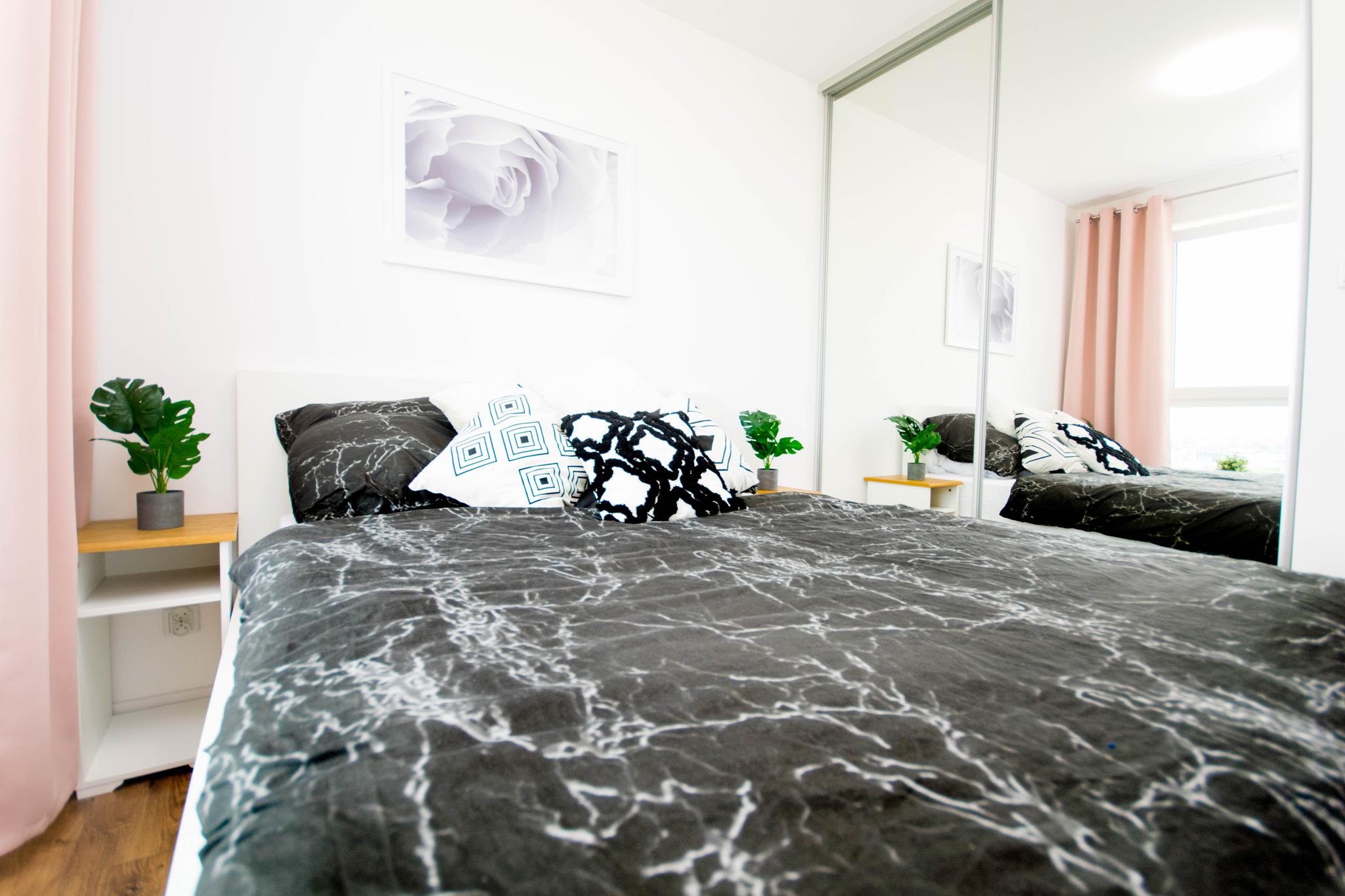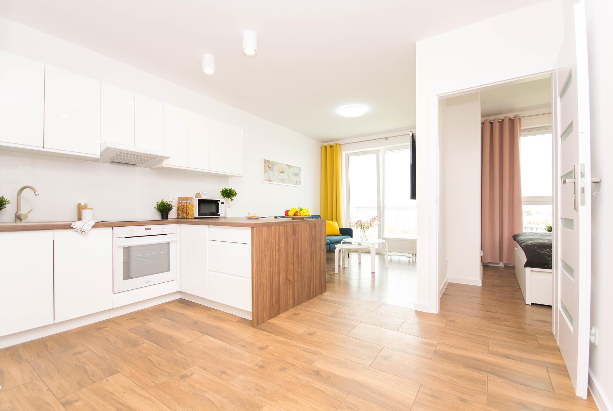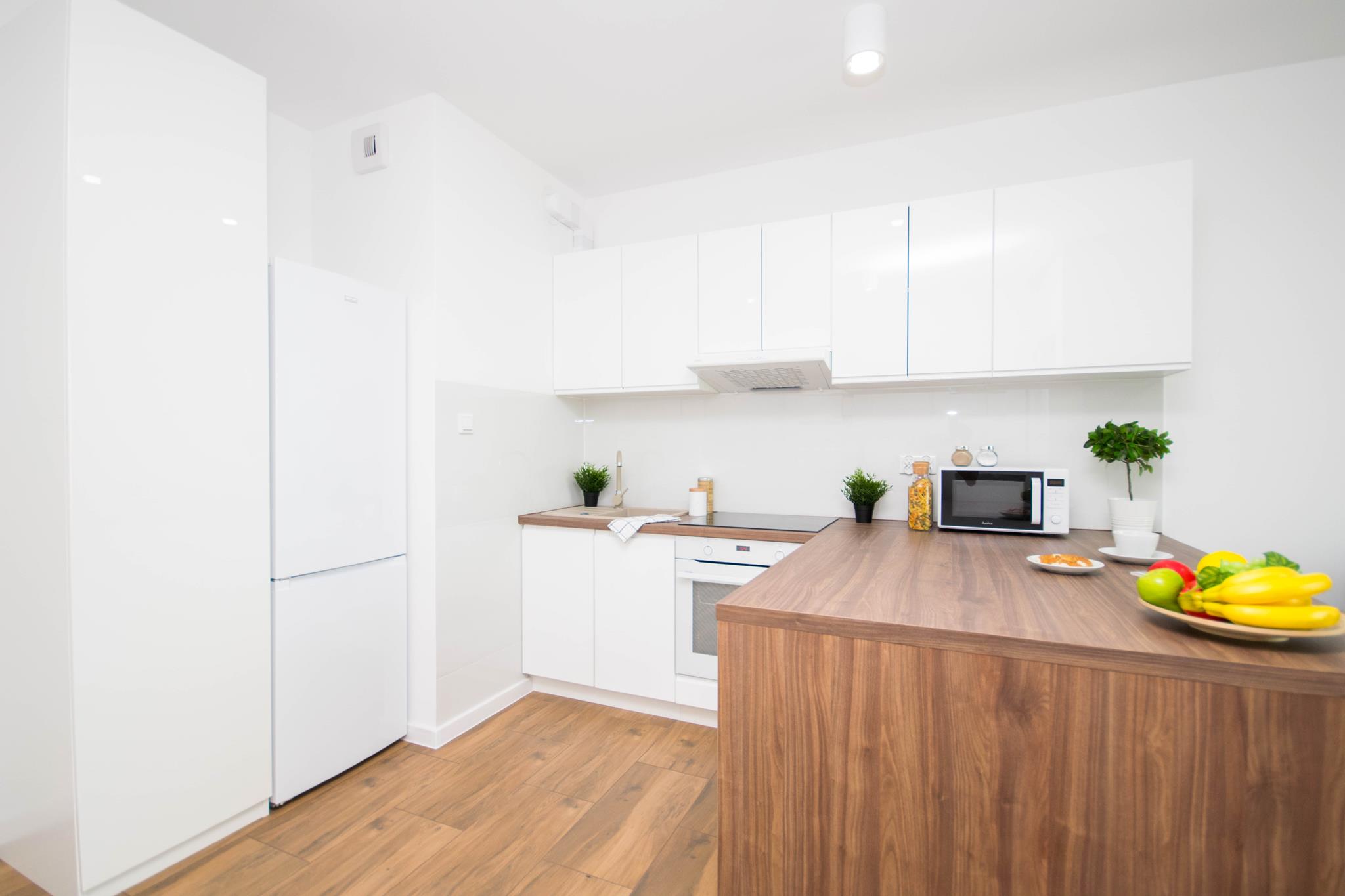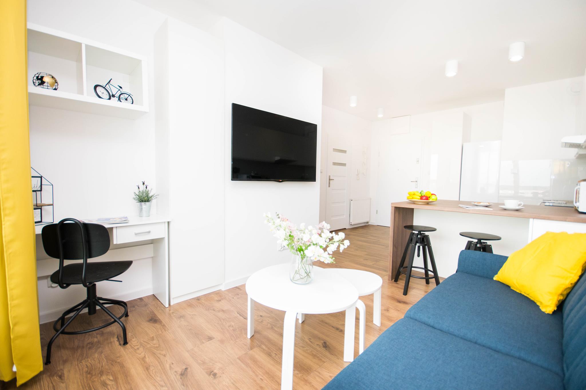 W mieszkaniu znajdziesz przedpokój z szafą i lustrem. Nowoczesny salon z częścią wypoczynkową z sofą oraz stolikiem, komodą oraz oczywiście telewizorem ze smart TV. Przestronna kuchnia, w której znajdziesz wszystkie niezbędne sprzęty AGD, takie jak: