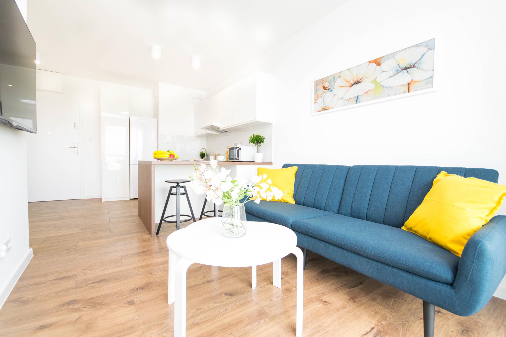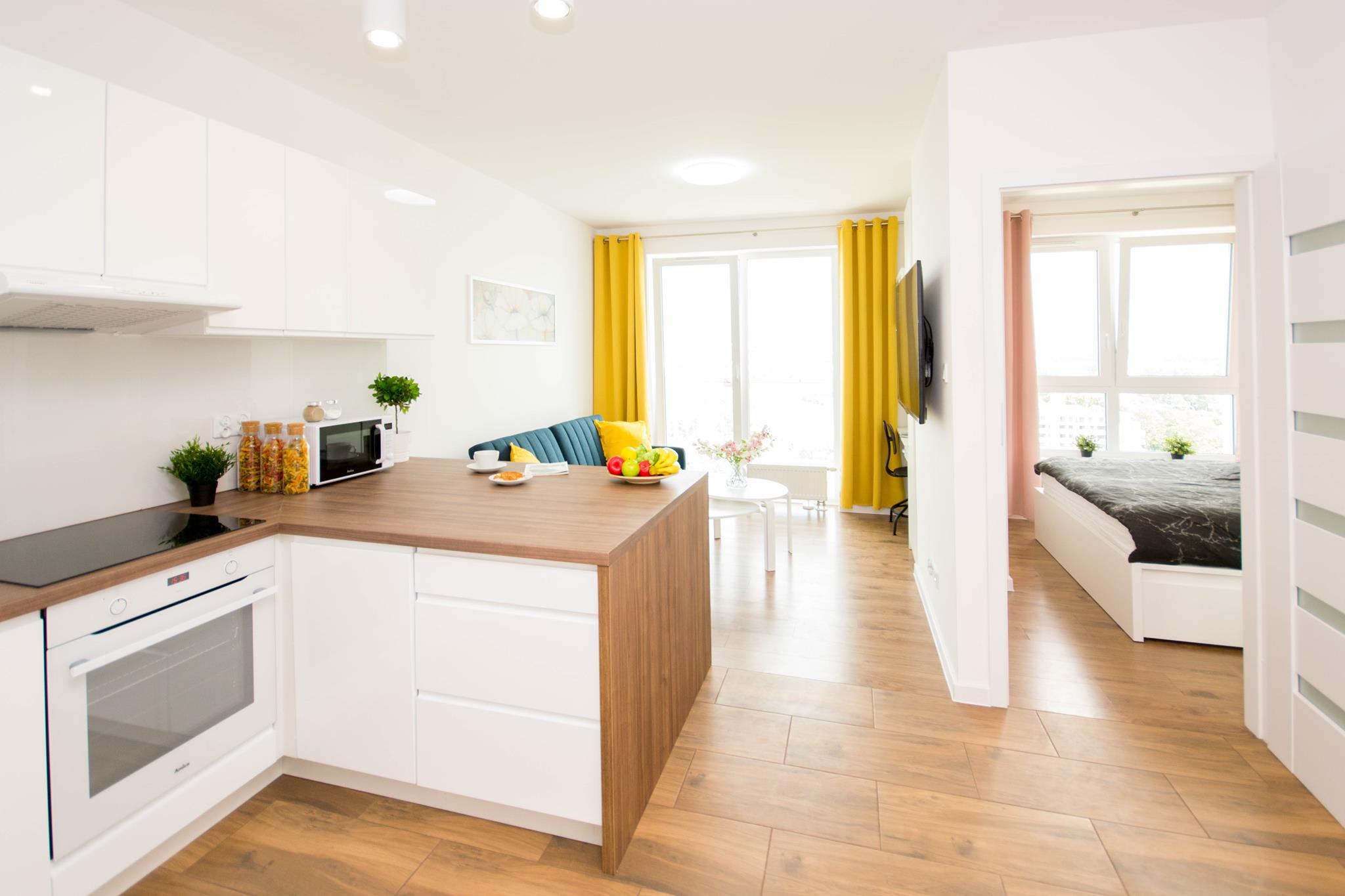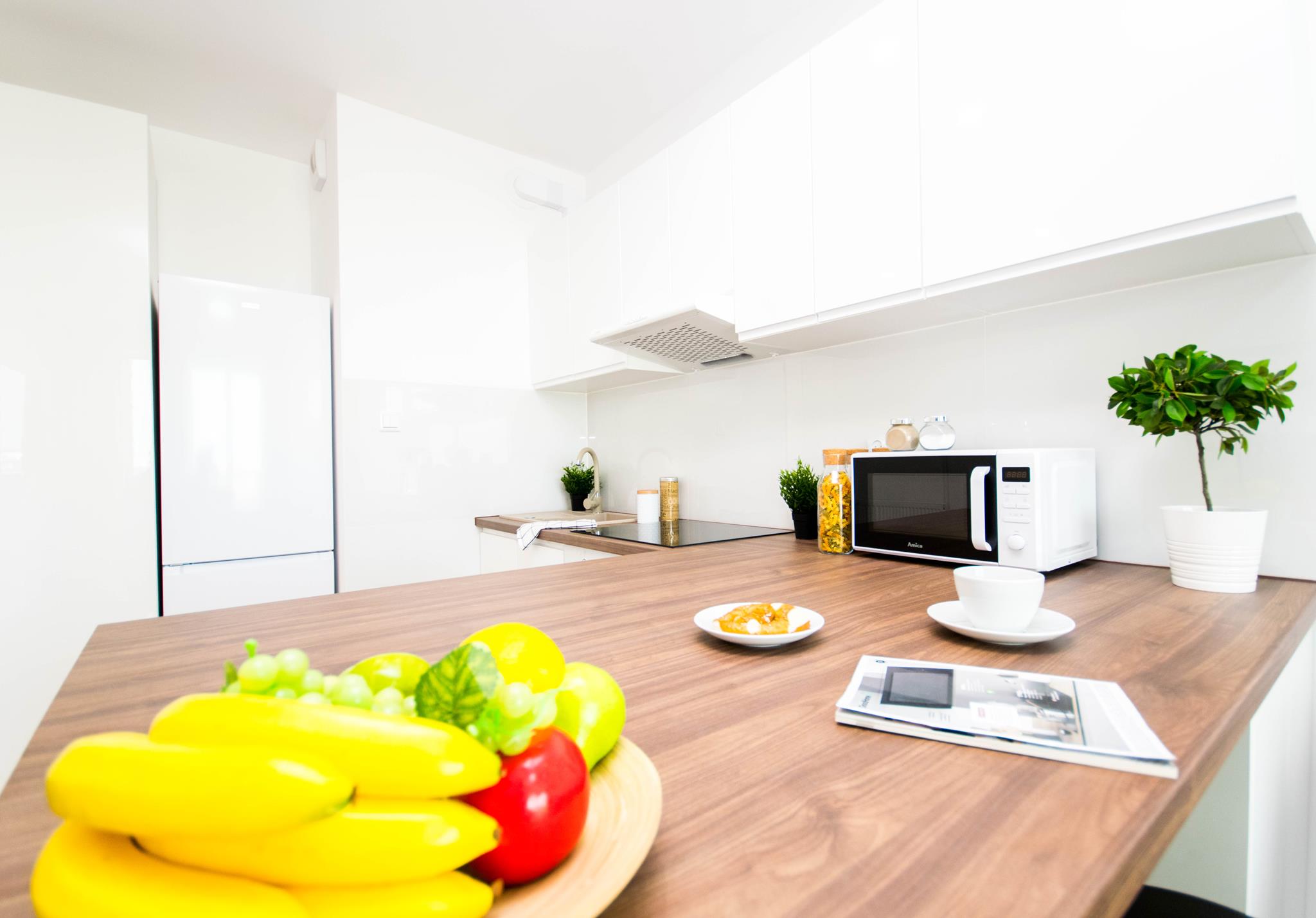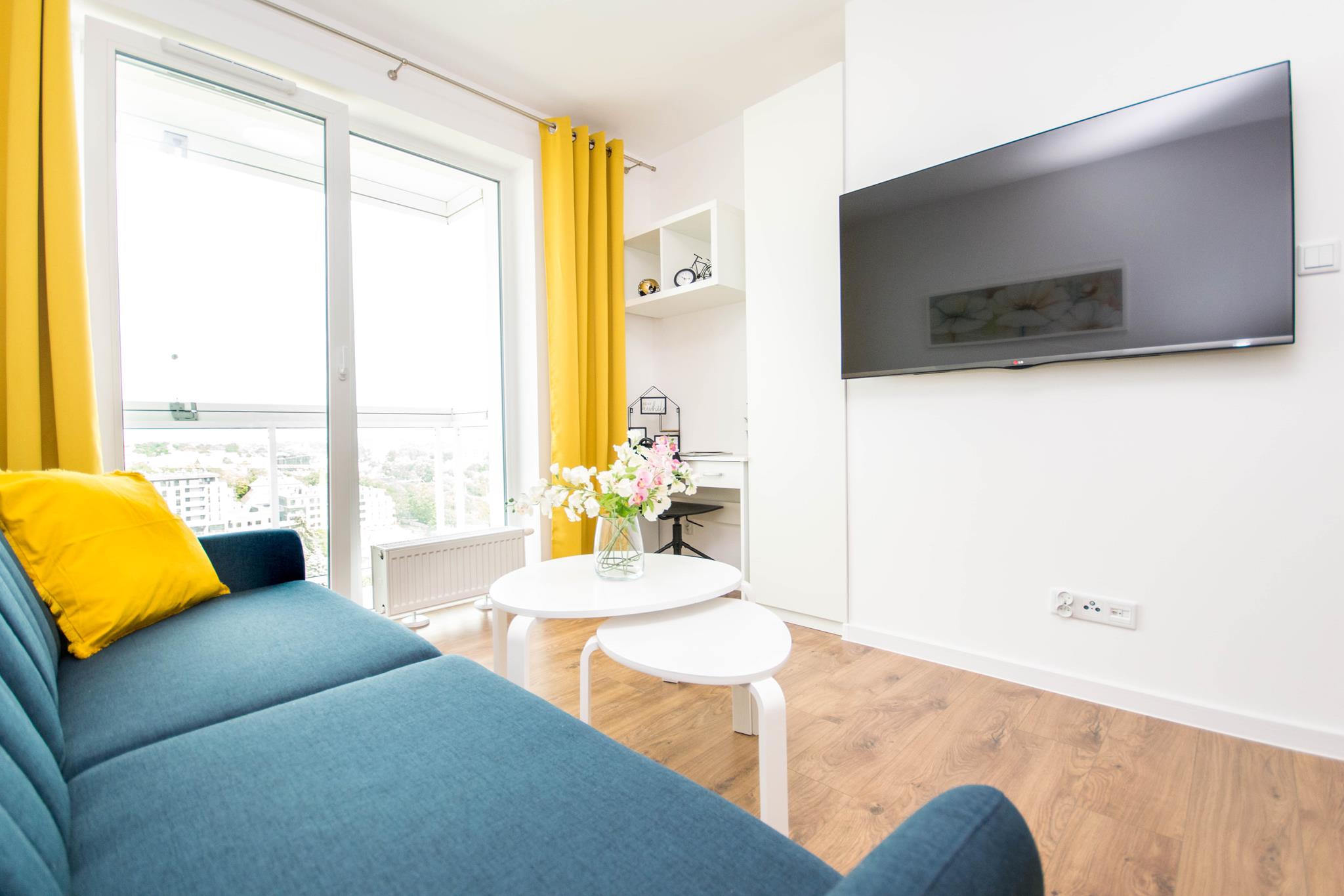 W mieszkaniu znajdziesz przedpokój z szafą i lustrem. Nowoczesny salon z częścią wypoczynkową z sofą oraz stolikiem, komodą oraz oczywiście telewizorem ze smart TV. Przestronna kuchnia, w której znajdziesz wszystkie niezbędne sprzęty AGD, takie jak: