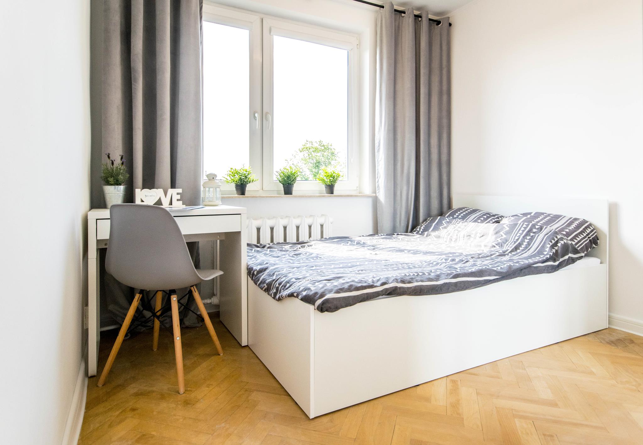 Nowoczesny pokój w mieszkaniu po remoncie o powierzchni 55 m2, składającego się z: