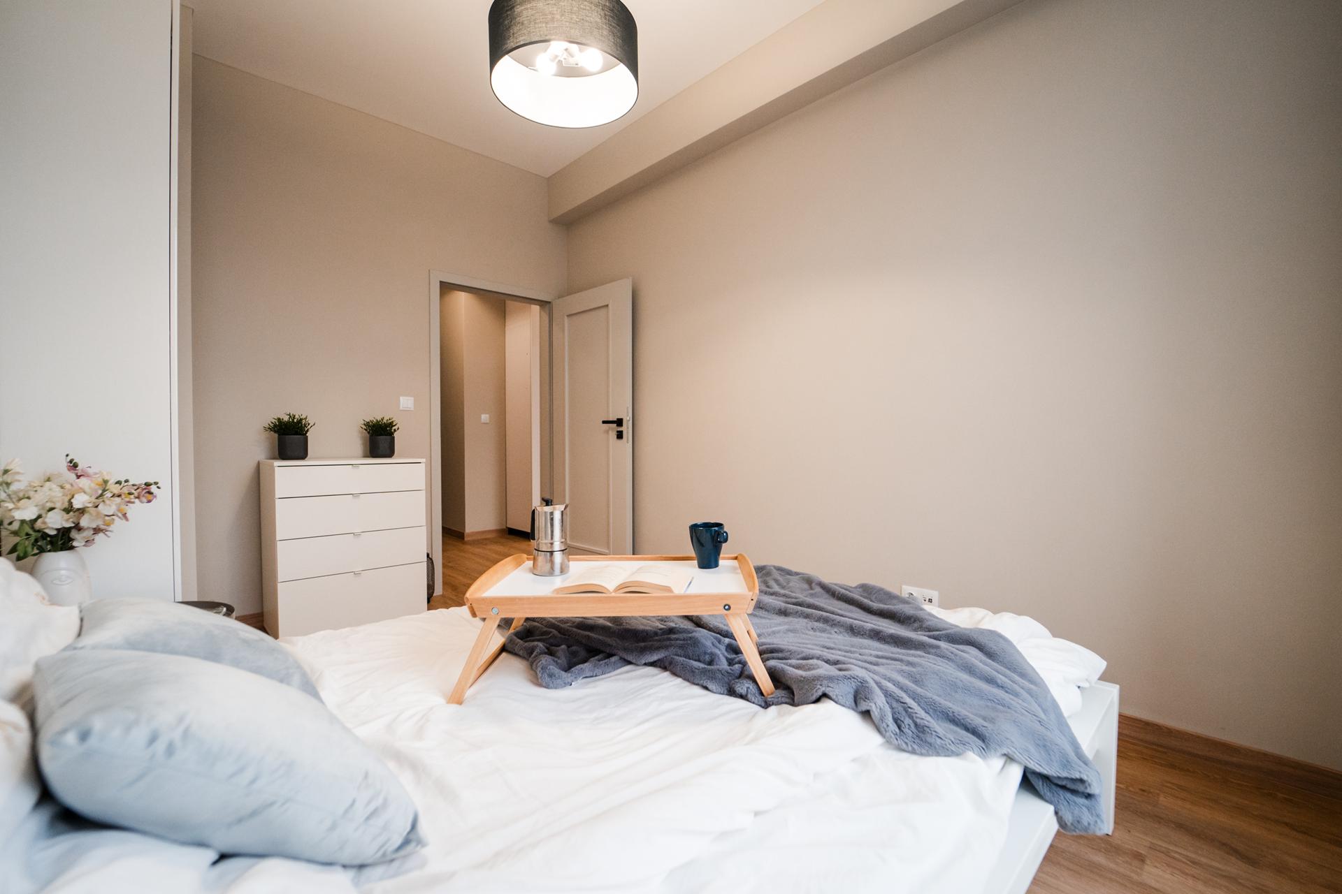 W mieszkaniu znajdziesz dwa niezależne pokoje z rozkładaną sofą lub łóżkiem z materacem, pojemną szafą oraz komodą i biurkiem do pracy czy nauki. Duży salon wraz z klimatyzacją oraz TV a także wyjściem na balkon, miejscem do spędzania czasu wolnego na powietrzu. Kuchnie z miejscem do jedzenia posiłków, wraz z pełnym wyposażeniem takim jak: