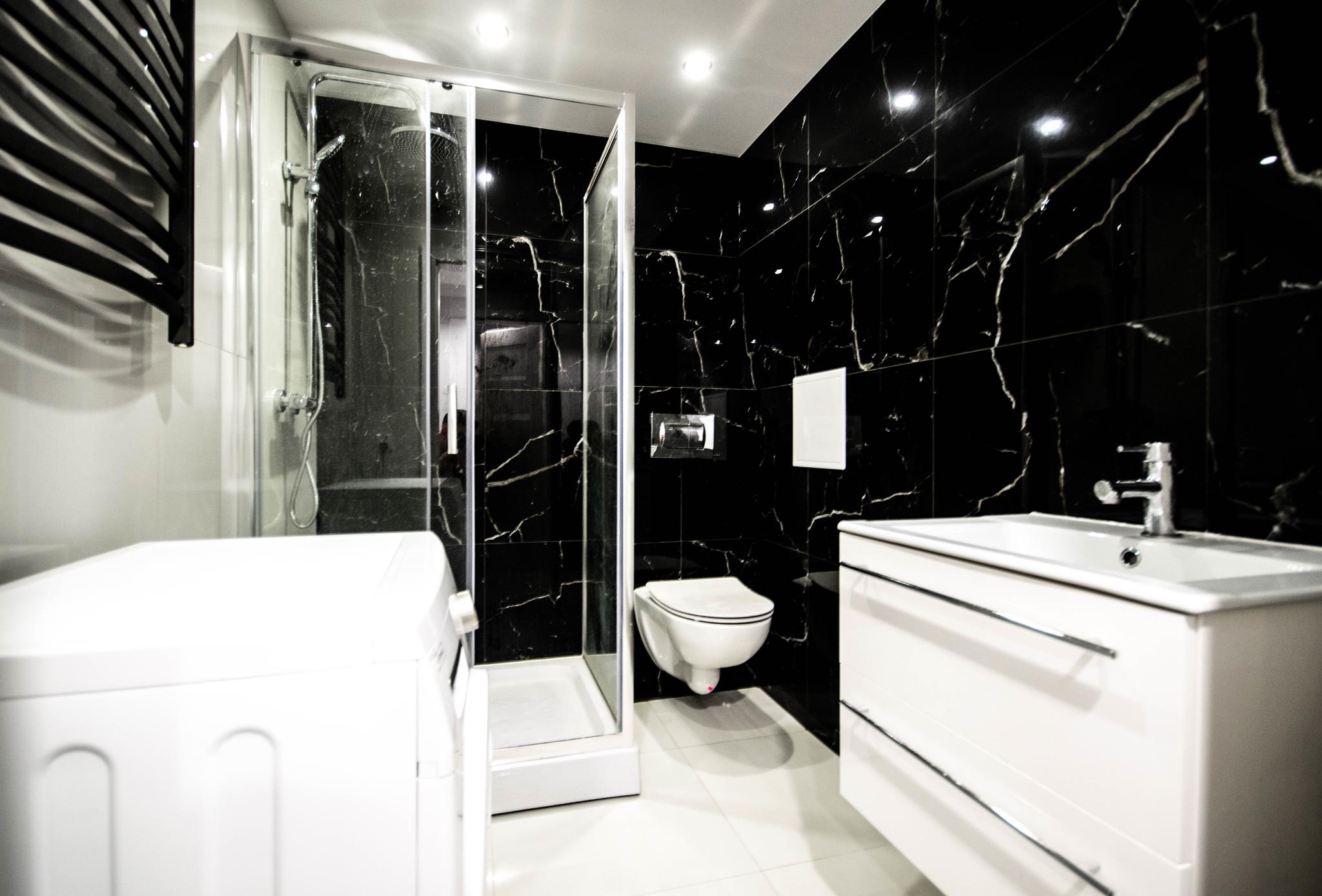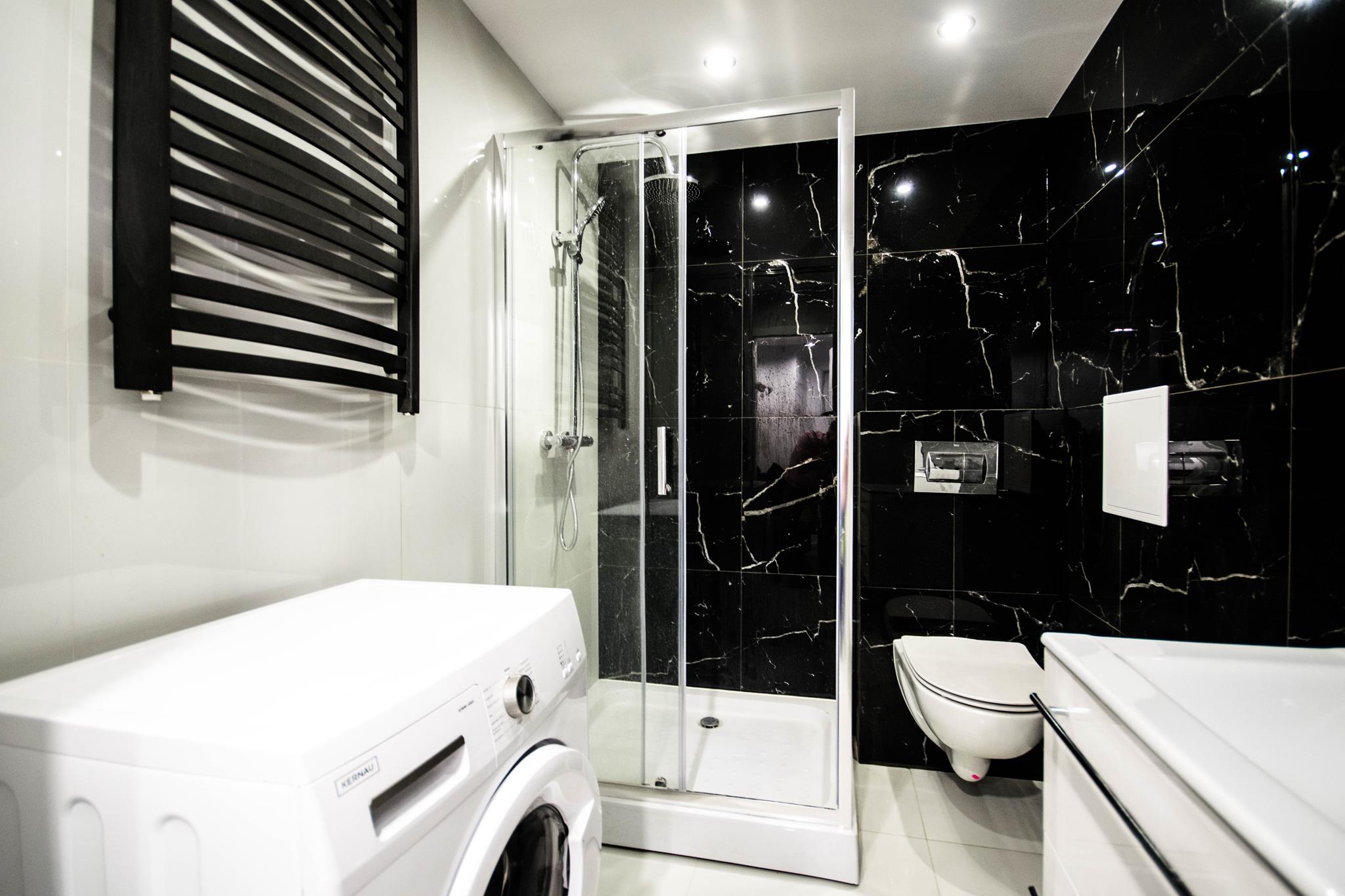 Do dyspozycji dwie łazienki – jedna z nich z dużym prysznicem, druga łazienka z prysznicem, pralką oraz WC. .
