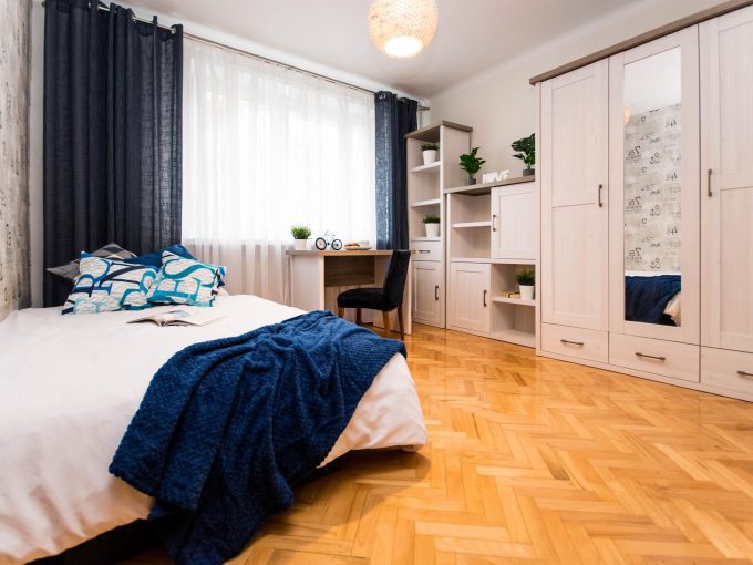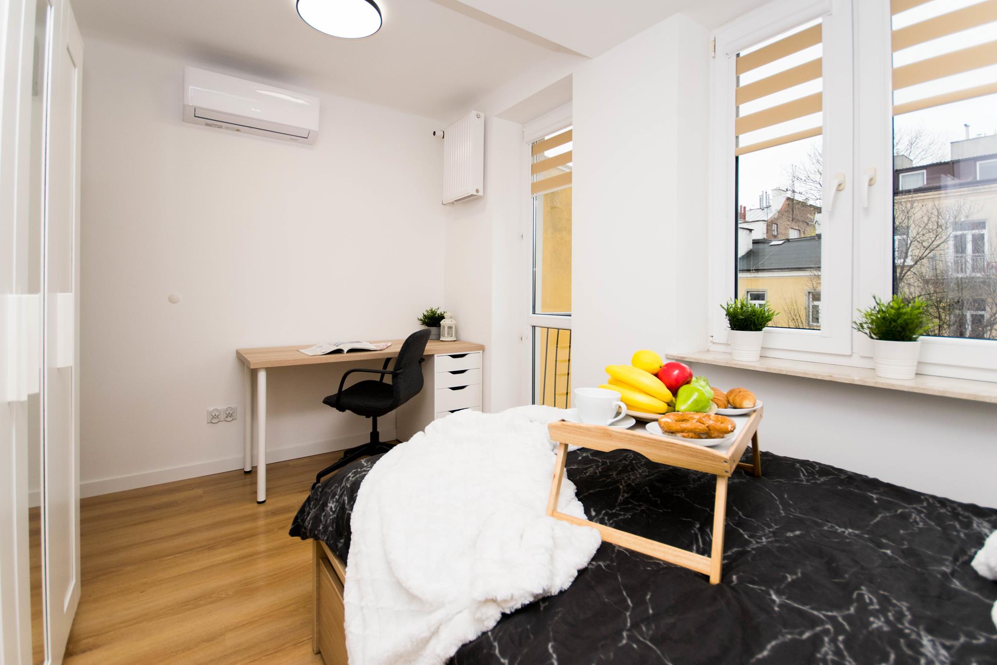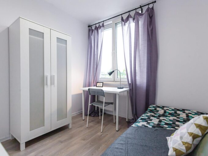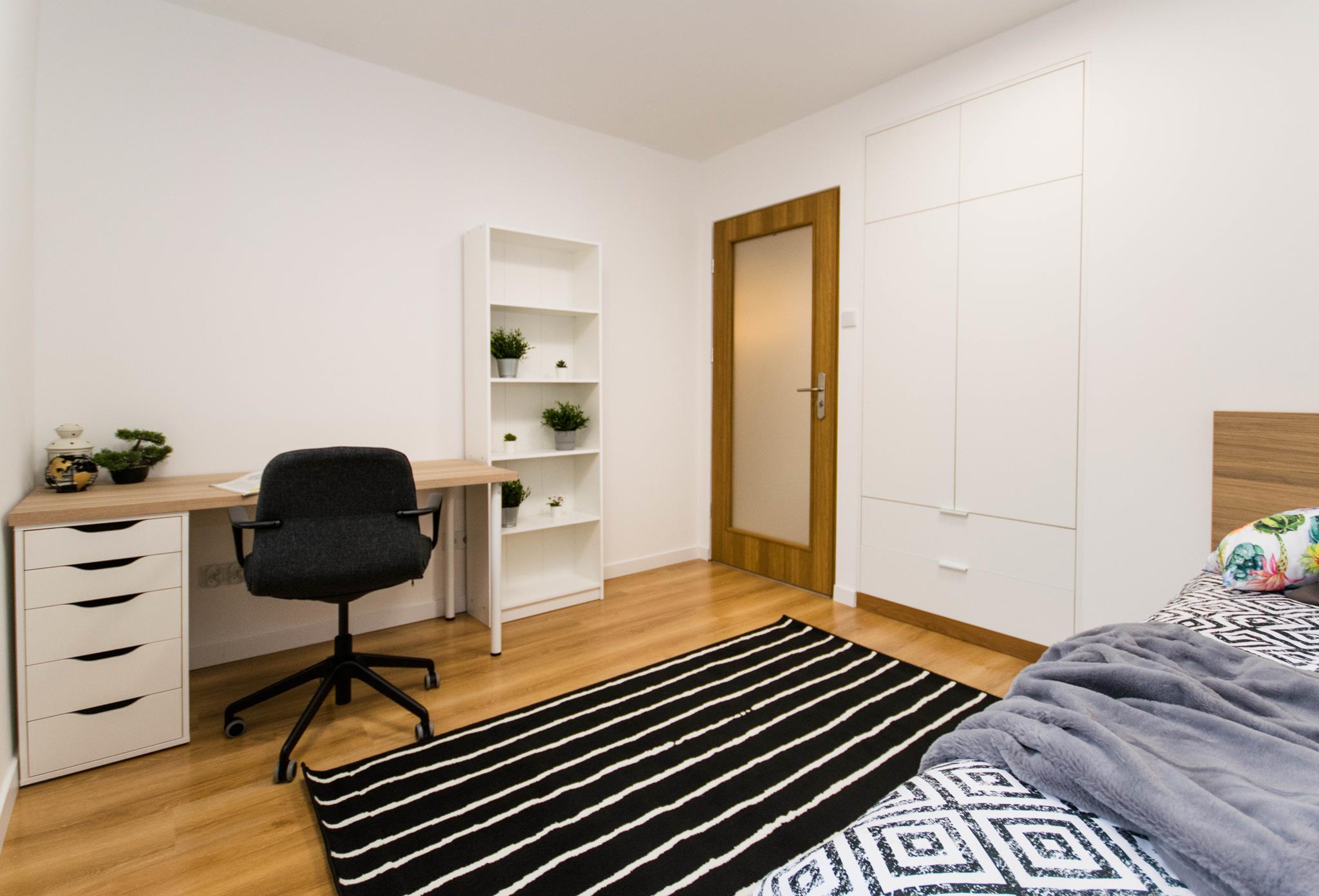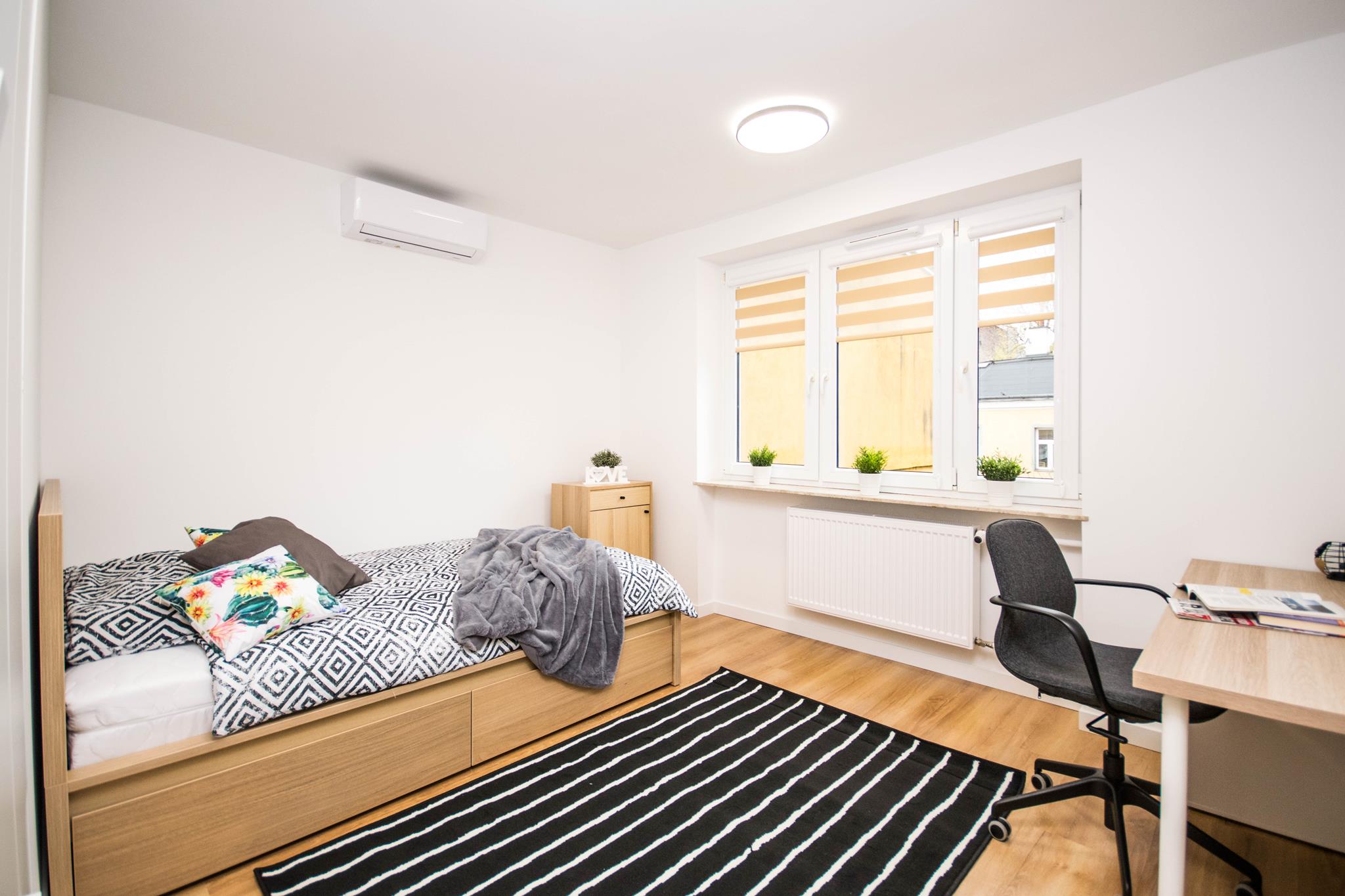 Nowoczesny pokój z klimatyzacją w mieszkaniu blisko centrum, składającego się z: