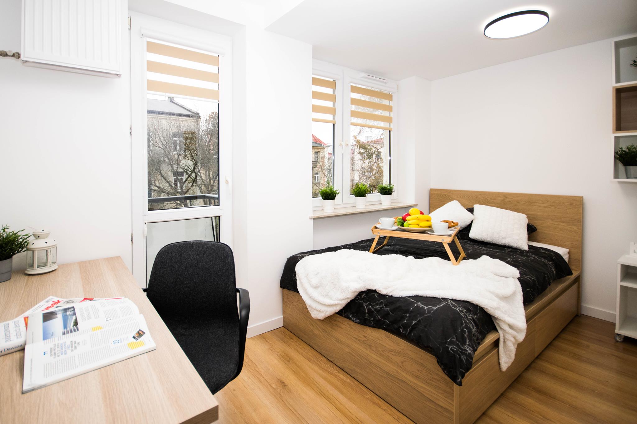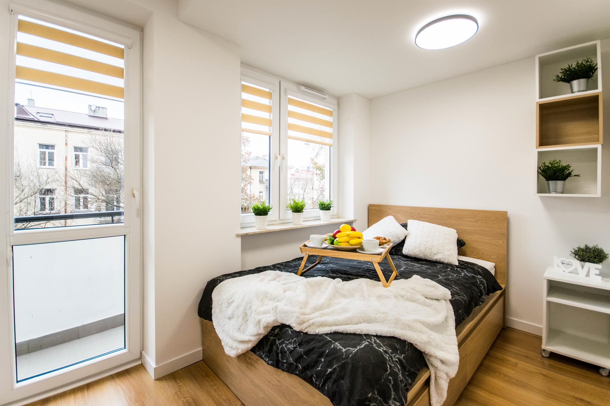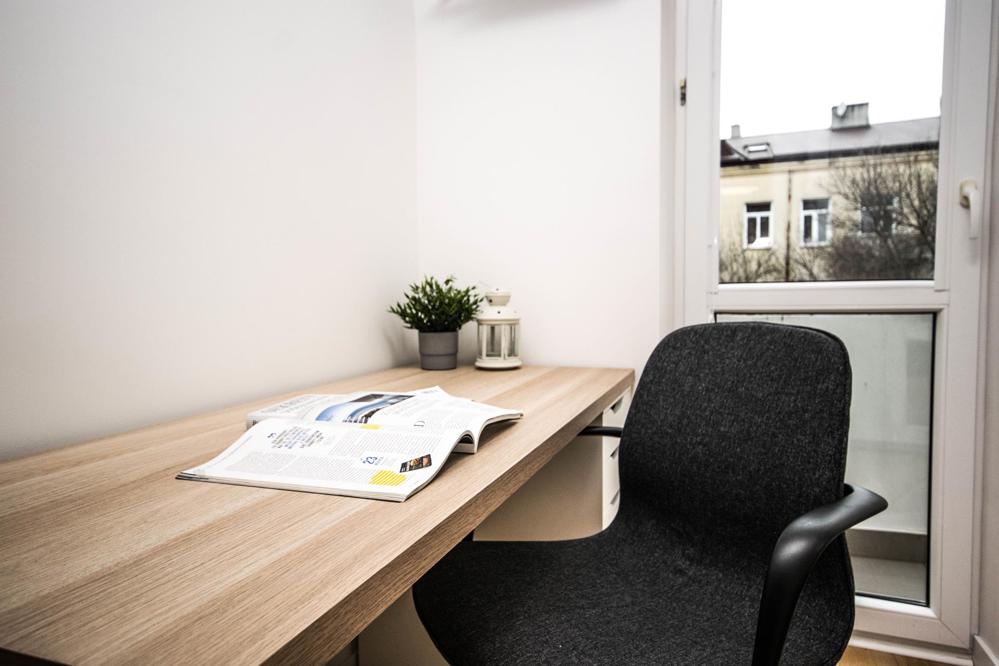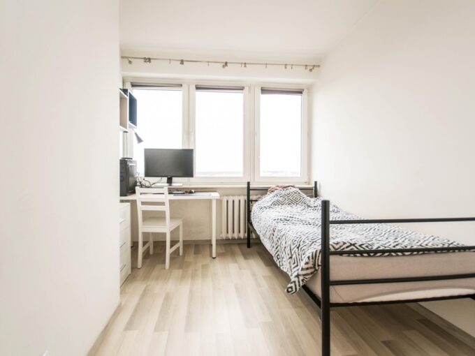 Nowoczesny pokój z klimatyzacją w mieszkaniu blisko centrum, składającego się z: