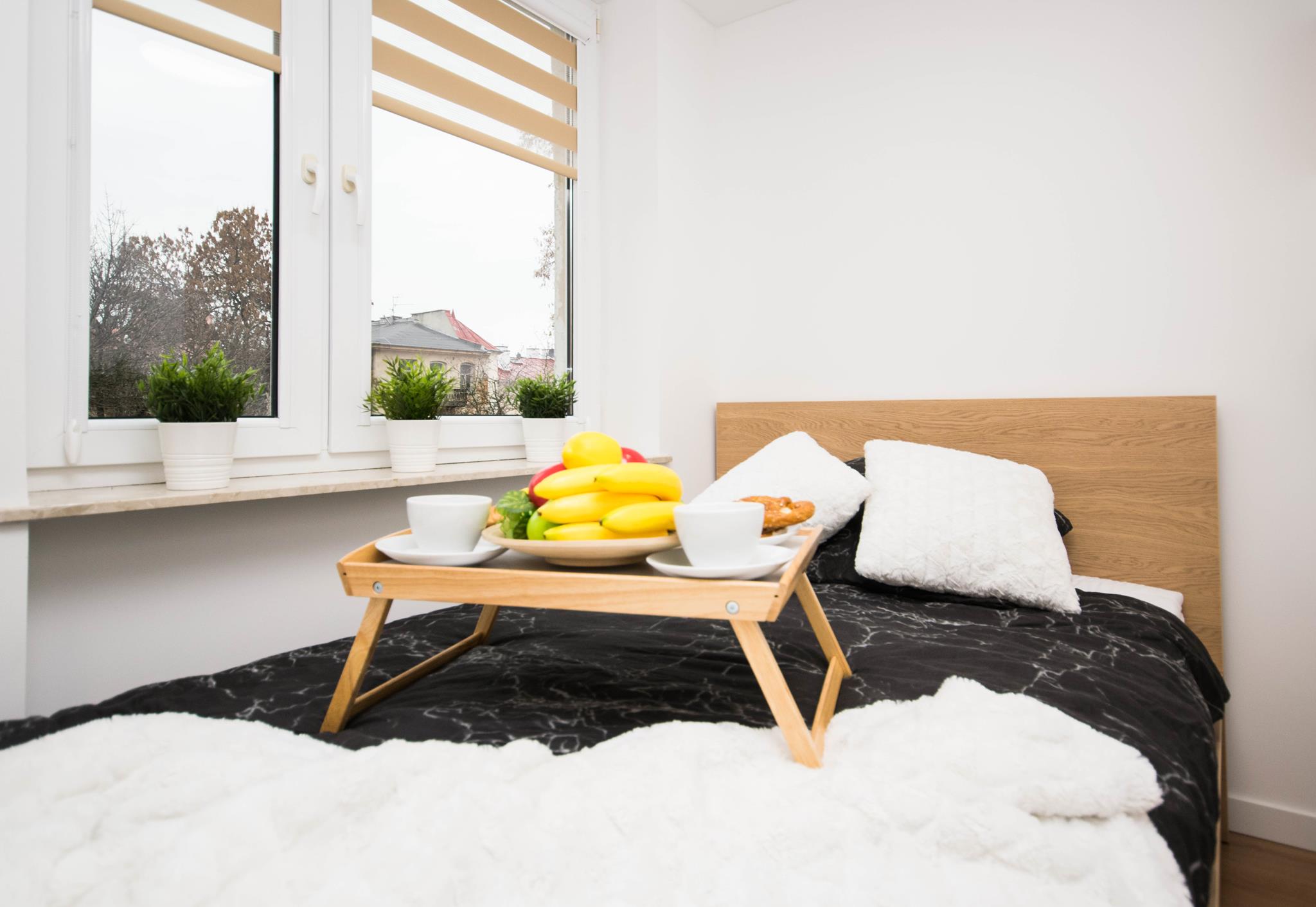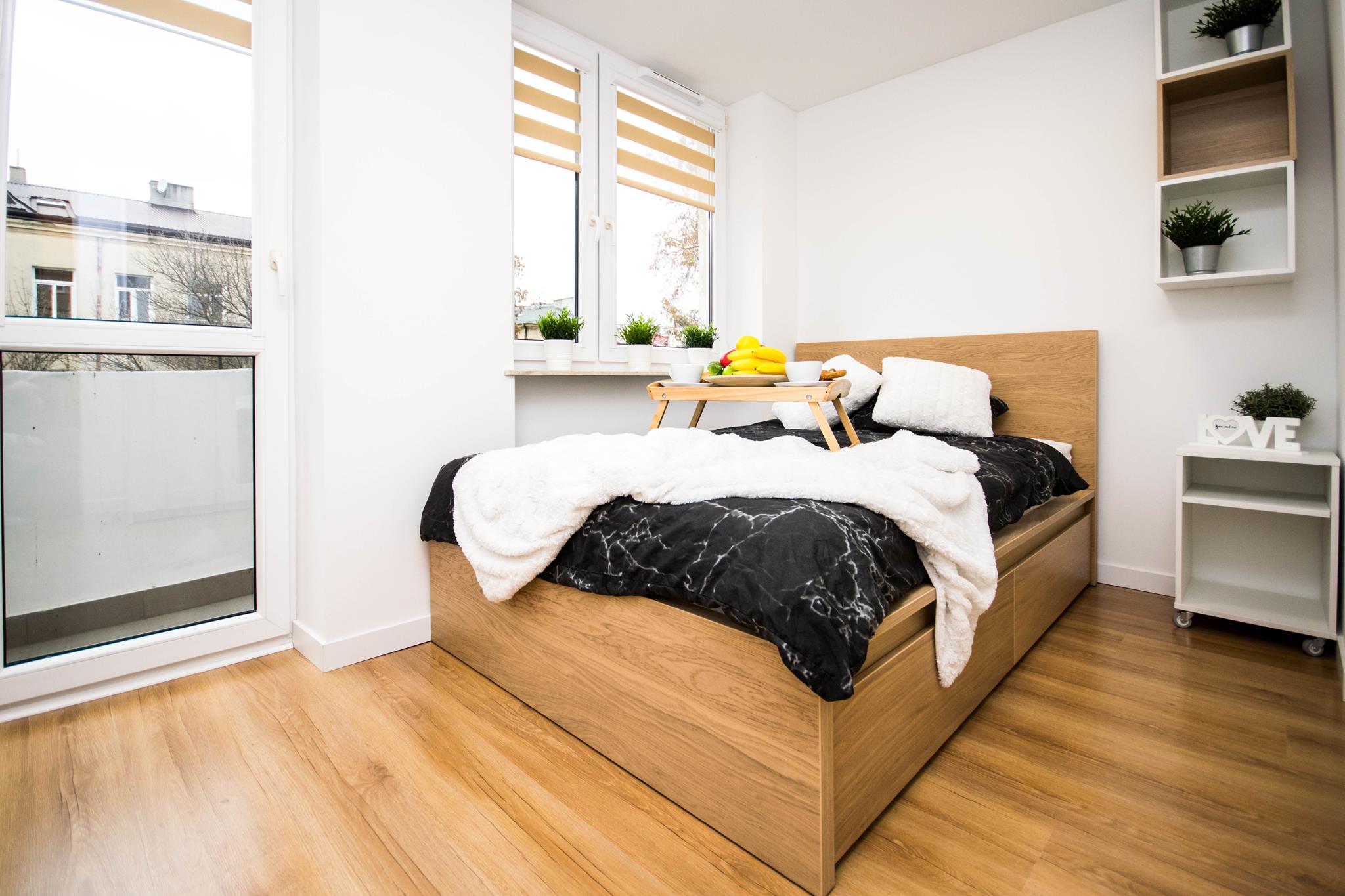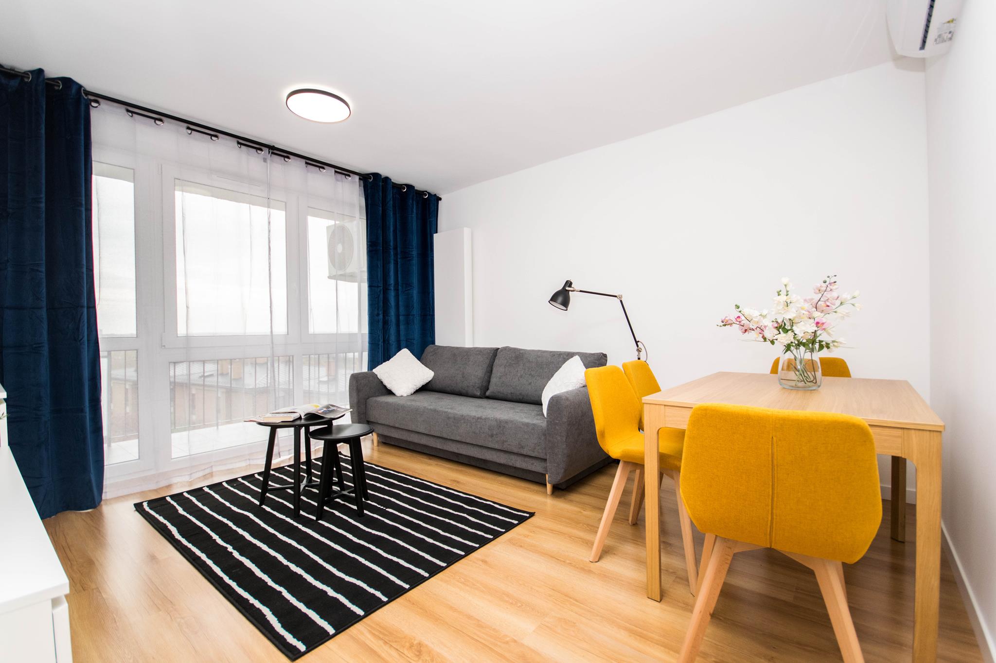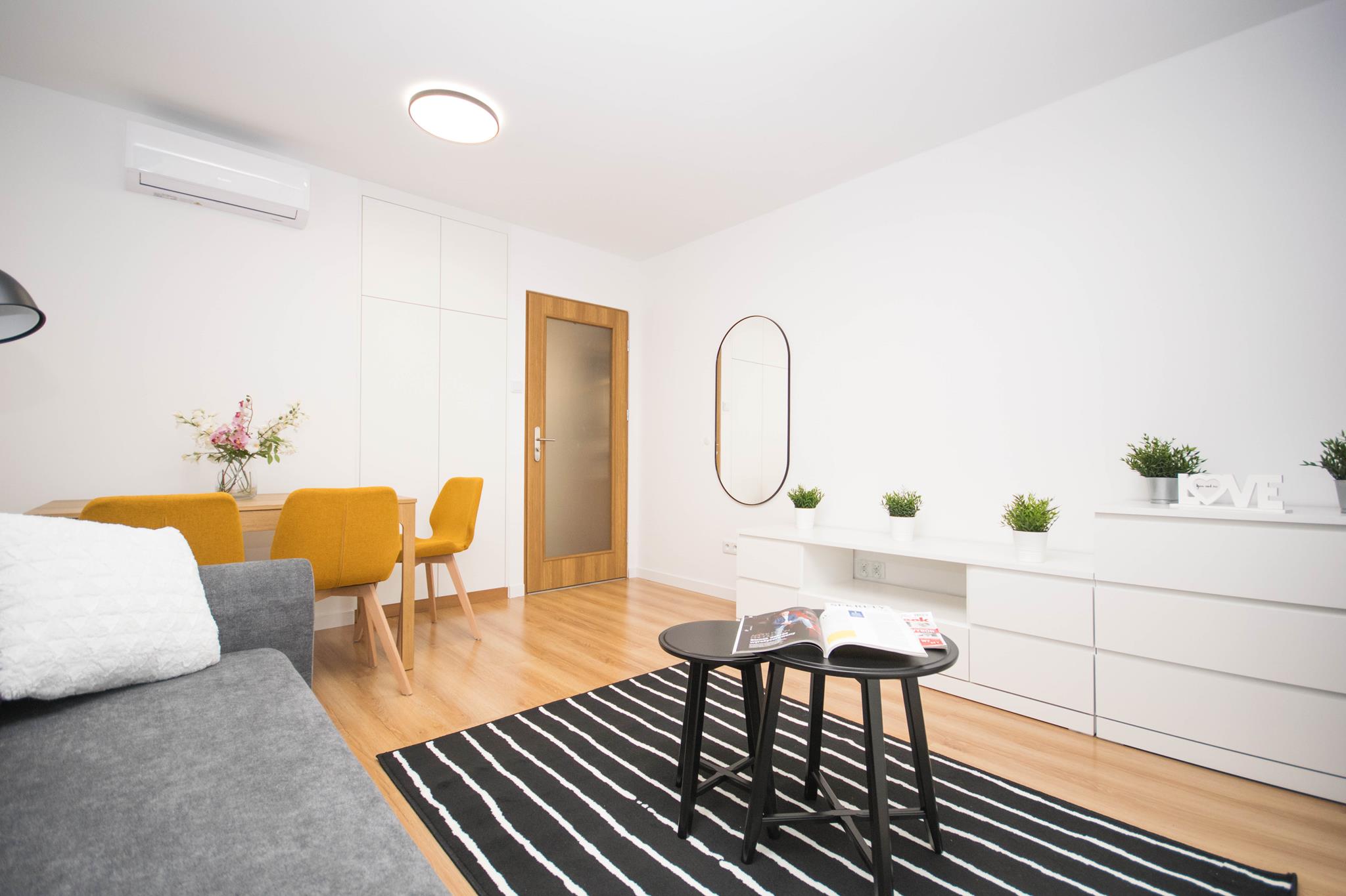 Nowoczesny pokój z klimatyzacją w mieszkaniu blisko centrum, składającego się z: