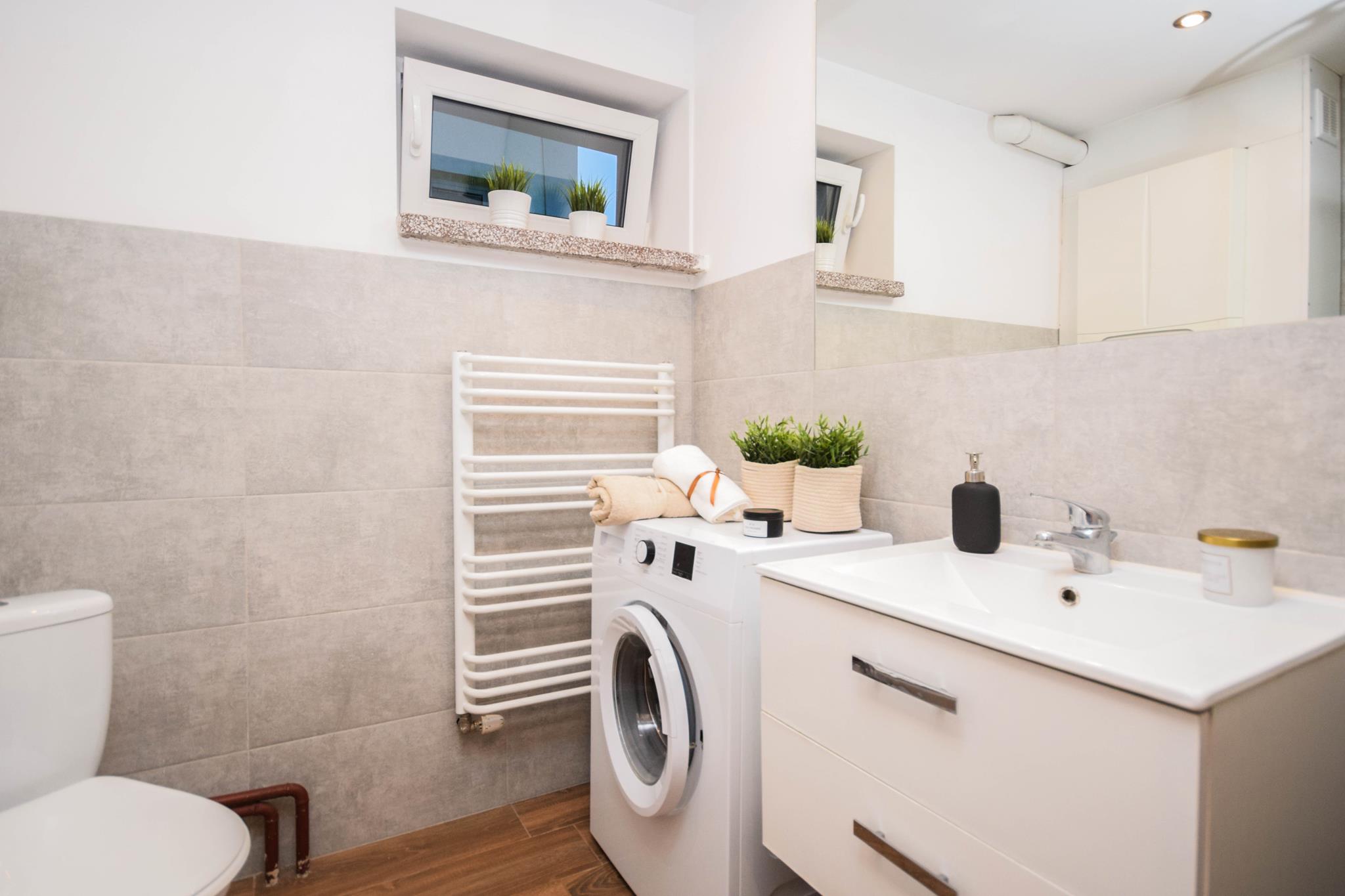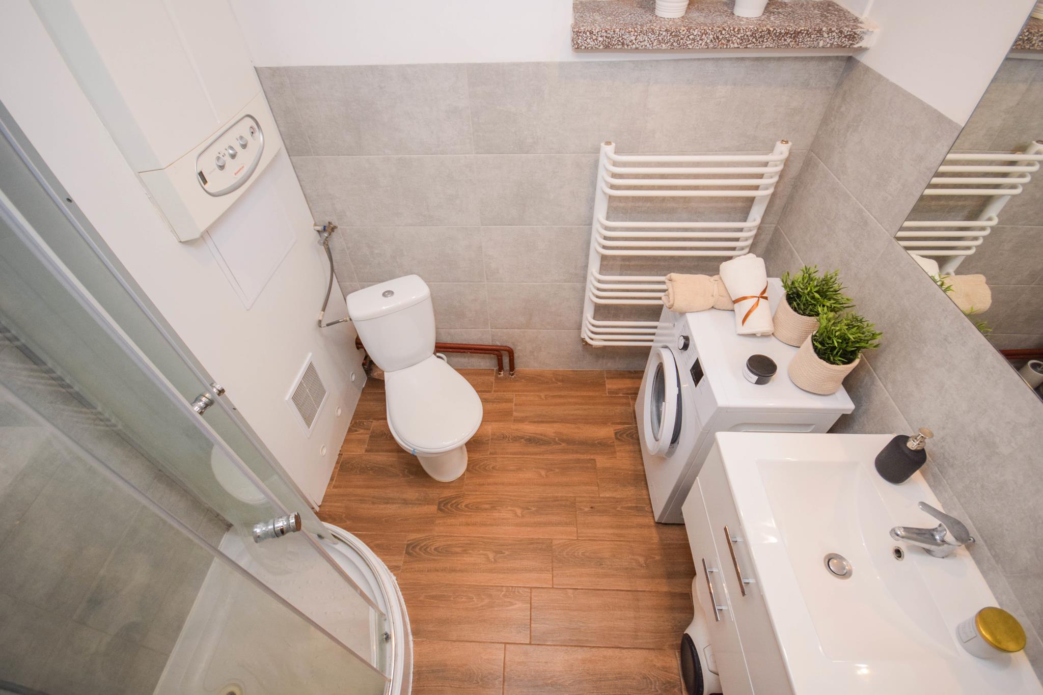 🛁 Łazienka z prysznicem, umywalką oraz WC