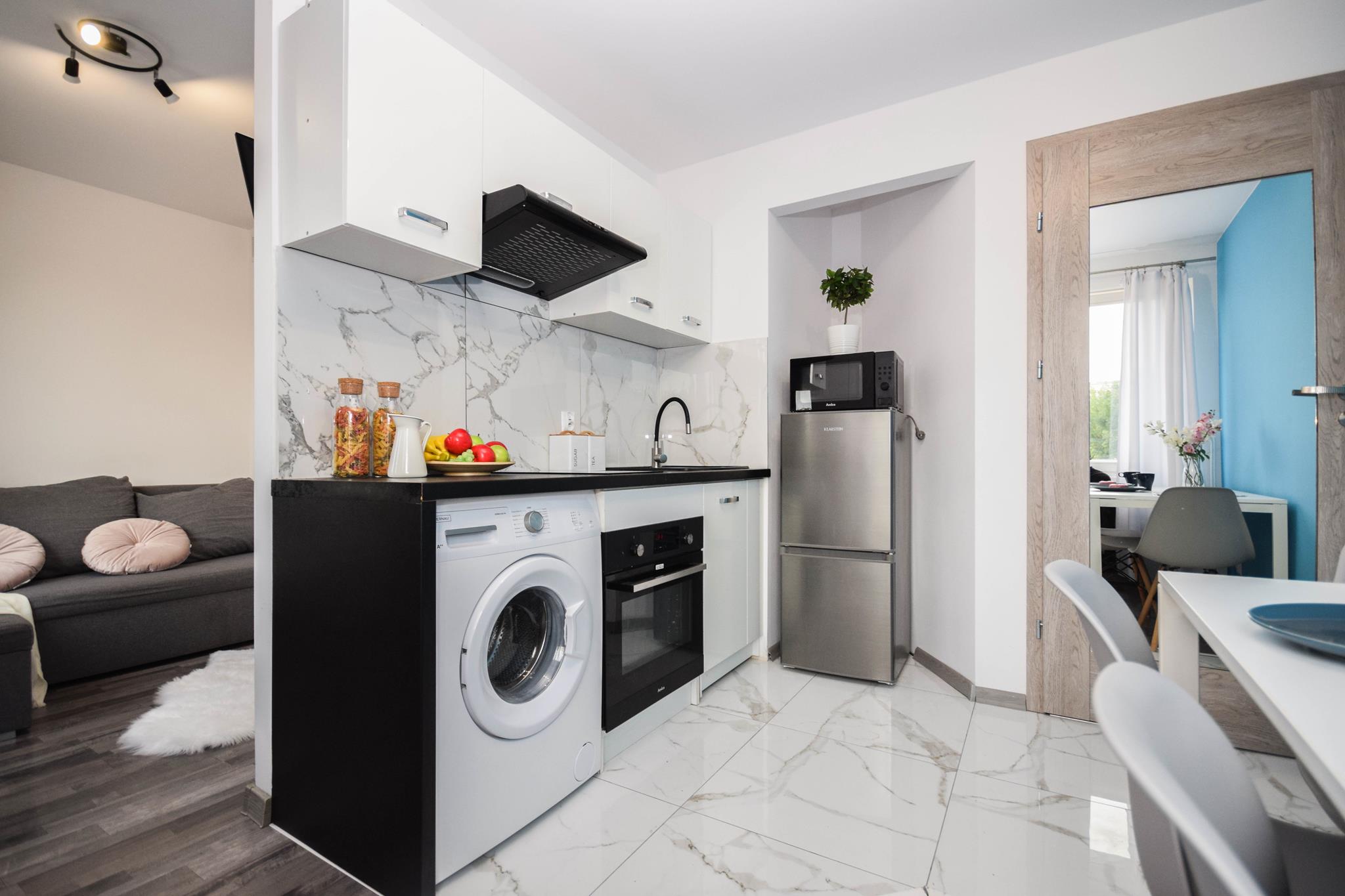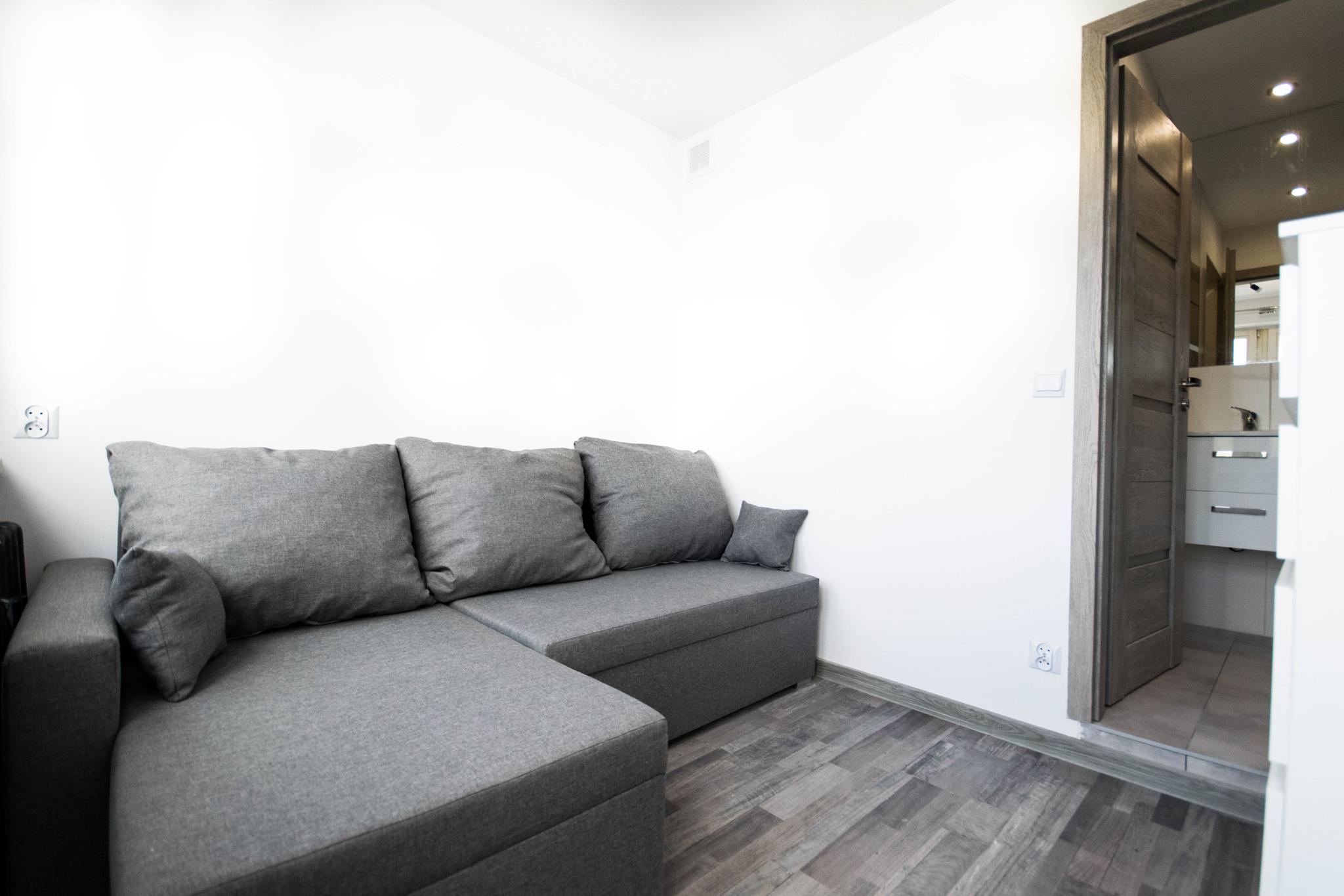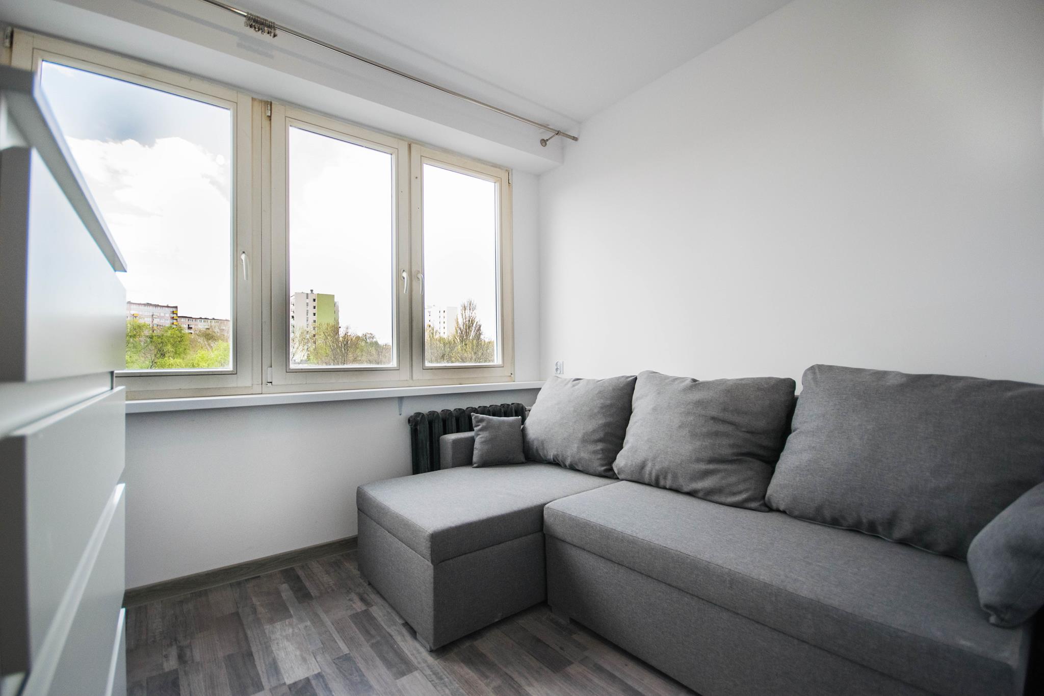 ☀️ Jasne mieszkanie z wygodną, rozkładaną sofą, pojemną szafą oraz komodą do przechowywania