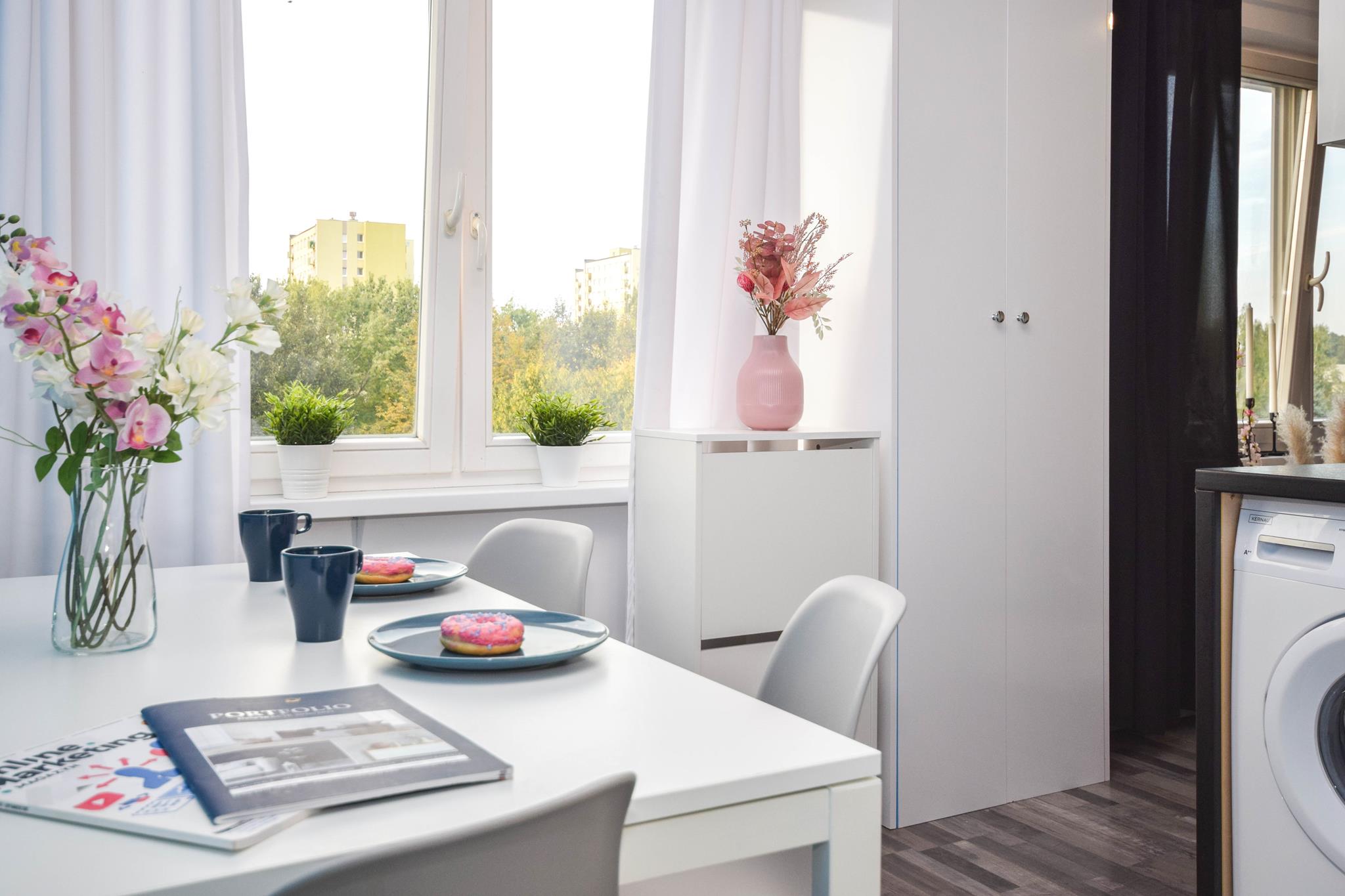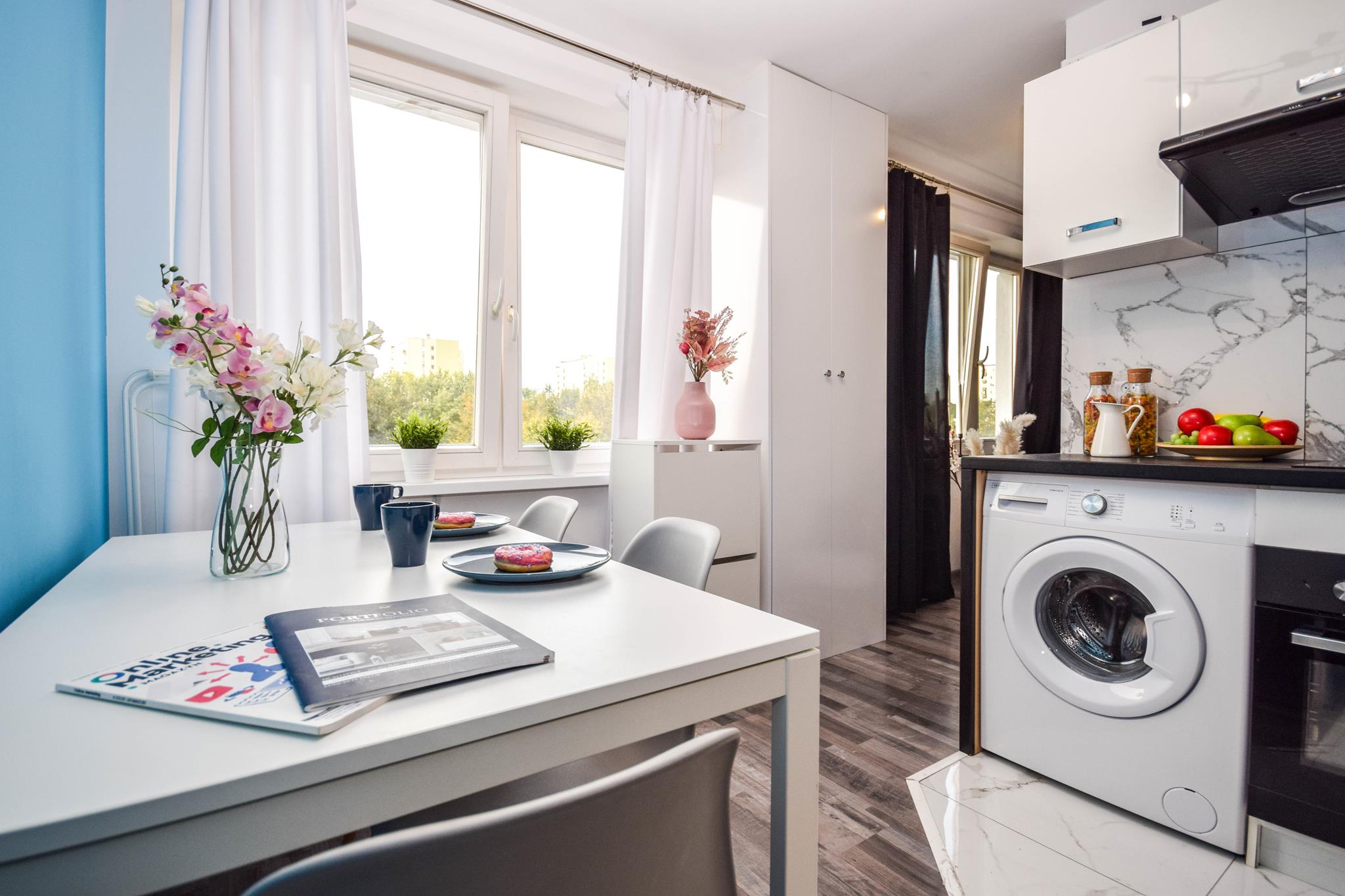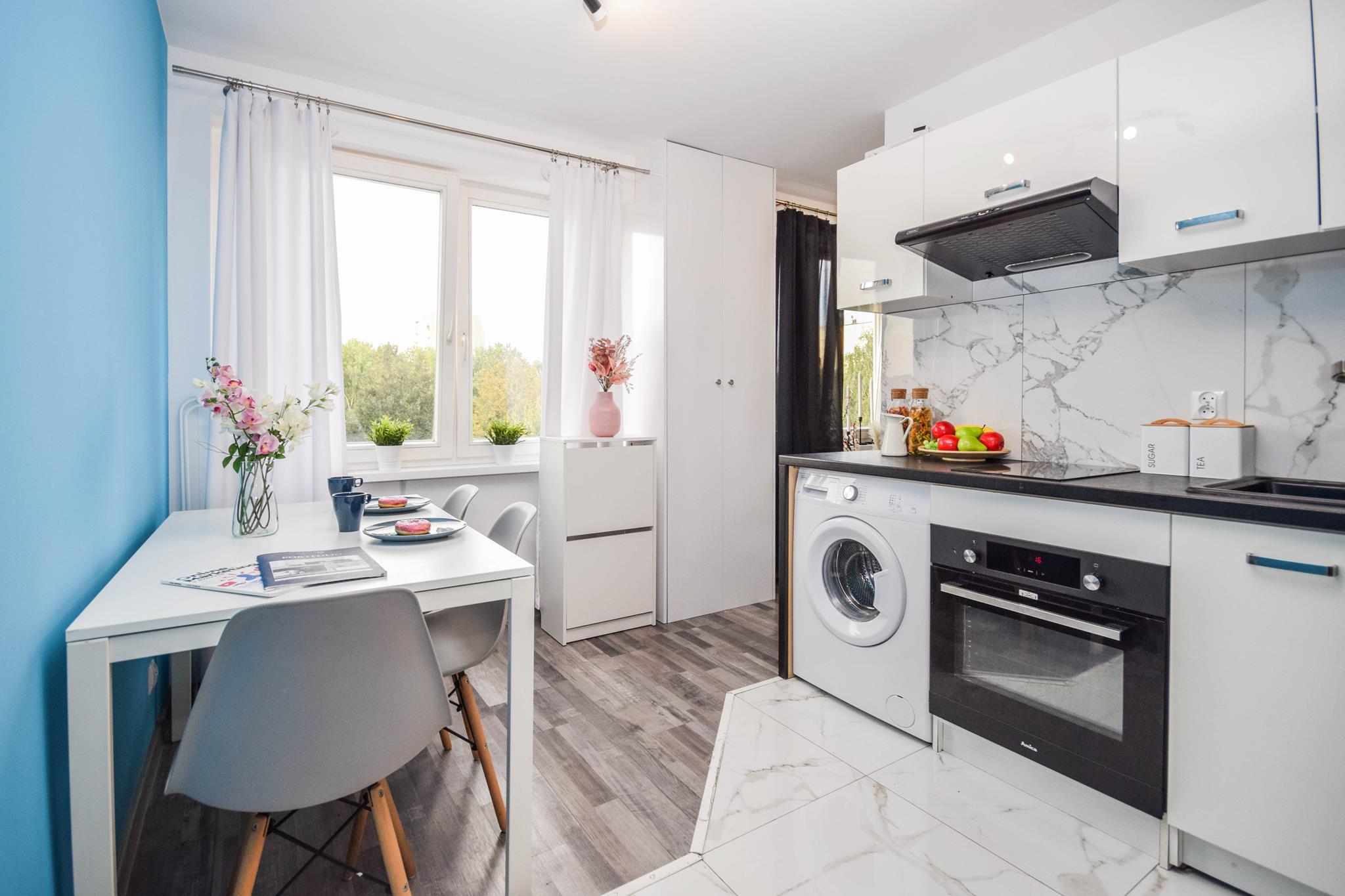 ☀️ Jasne mieszkanie z wygodną, rozkładaną sofą, pojemną szafą oraz komodą do przechowywania