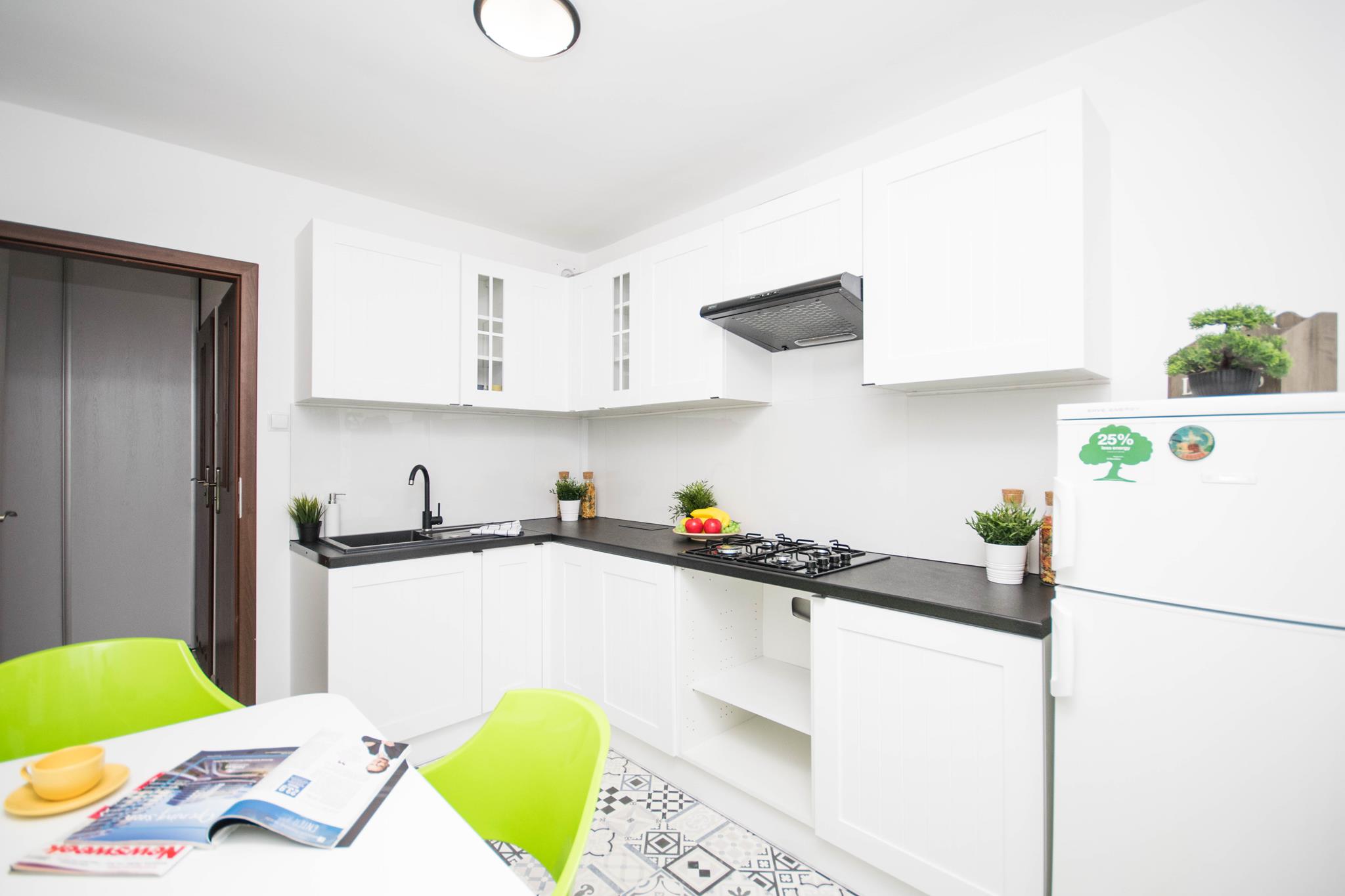 Oddzielna kuchnia wyposażona we wszystkie niezbędne sprzęty AGD, tj.