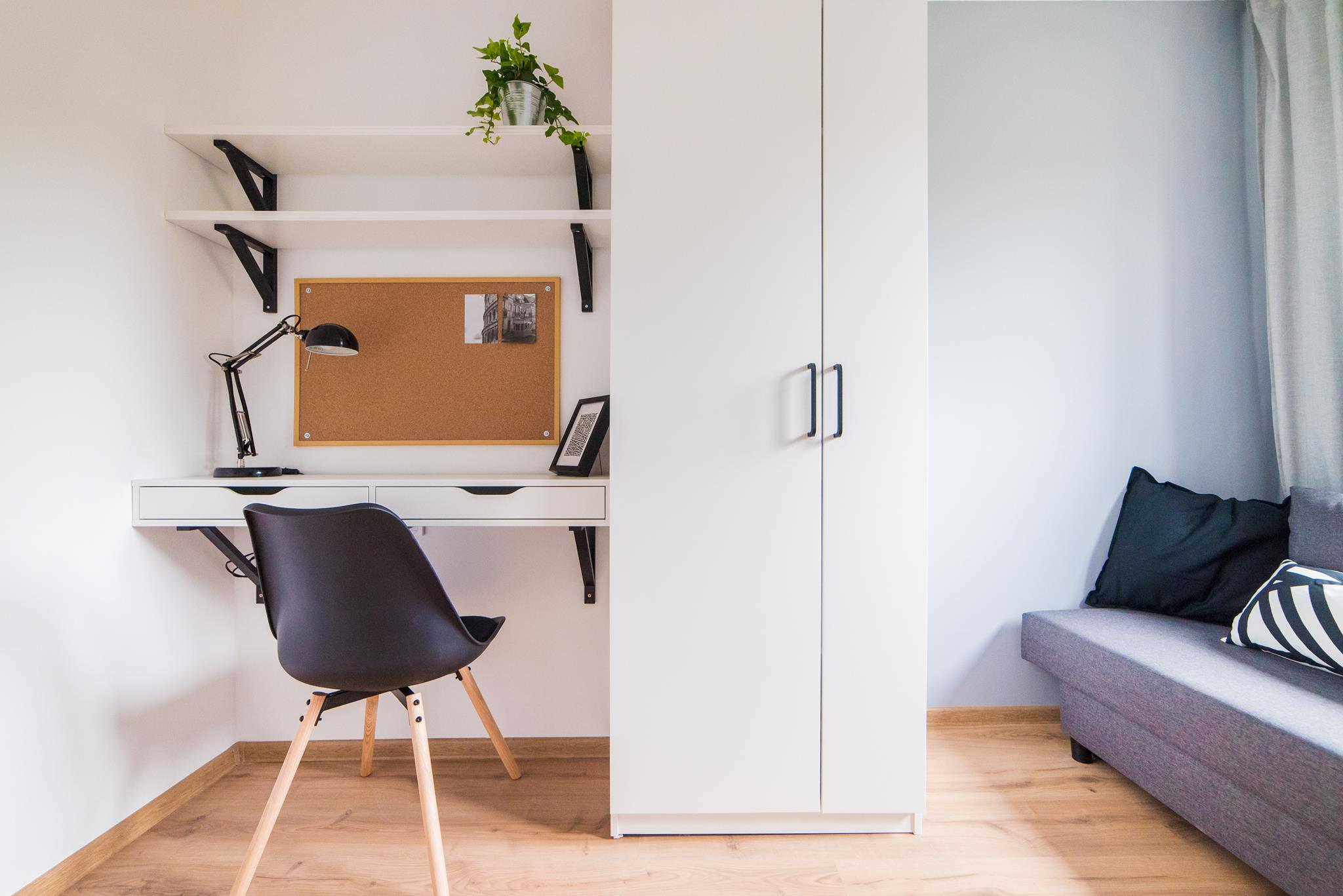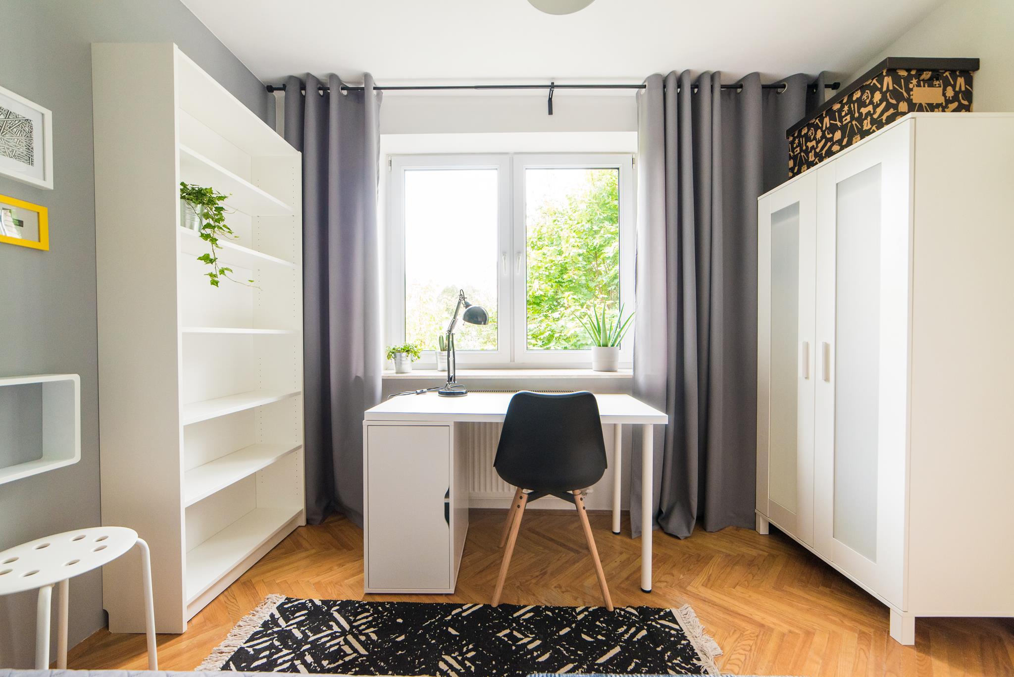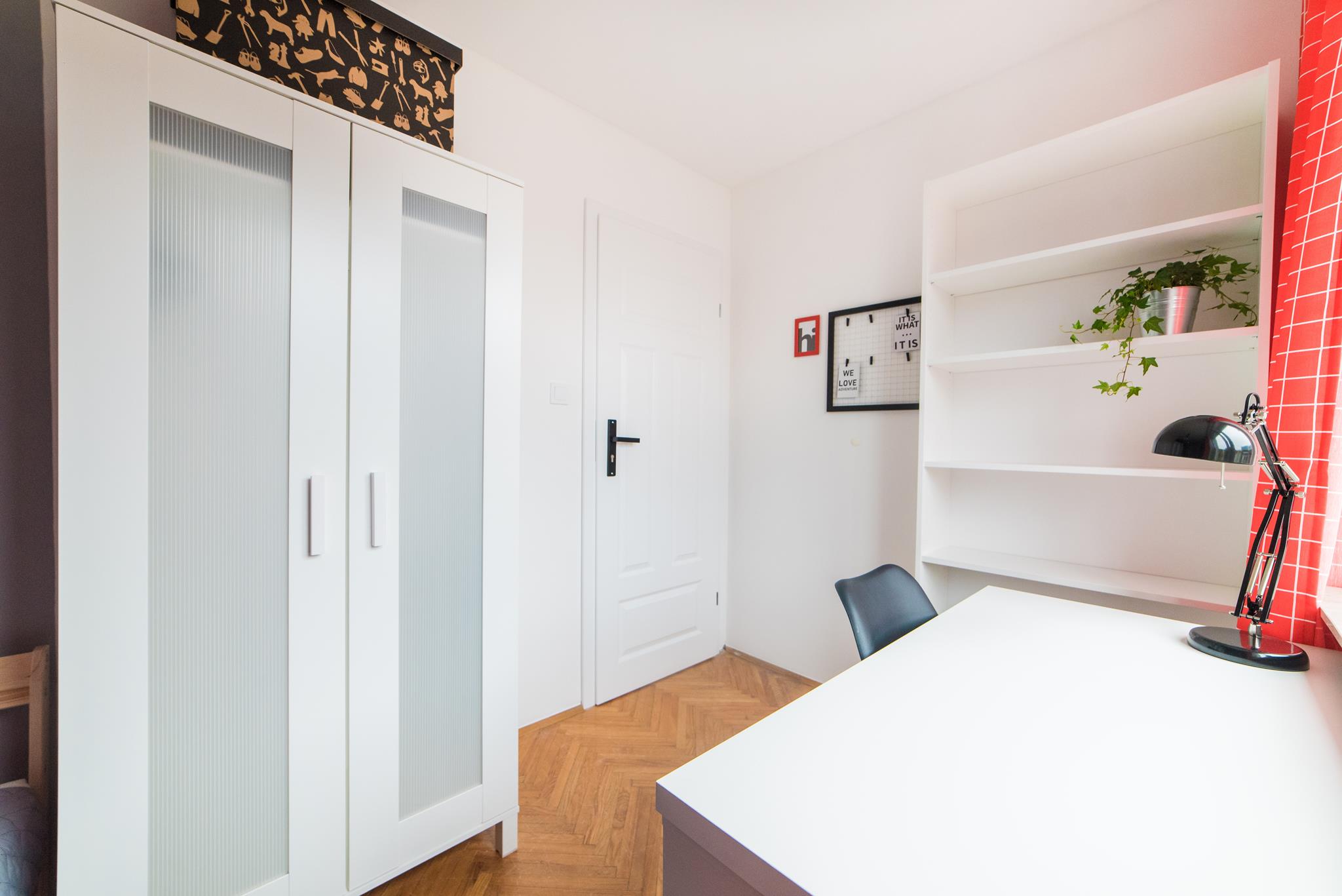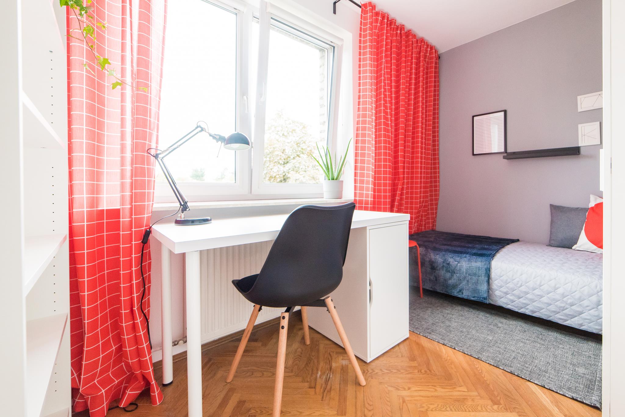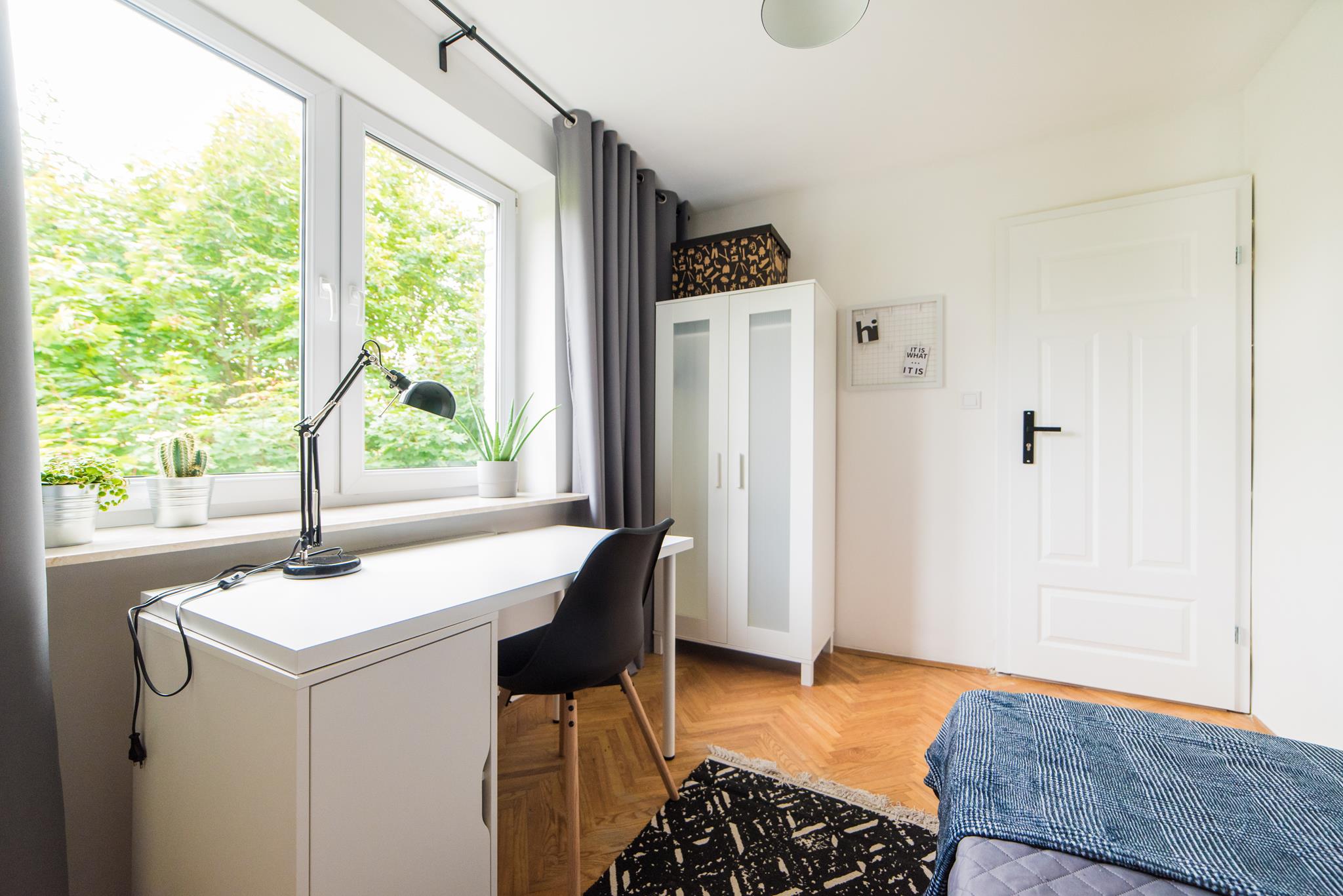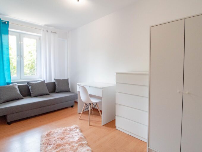 Do dyspozycji mamy 4 niezależne pokoje, w każdym z nich znajduje duża, pojemna szafa, w której można spokojnie zmieścić wszystkie swoje rzeczy, łóżko z materacem/wygodna kanapa oraz biurko z krzesłem idealnym do pracy czy nauki.