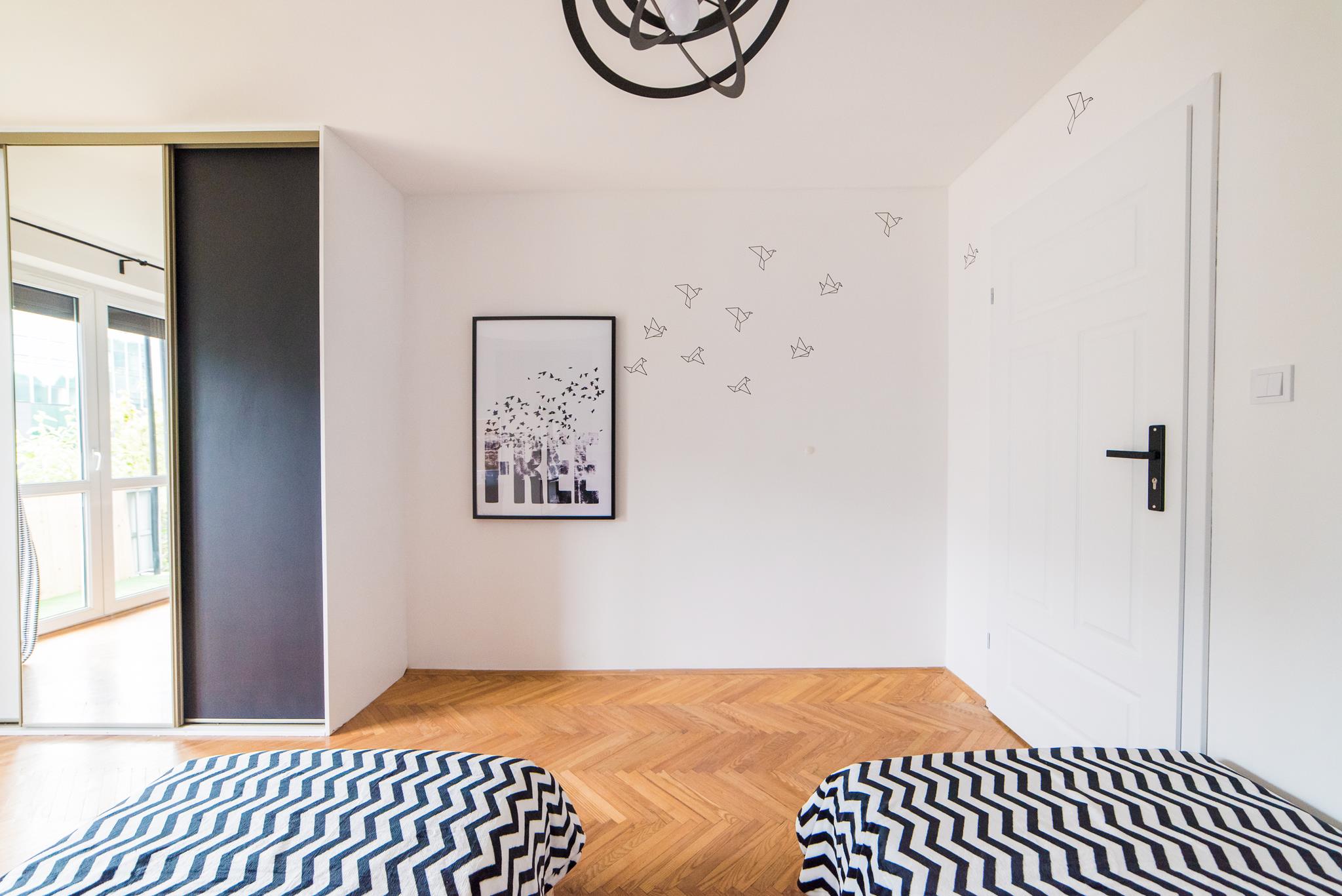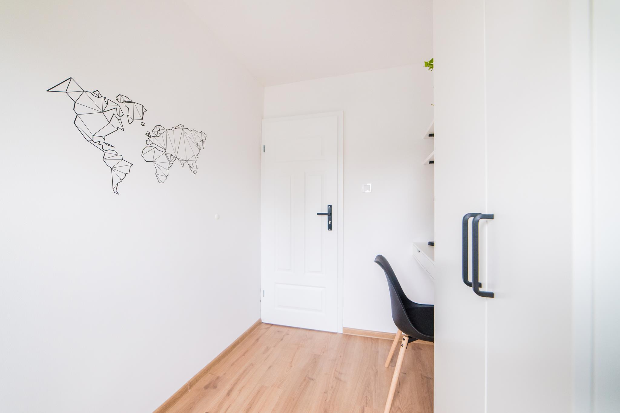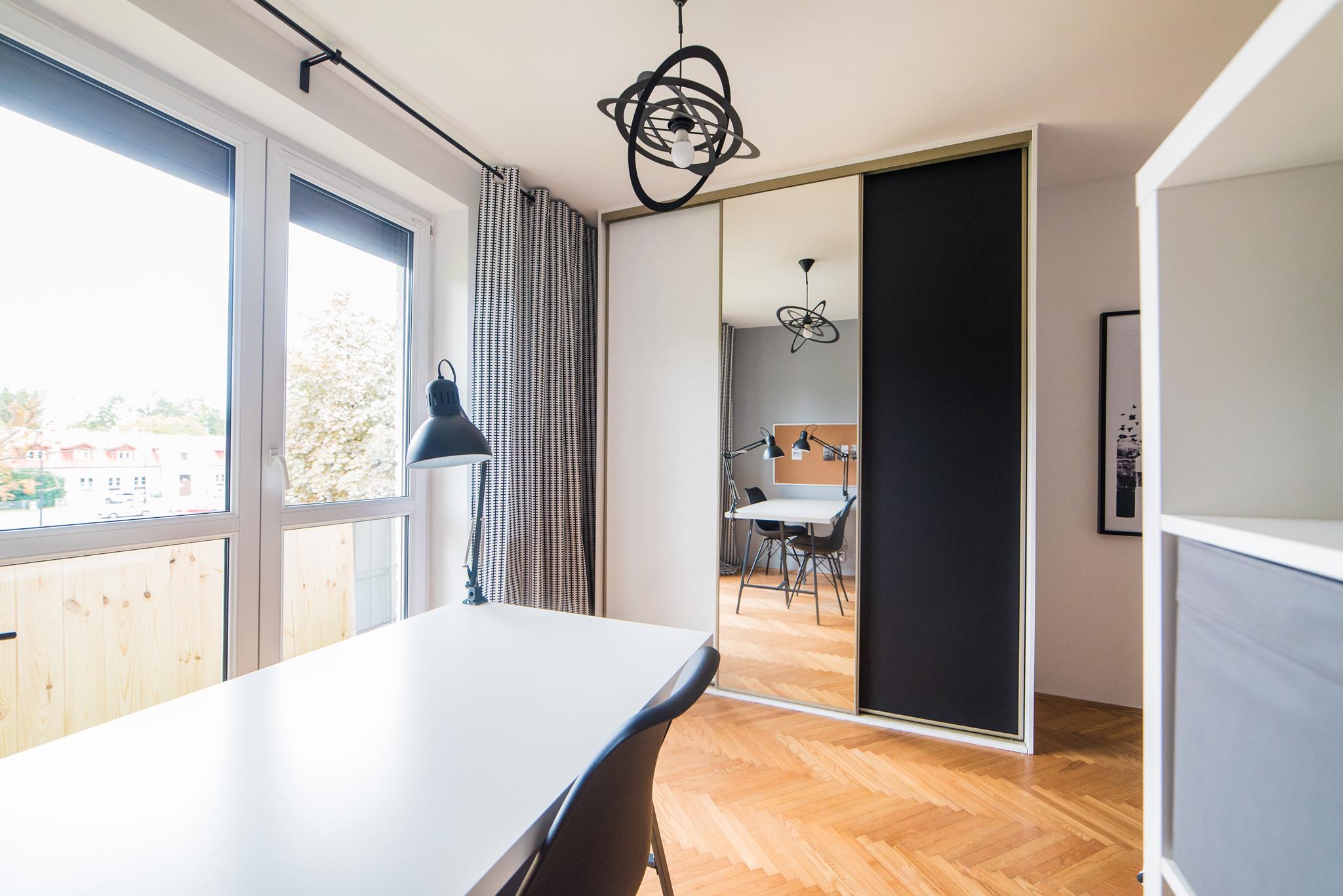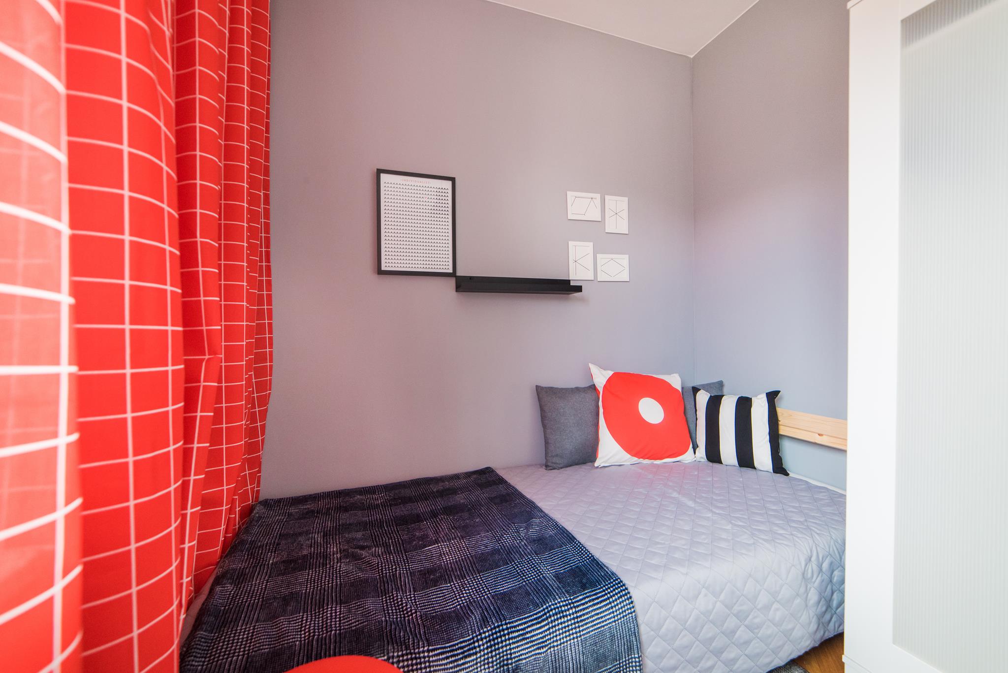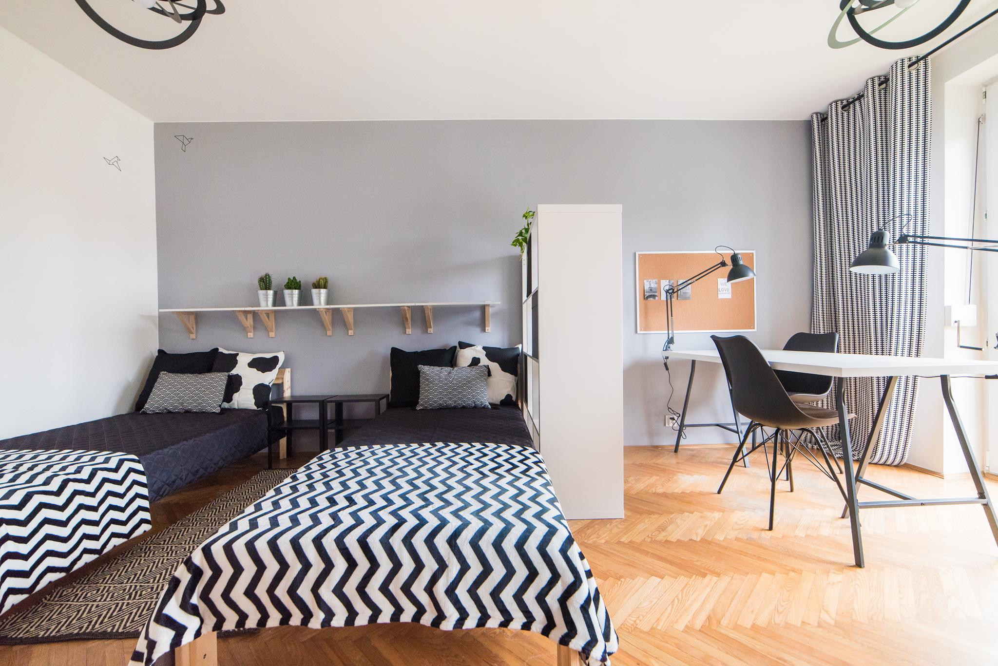 Do dyspozycji mamy 4 niezależne pokoje, w każdym z nich znajduje duża, pojemna szafa, w której można spokojnie zmieścić wszystkie swoje rzeczy, łóżko z materacem/wygodna kanapa oraz biurko z krzesłem idealnym do pracy czy nauki.