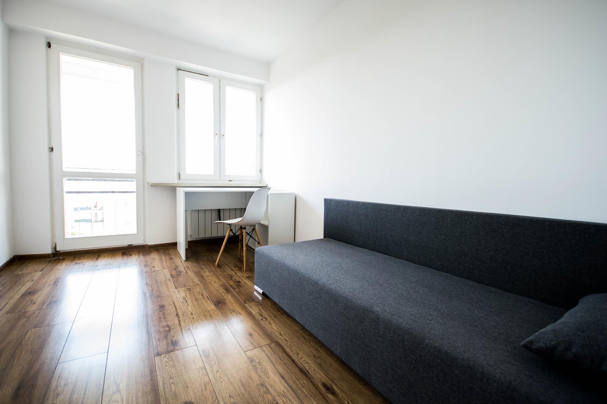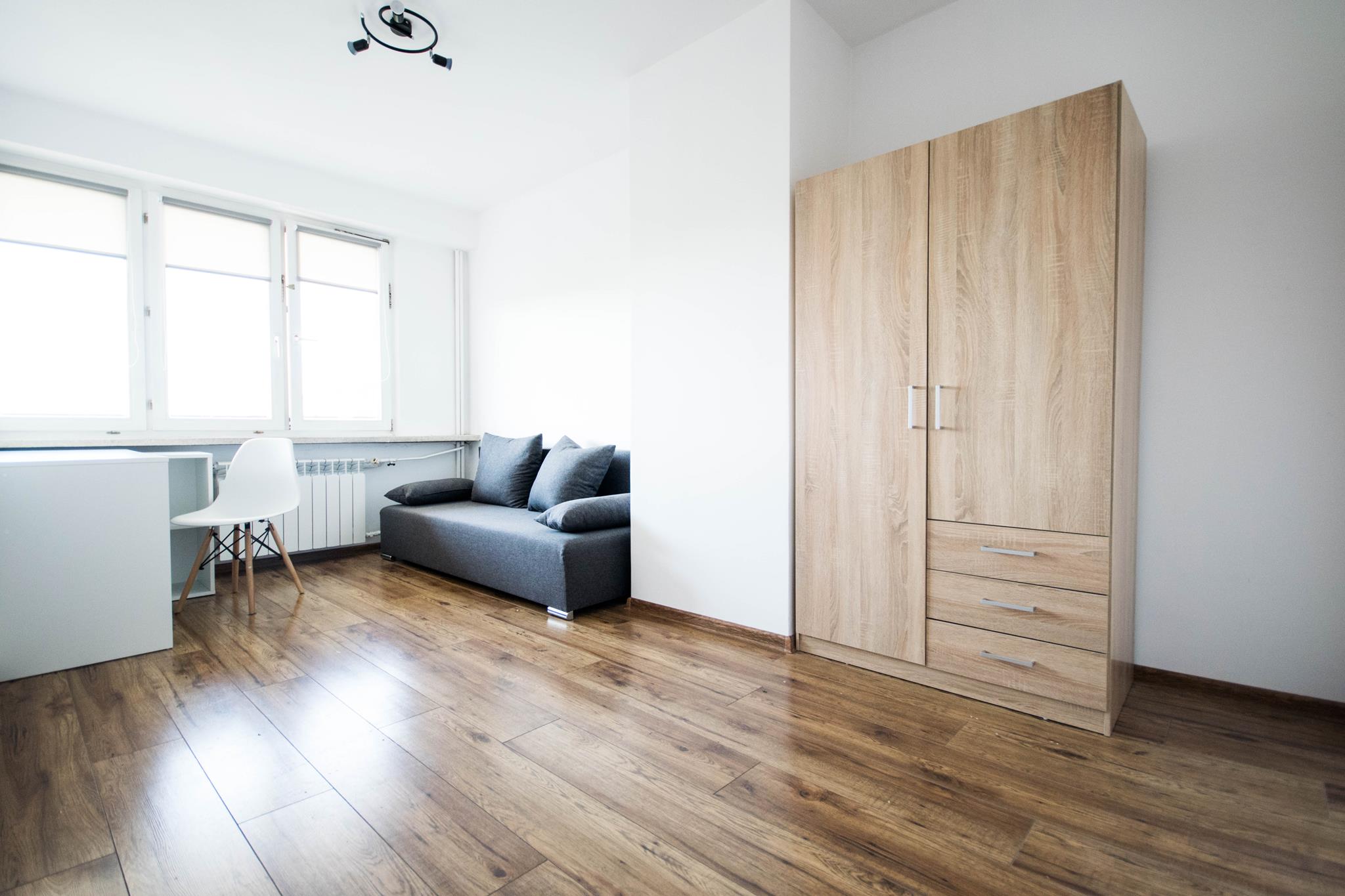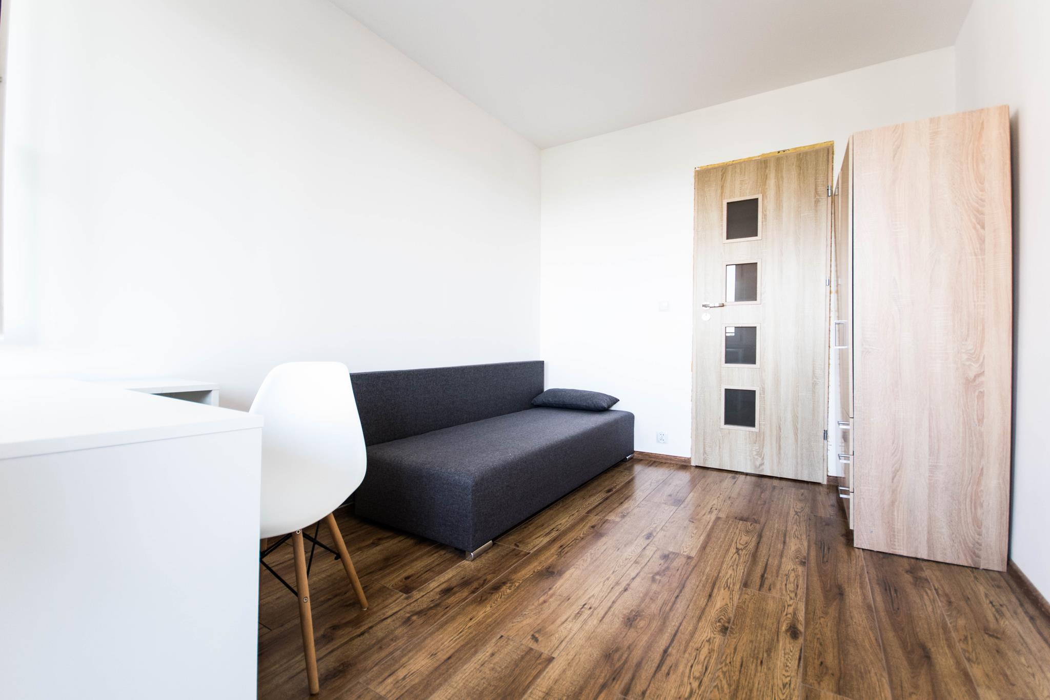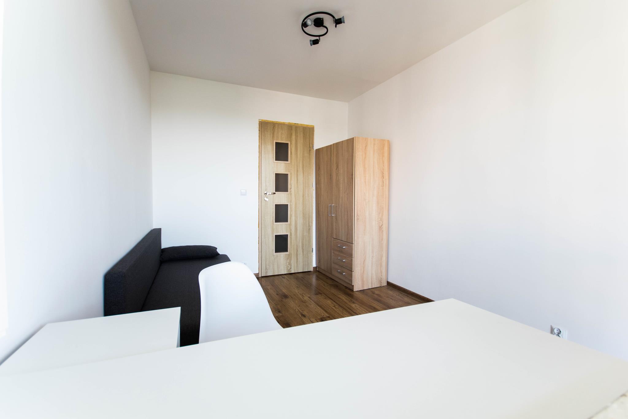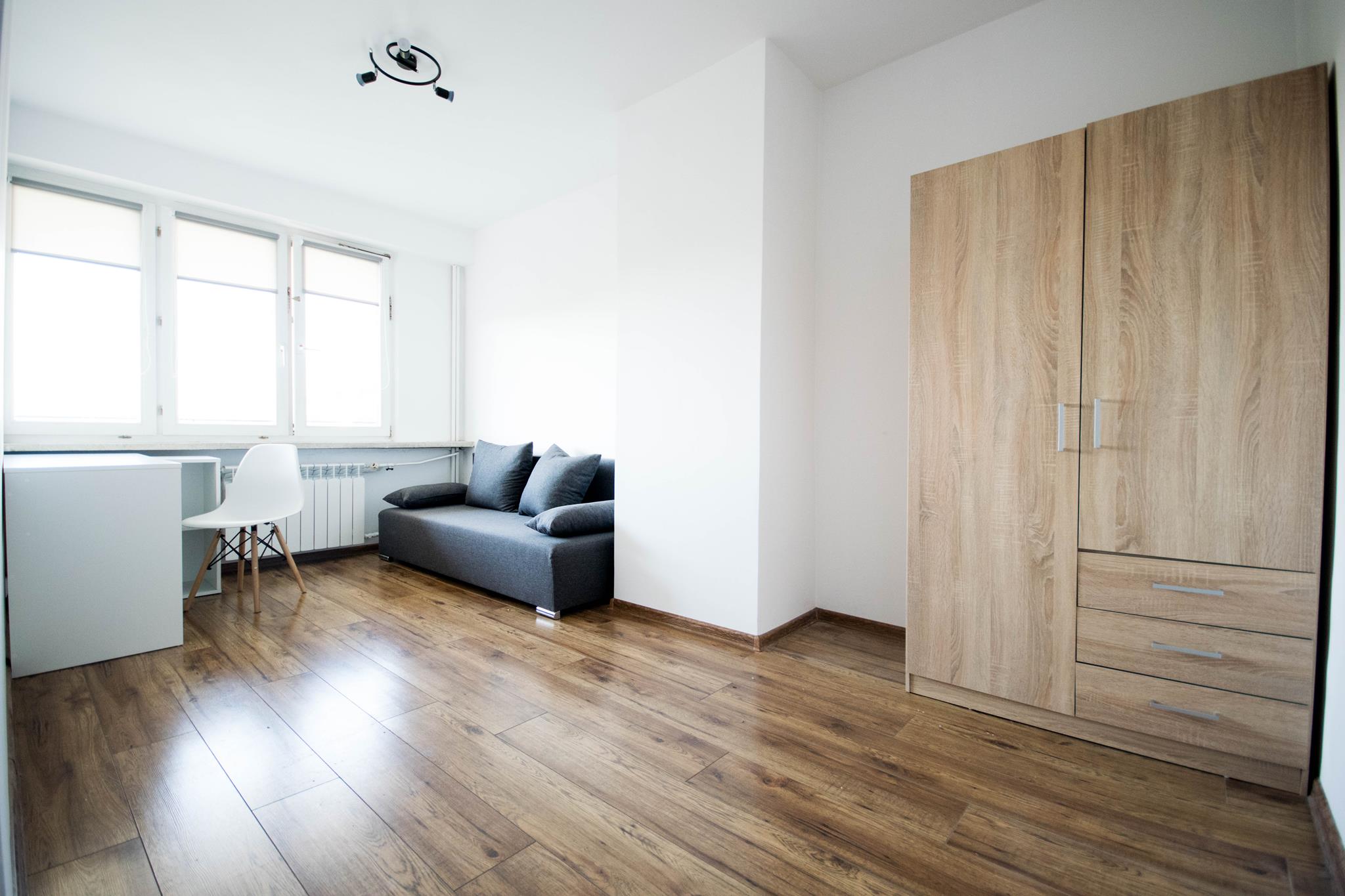 Do dyspozycji mamy 4 niezależne pokoje, w każdym z nich znajduje pojemna szafa, w której można spokojnie zmieścić wszystkie swoje rzeczy, wygodna, rozkładana sofa oraz biurko z krzesłem idealne do pracy czy nauki.