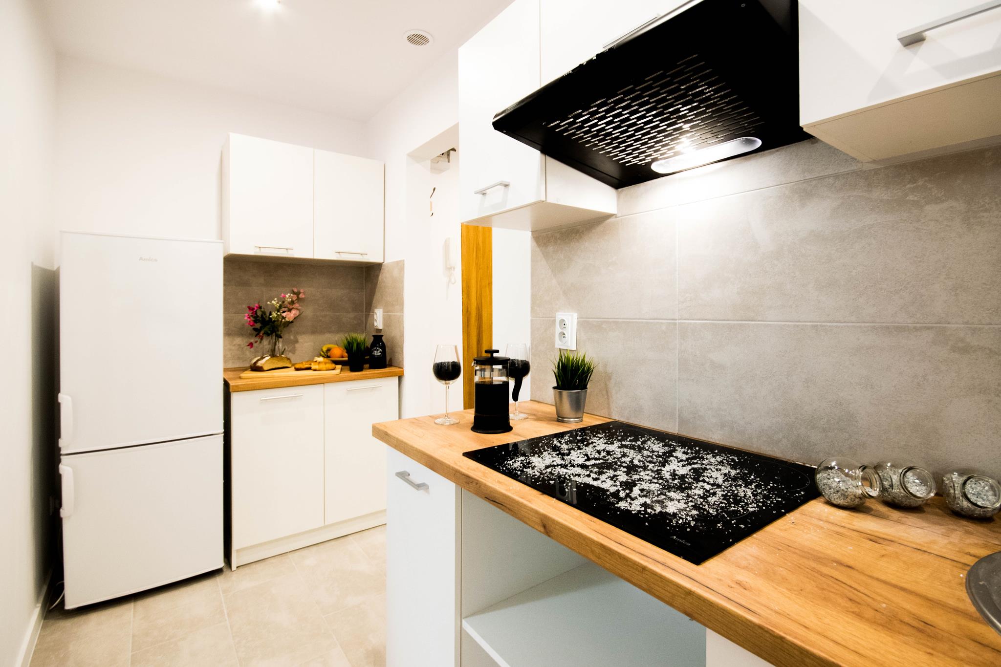 Oddzielna kuchnia wyposażona we wszystkie niezbędne sprzęty AGD, tj.